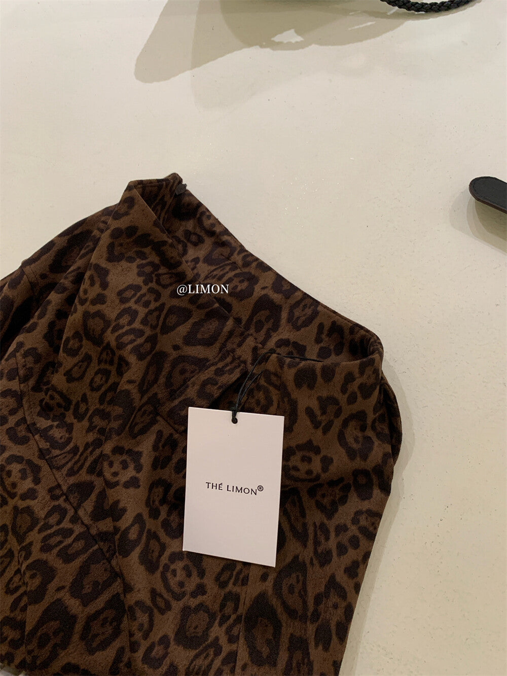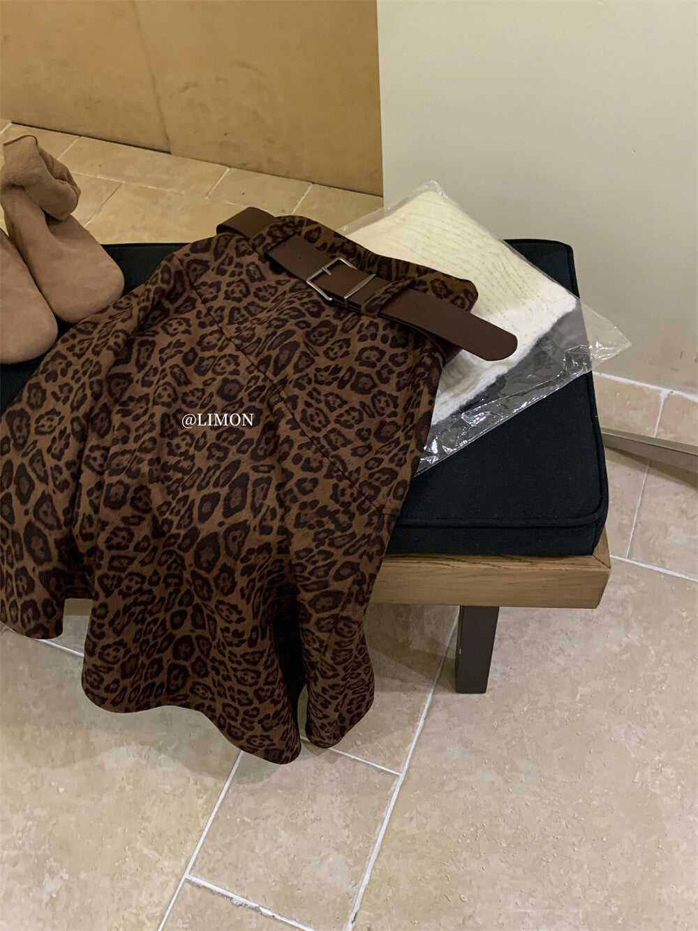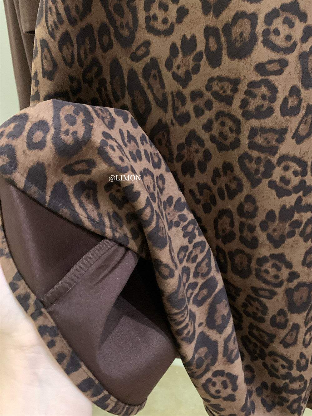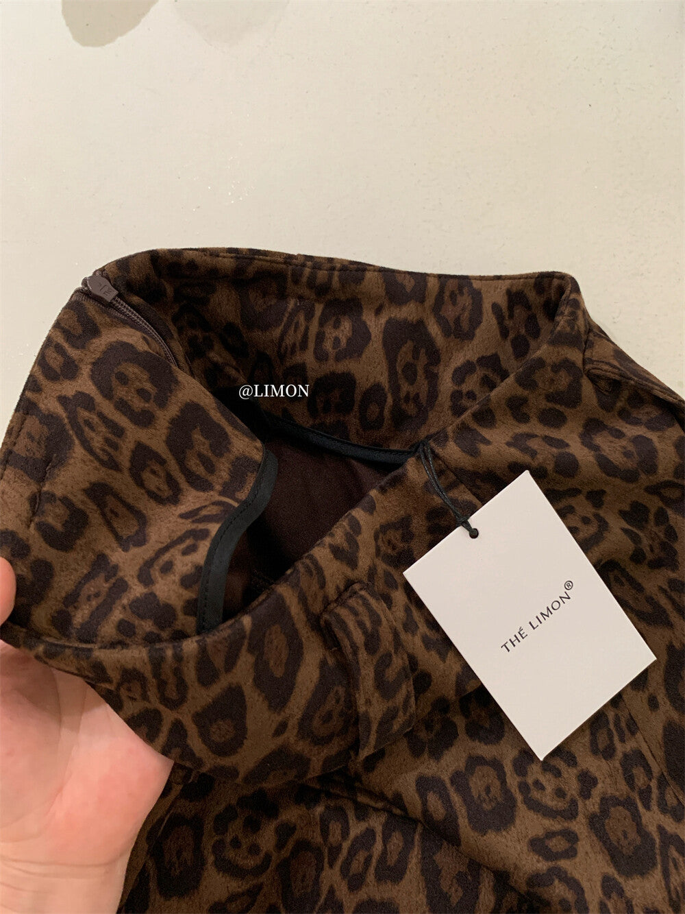 【L1175】實拍檸檬秋季時髦麂皮絨復古不規則豹紋裙+腰帶250915