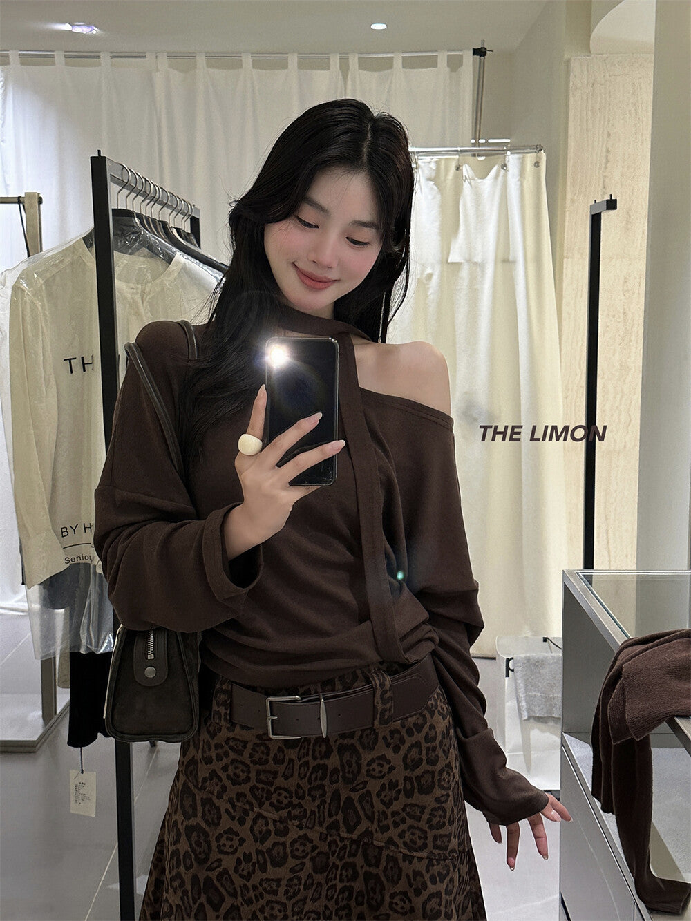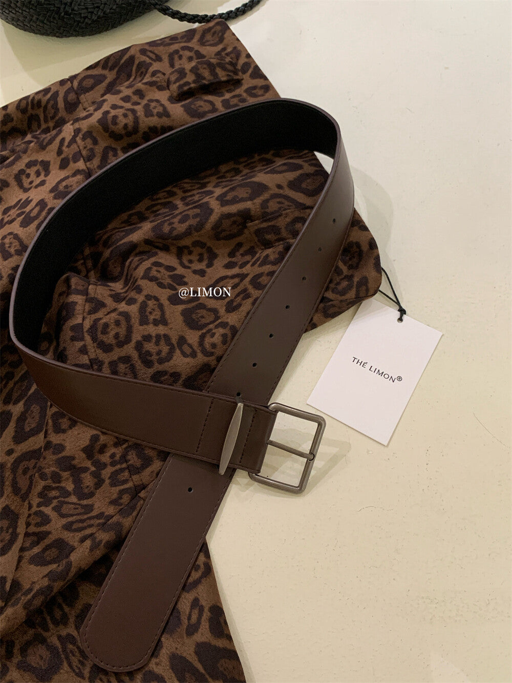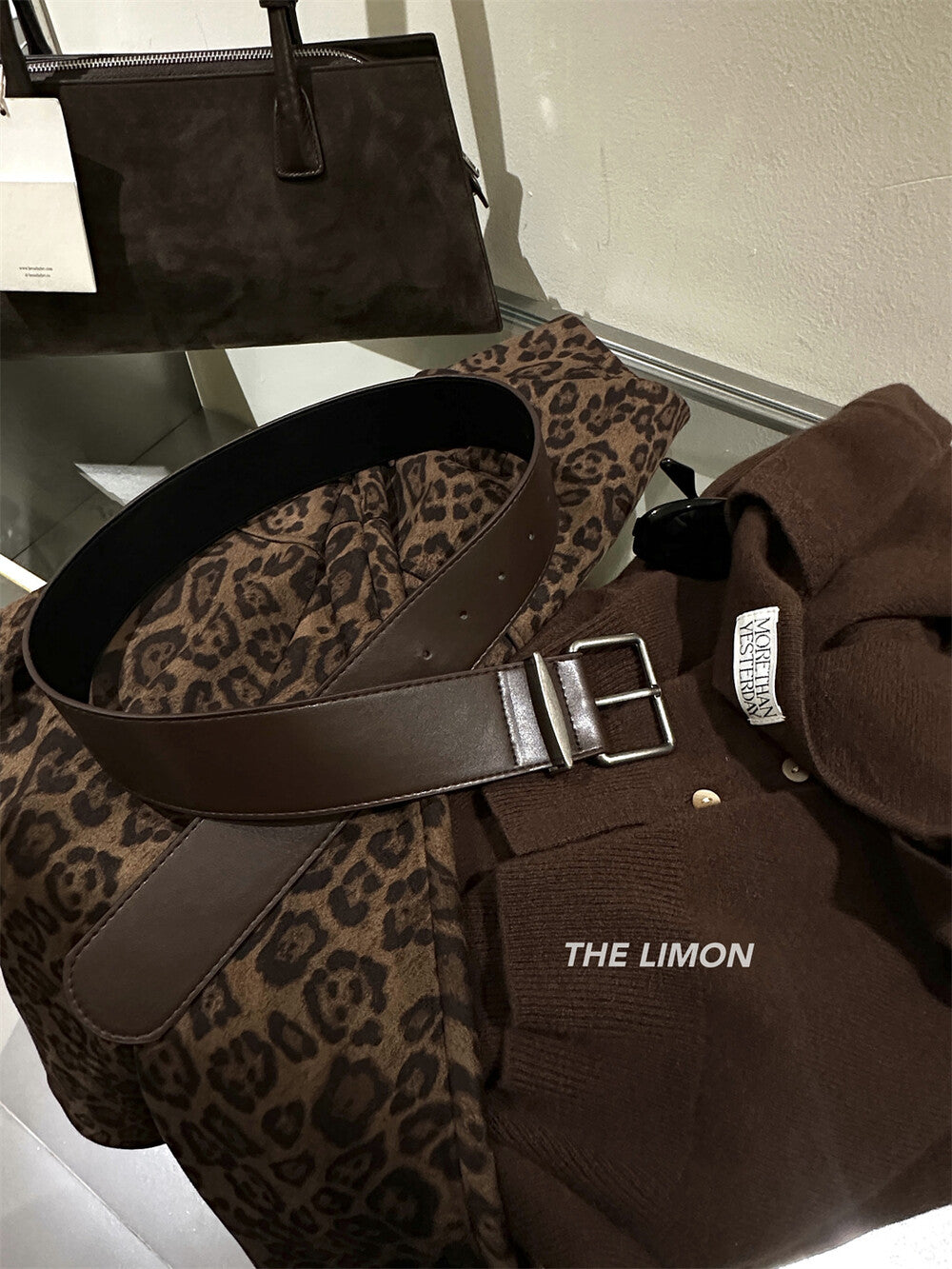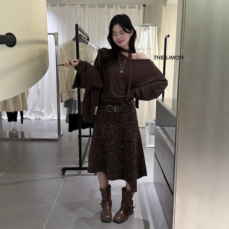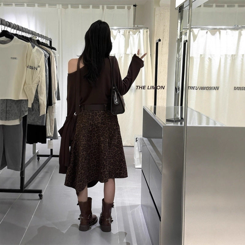 【L1175】實拍檸檬秋季時髦麂皮絨復古不規則豹紋裙+腰帶250915