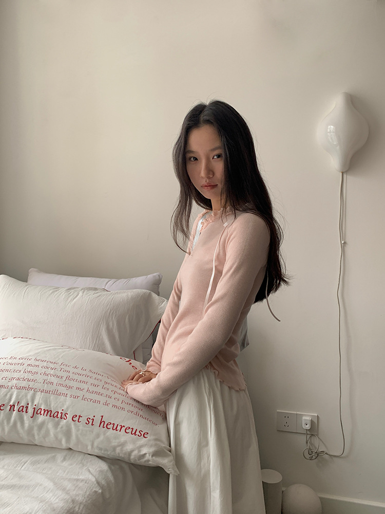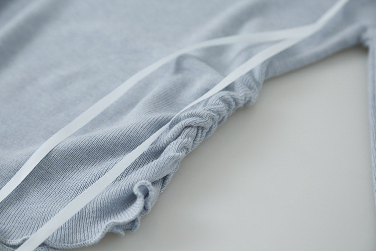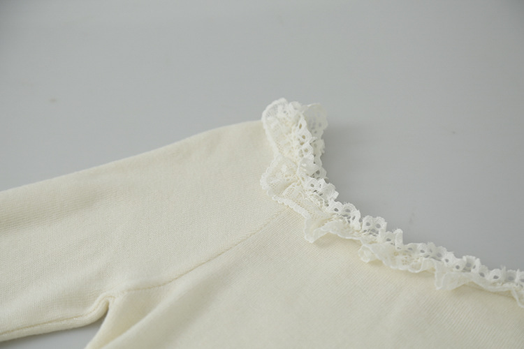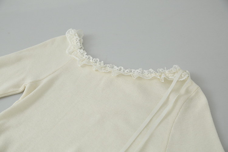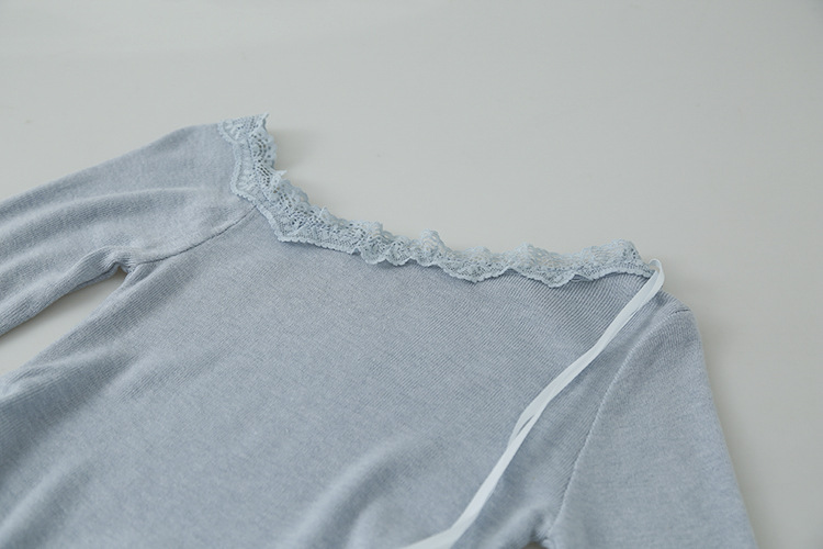 【L2787】實拍小花邊蕾絲斜肩領長袖針織衫(6%羊毛)250825