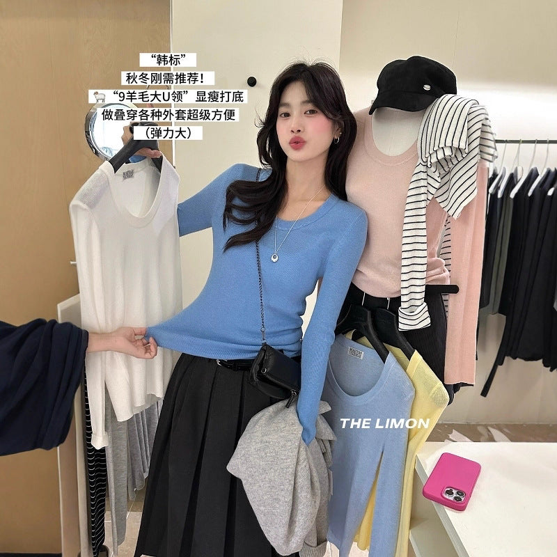 【L300】實拍檸檬秋季顯瘦圓領針織衫(羊毛9%)250930