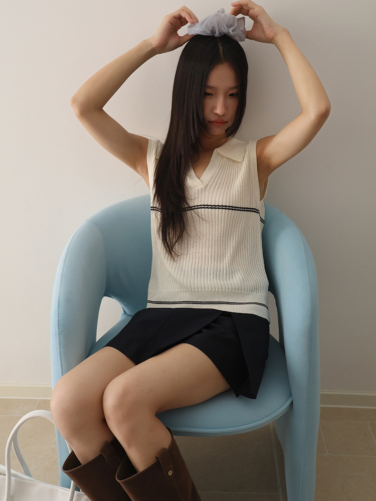 【LD3057】實拍韓版復古polo領冰絲針織250714