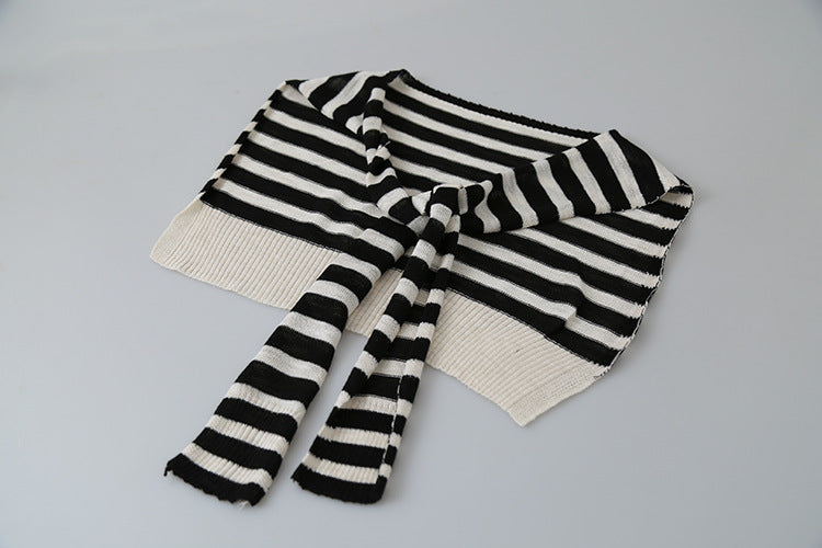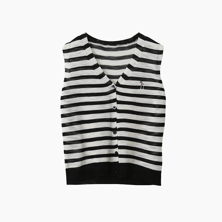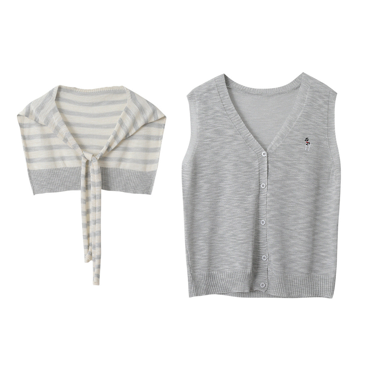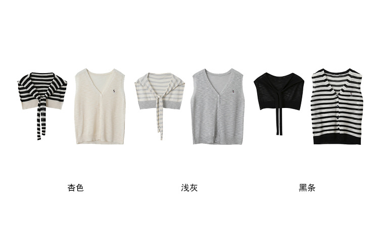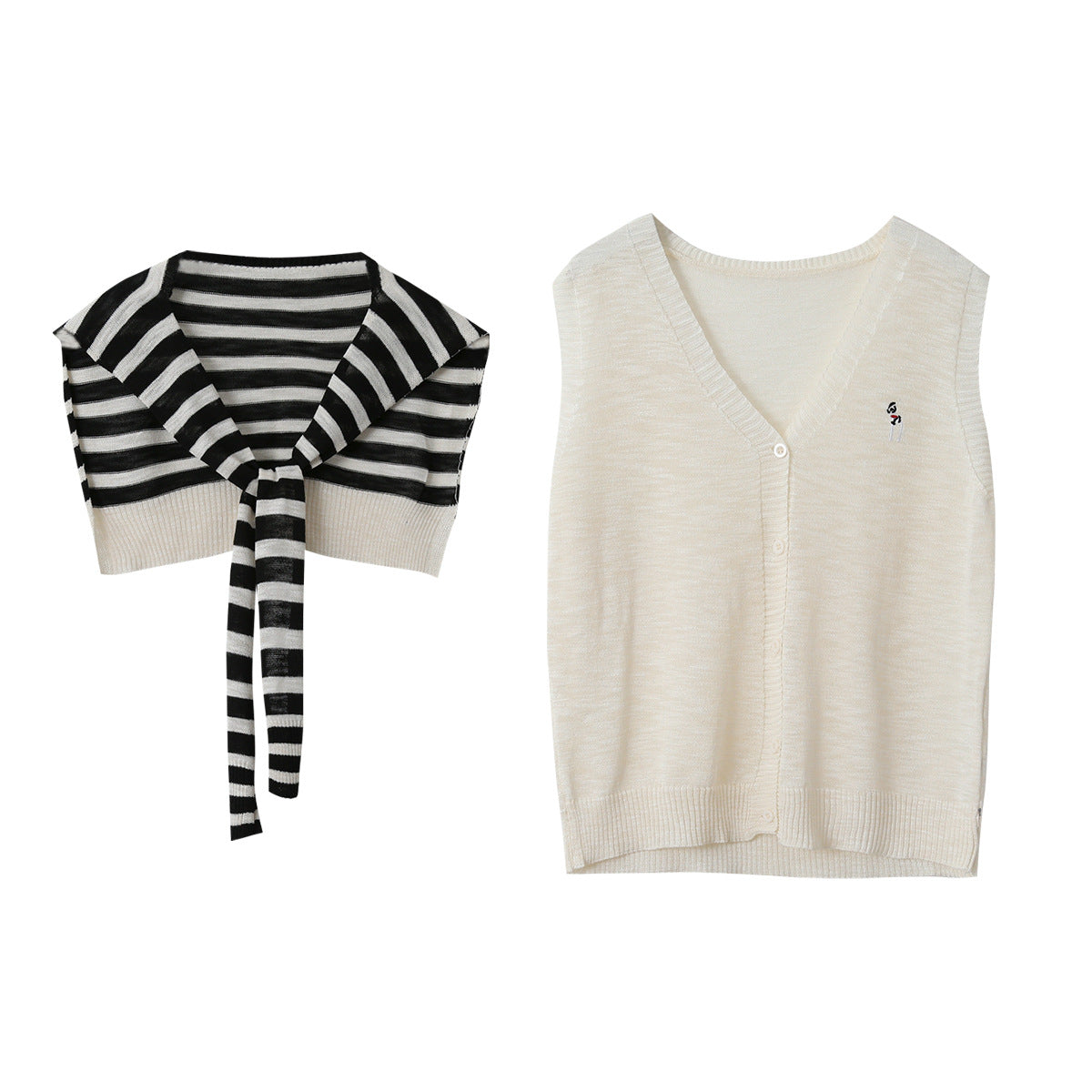 【L3072】實拍夏天韓國條紋披肩+刺繡針織背心250721