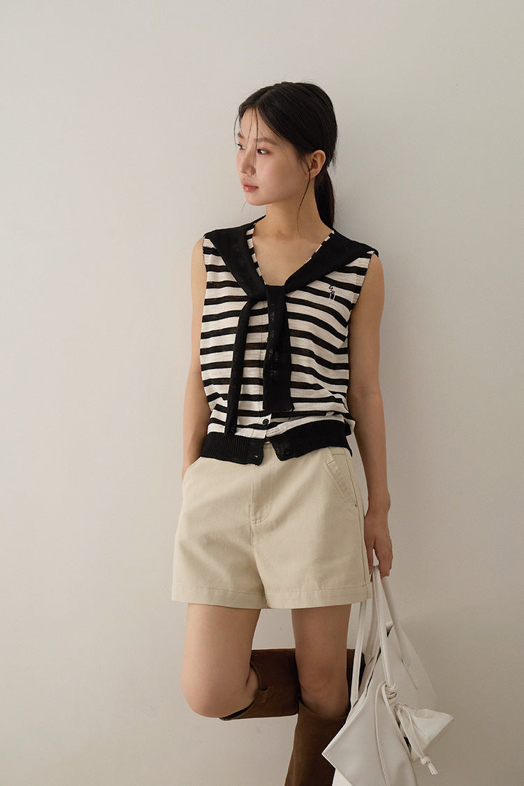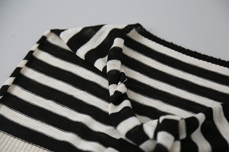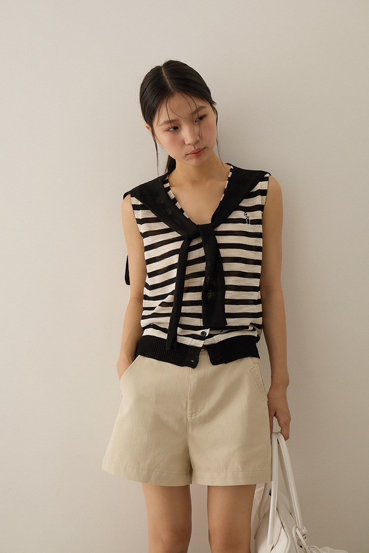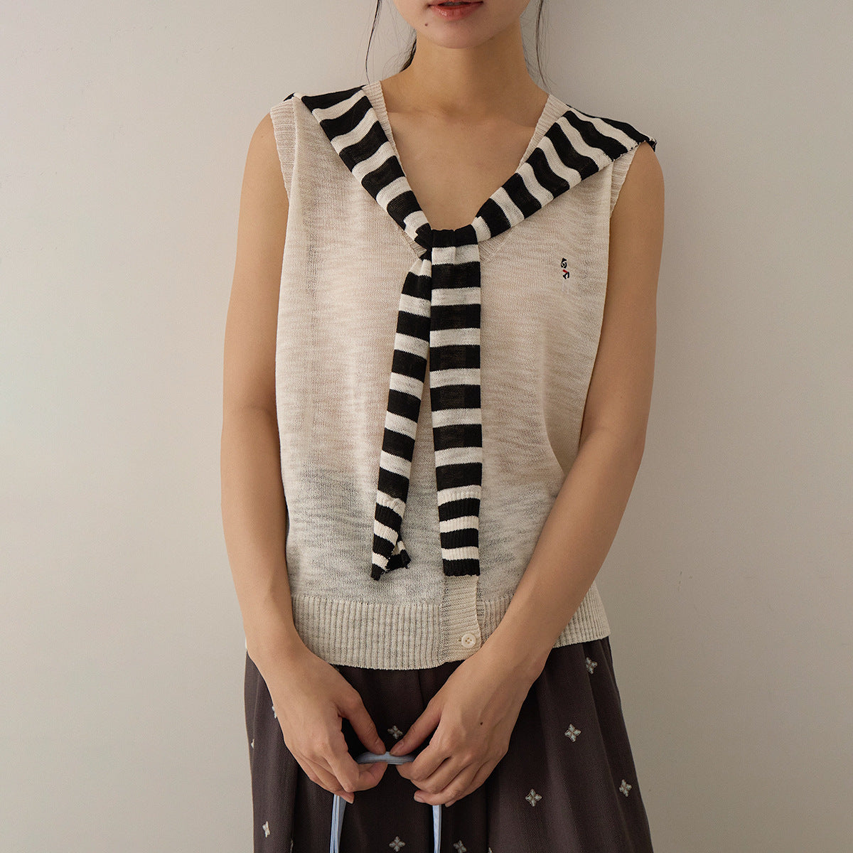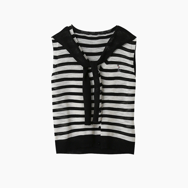 【L3072】實拍夏天韓國條紋披肩+刺繡針織背心250721