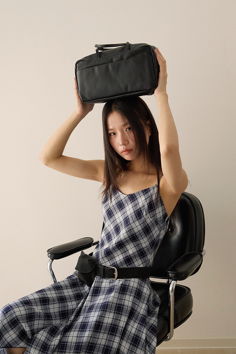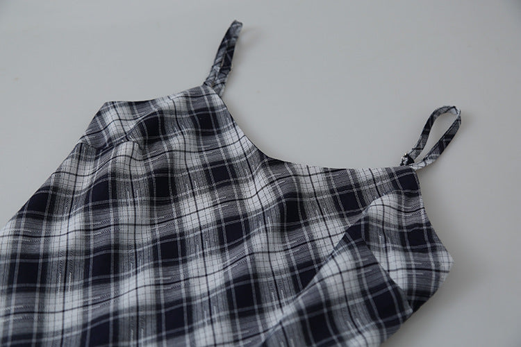 【L3074】實拍設計感格紋不規則吊帶洋裝250721