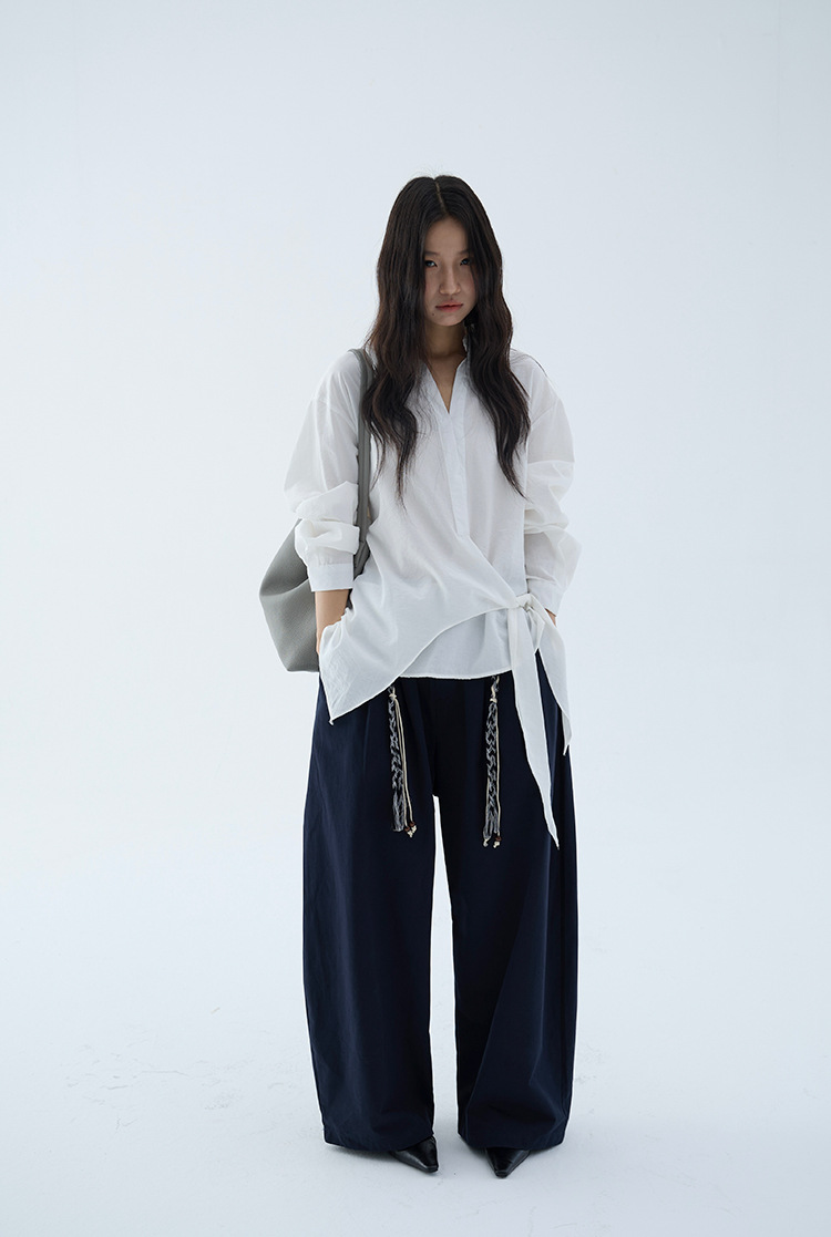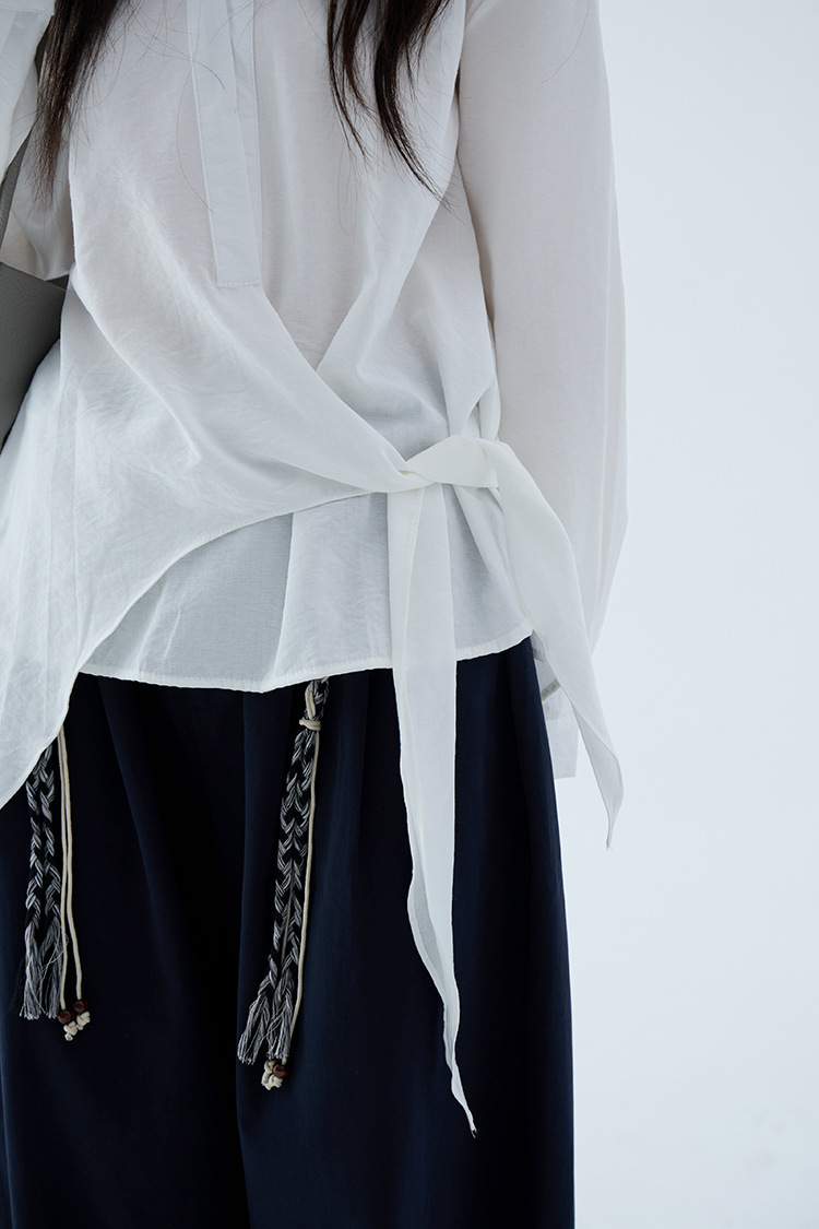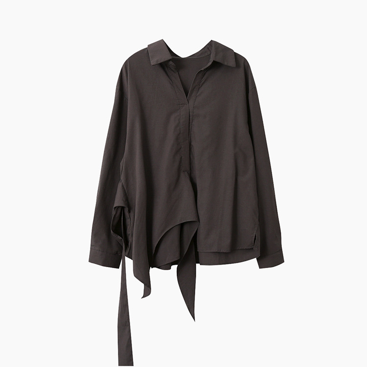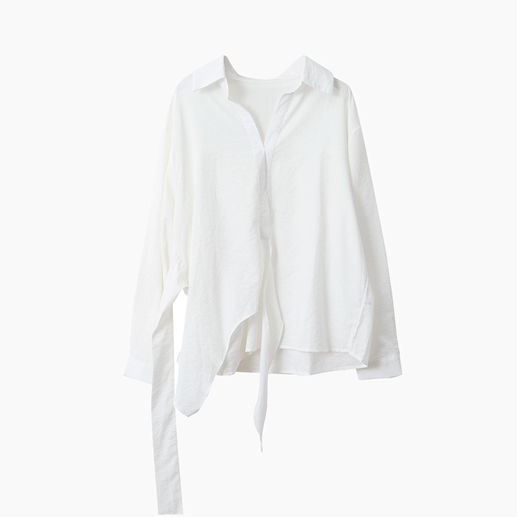 【L3131】實拍夏秋不規則綁帶設計長袖襯衫(麻6%)250827