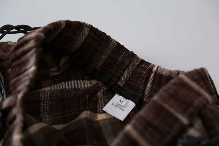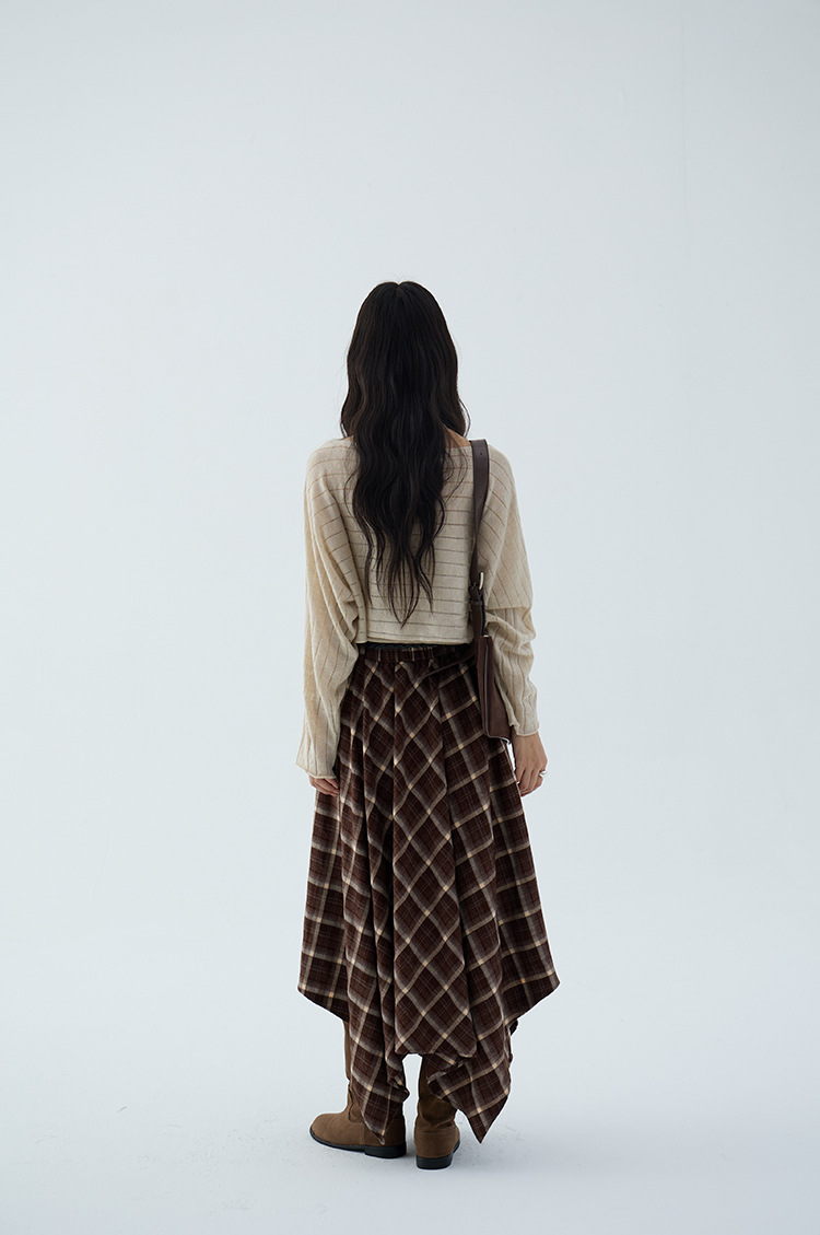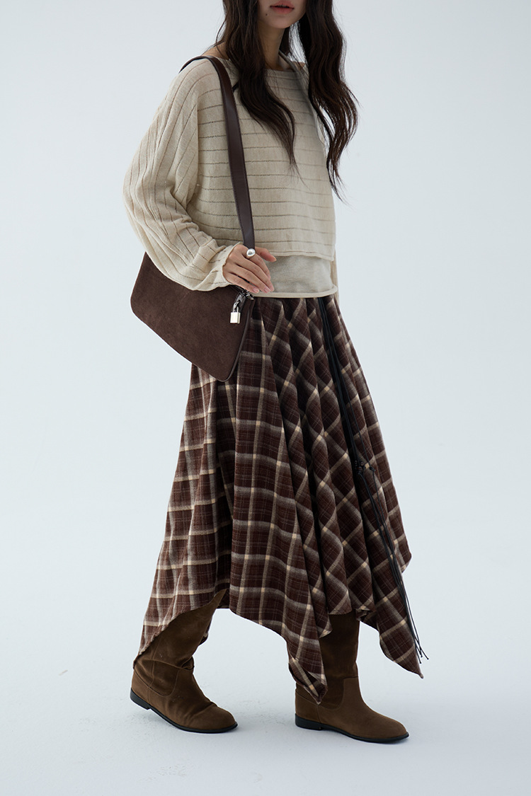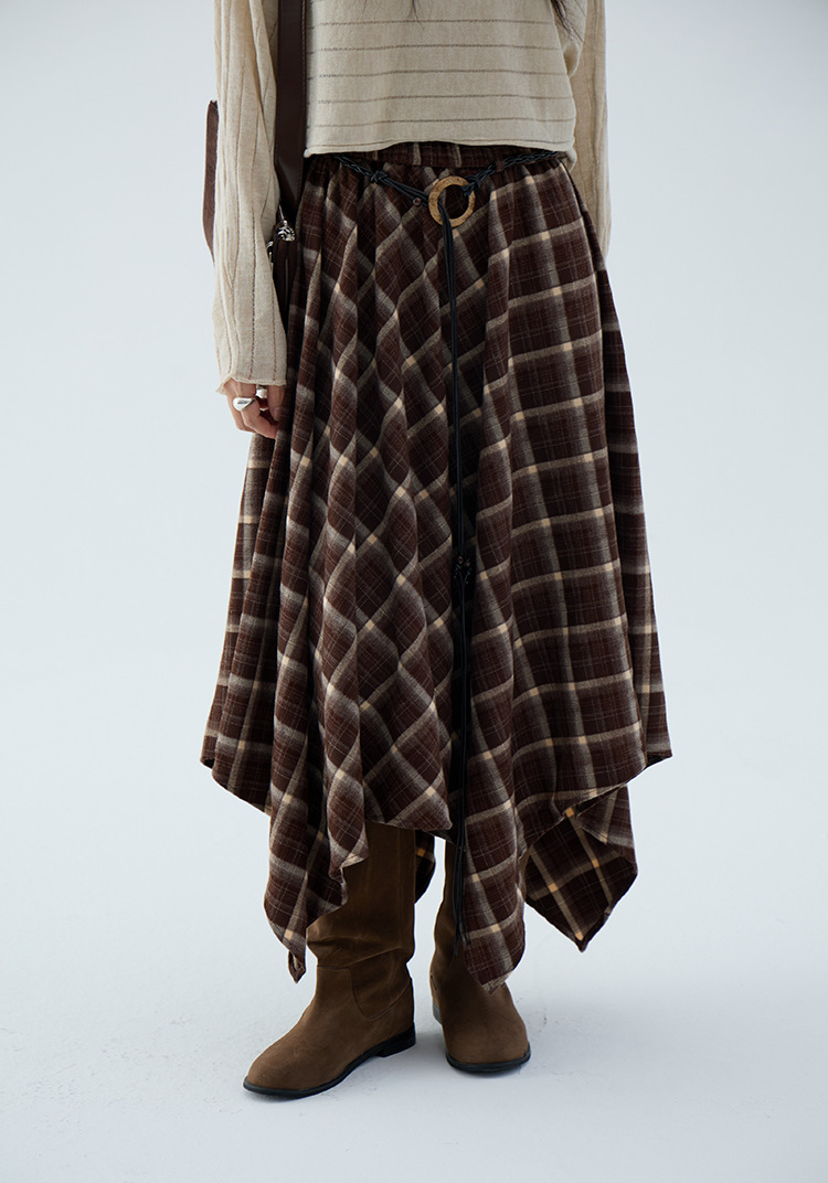 【L3135】實拍秋冬不規則設計復古格紋磨毛長裙250827