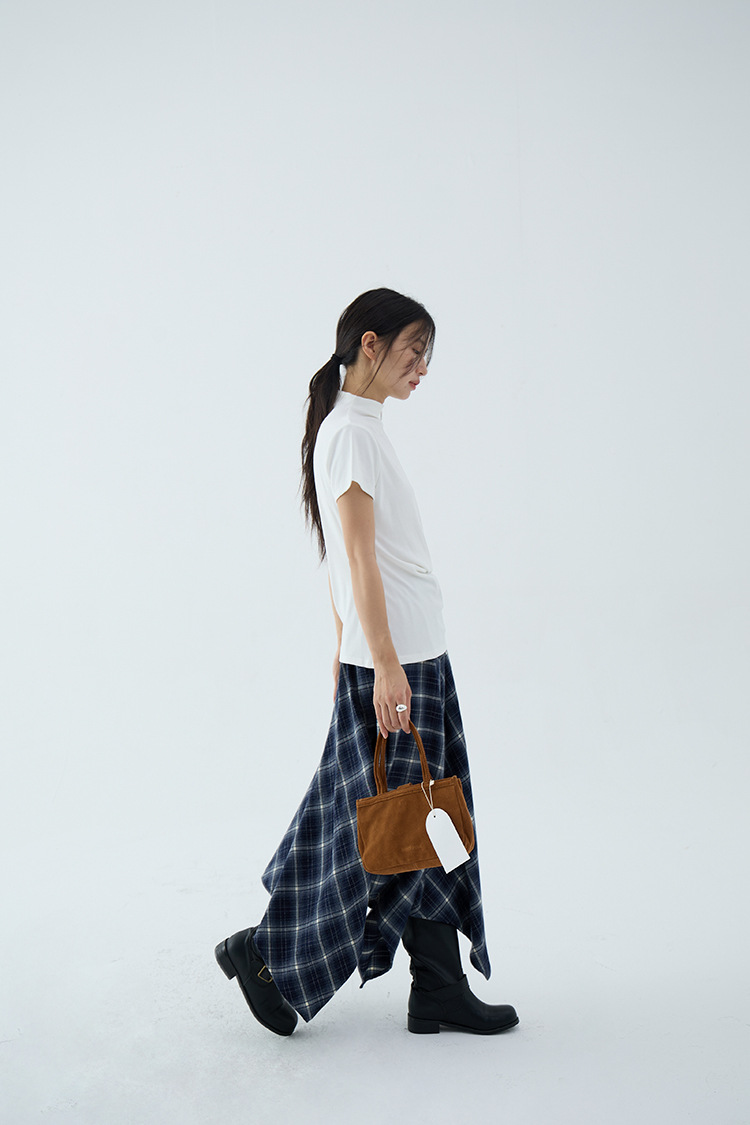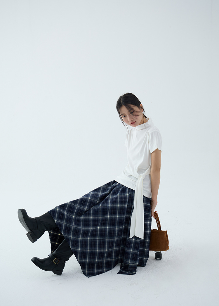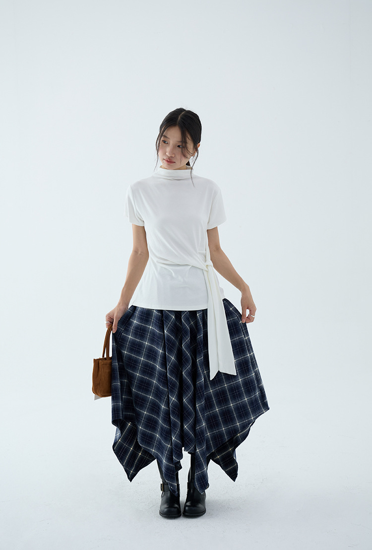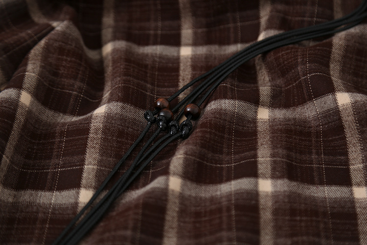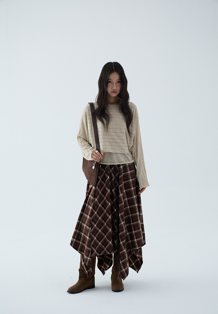 【L3135】實拍秋冬不規則設計復古格紋磨毛長裙250827