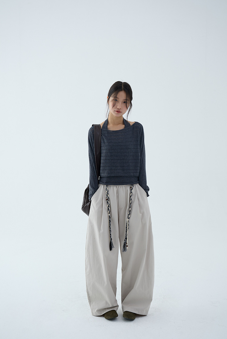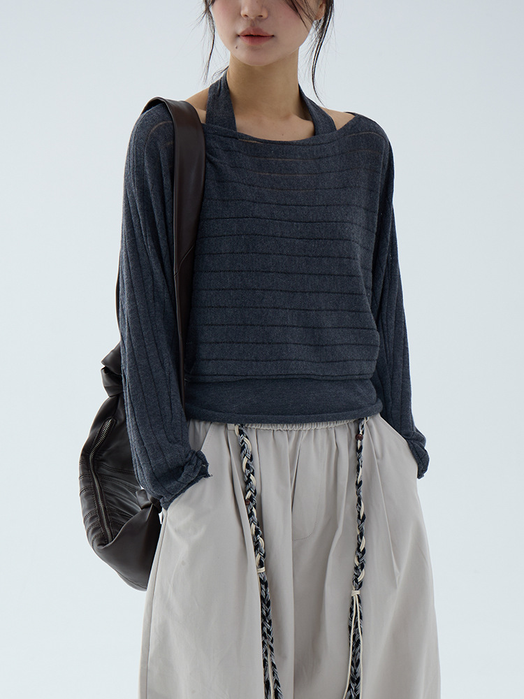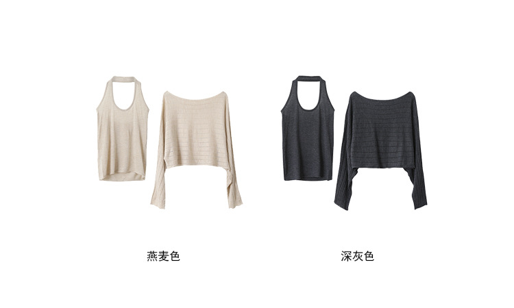 【L3142】實拍早秋絕美長袖一字領罩衫+圍脖吊帶背心250827