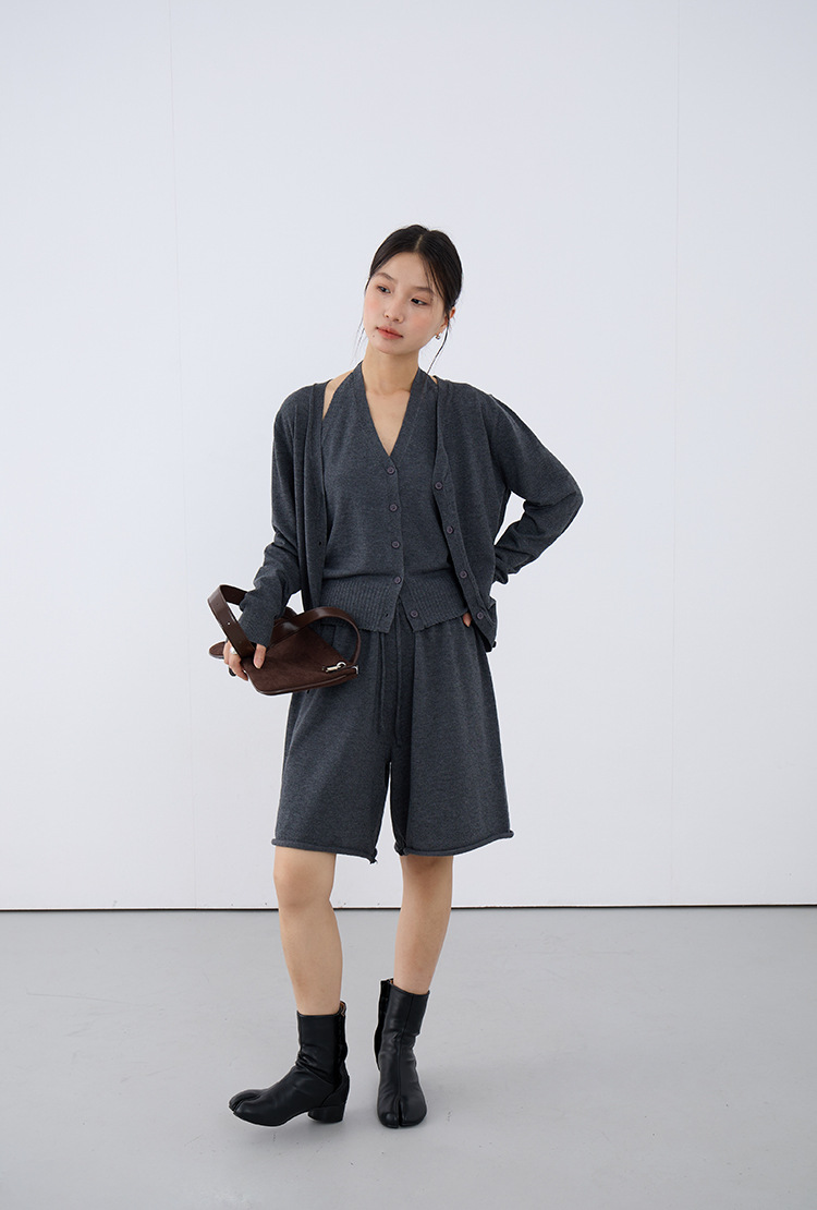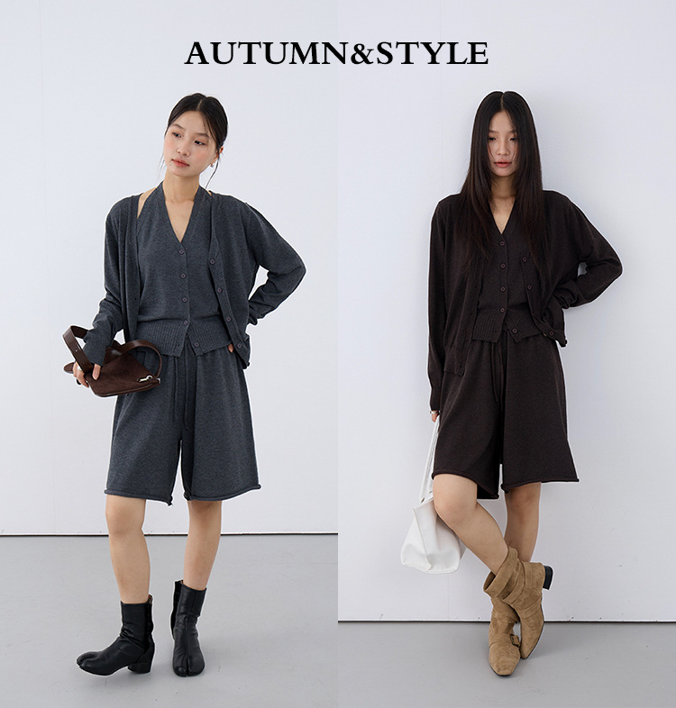 【L3147】實拍初秋掛脖吊帶+開衫外套+短褲針織(含羊毛6%) 250827