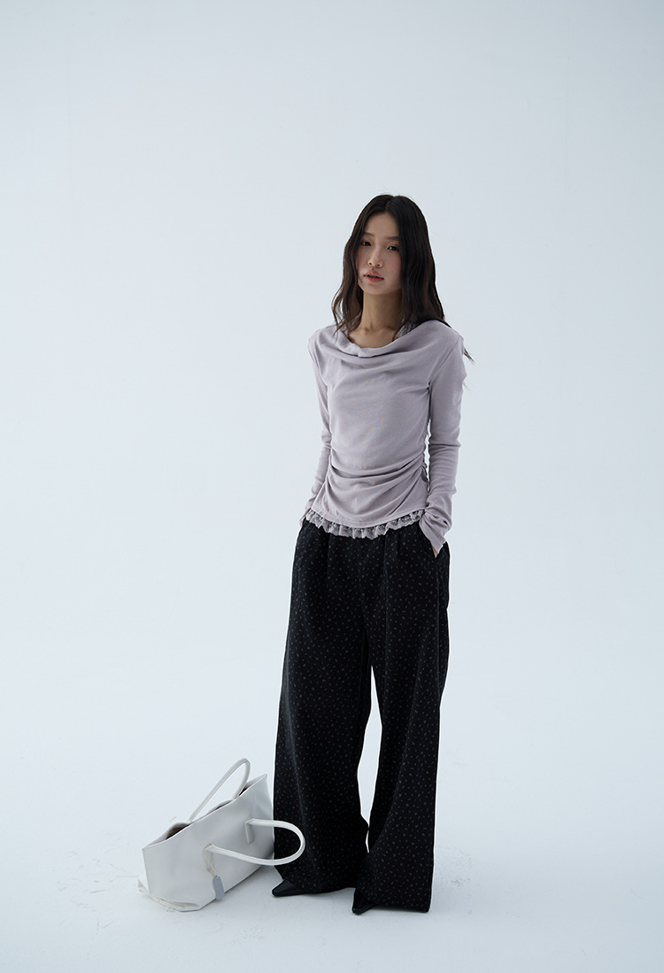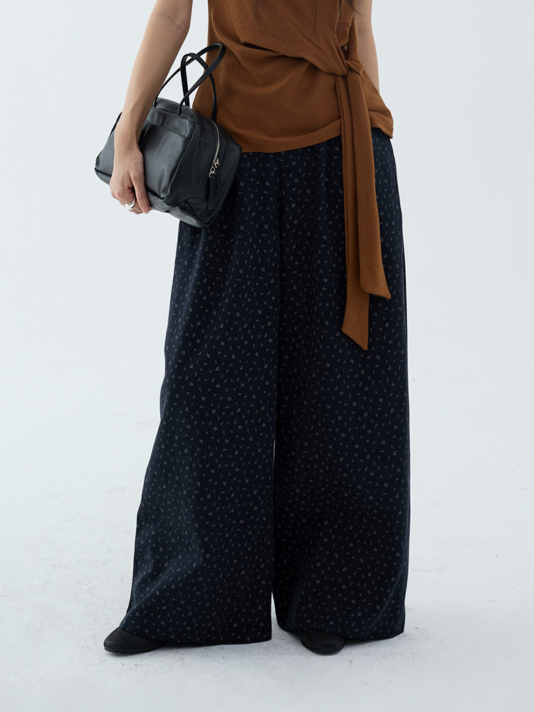 【L3150】實拍復古花點天絲棉高腰直筒長褲250827