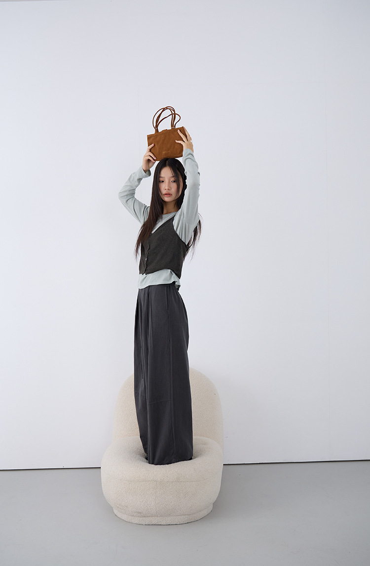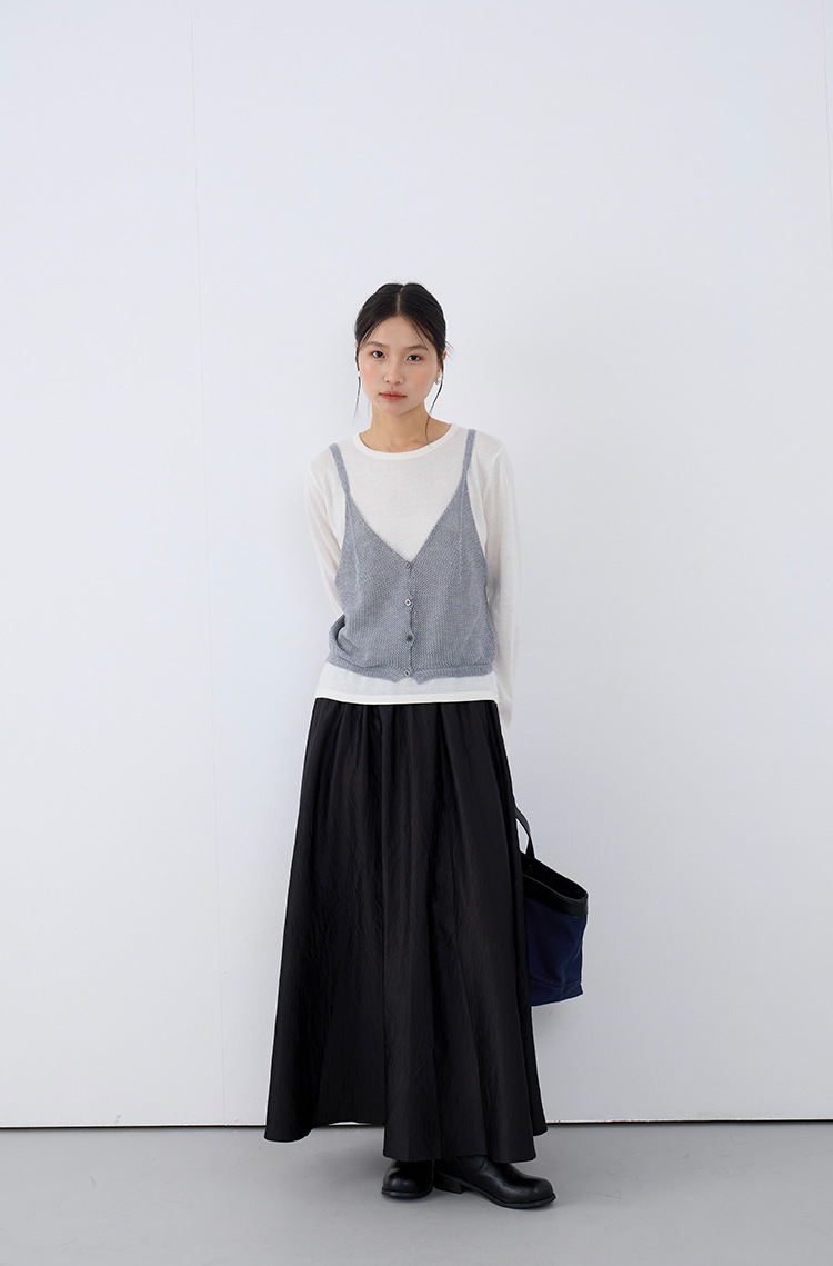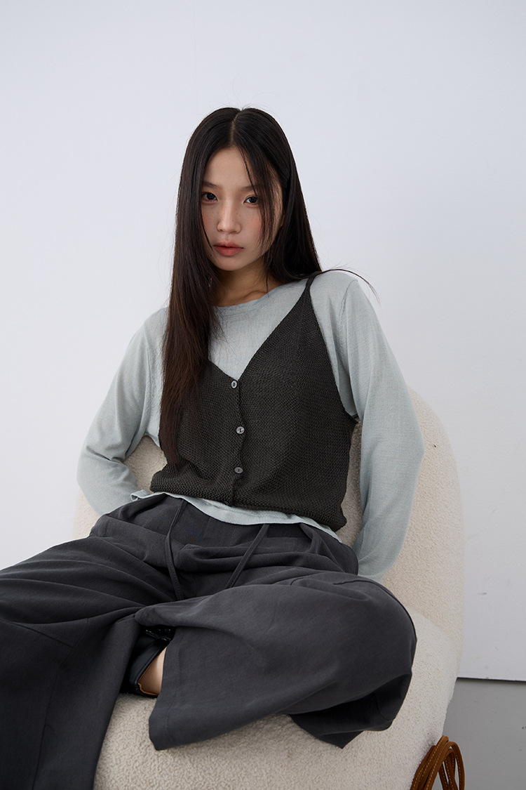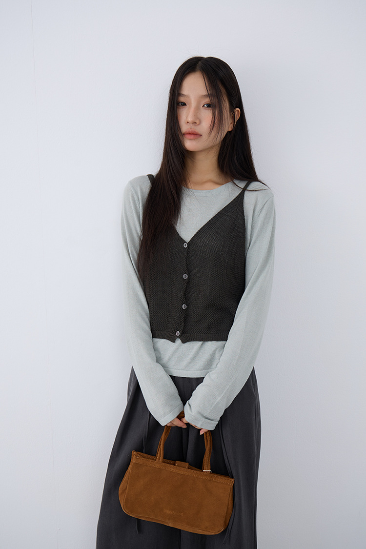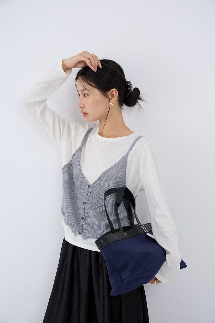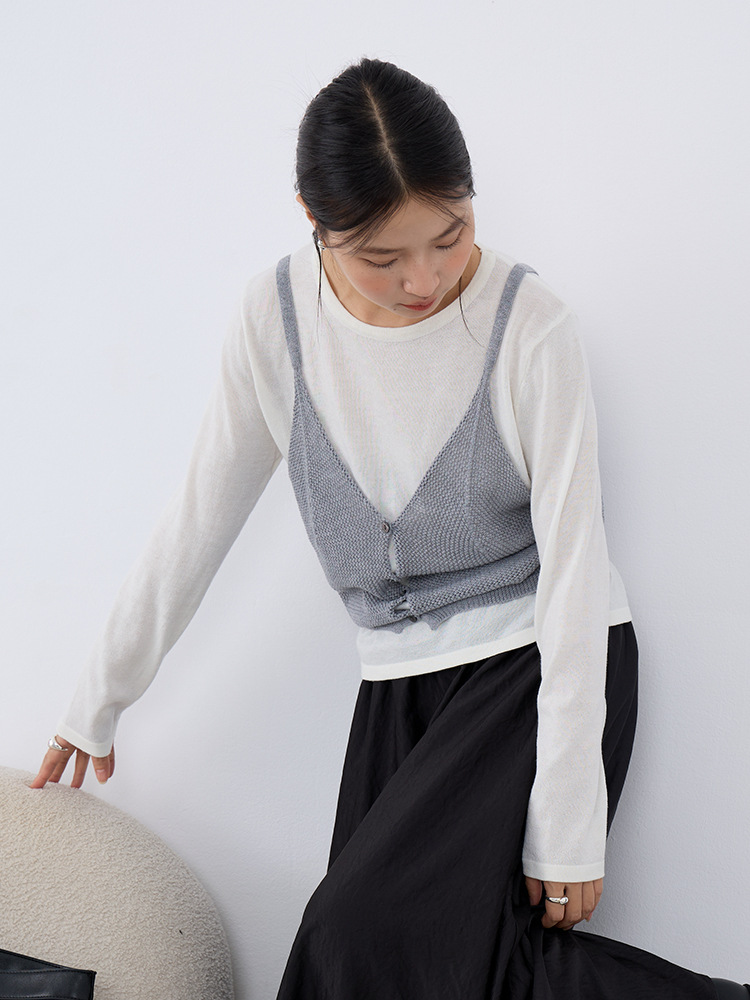【L3156】實拍休閒長袖T恤+針織吊帶 套裝(含羊毛6%)250827