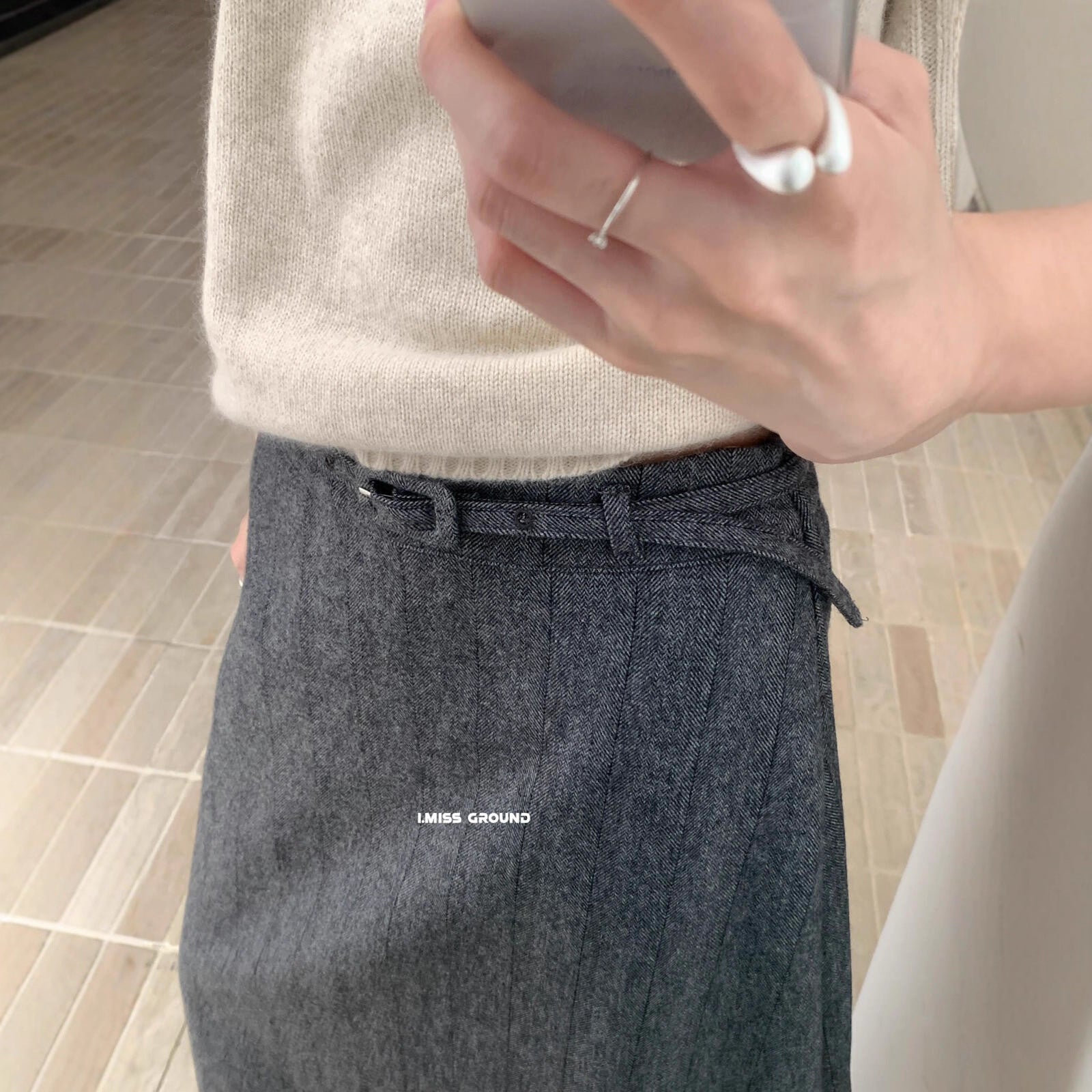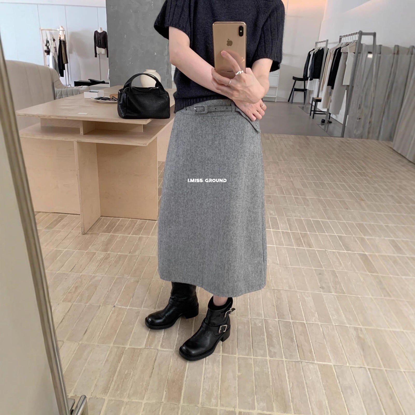 【L60881】實拍秋冬高單質感羊毛呢顯瘦直筒裙+腰帶250923