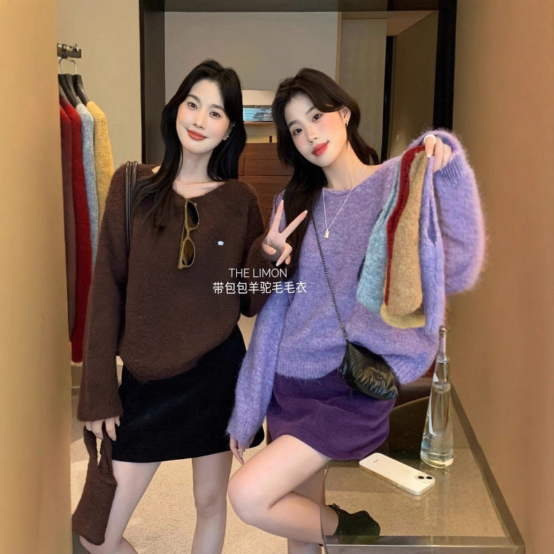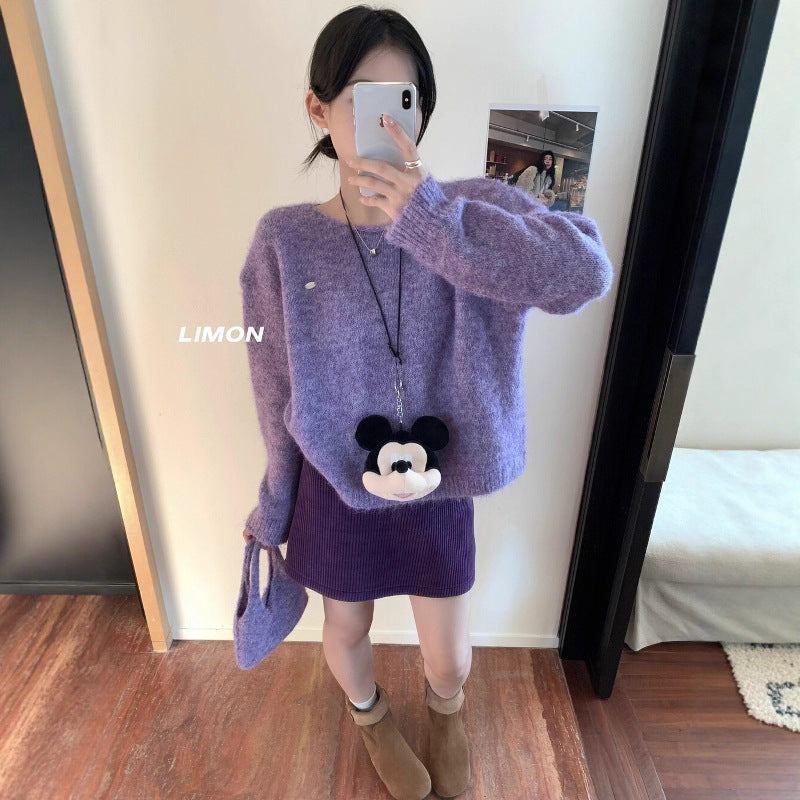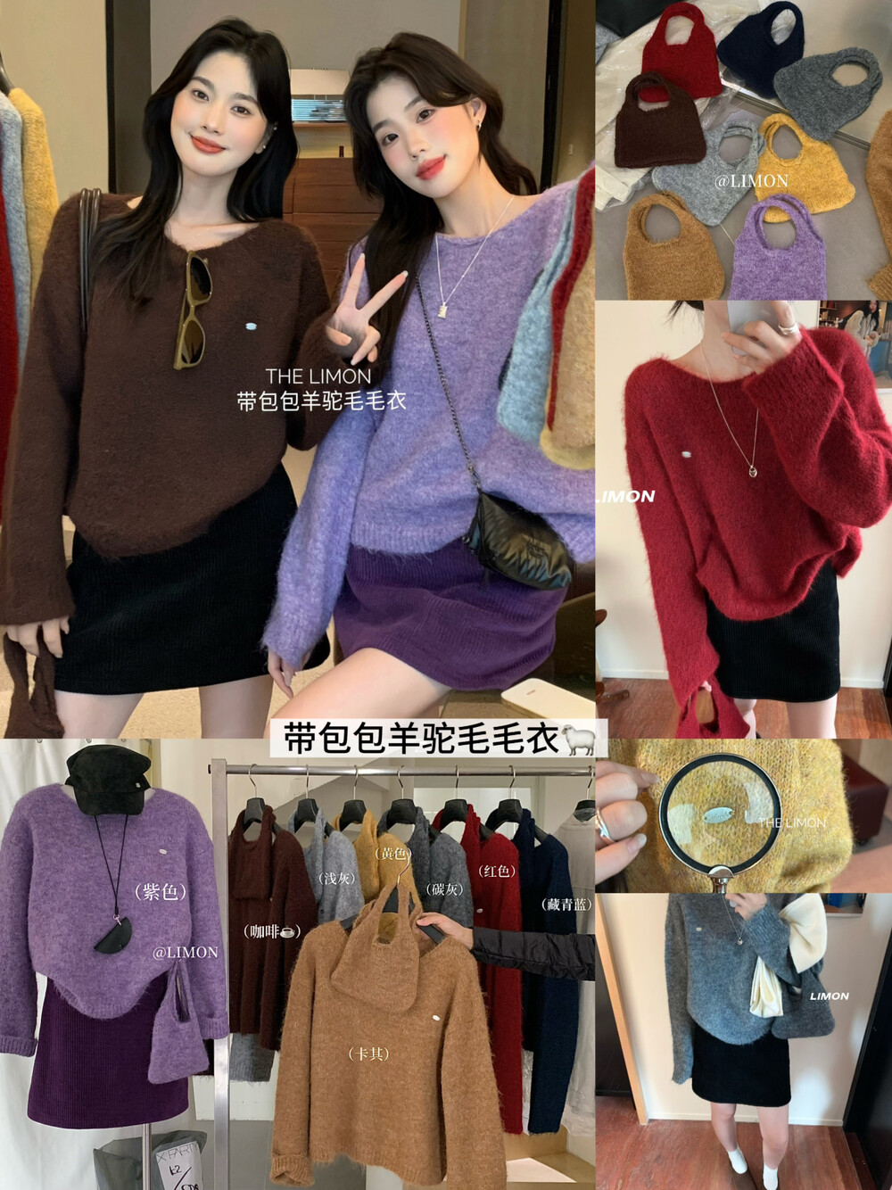【L6873】實拍檸檬秋冬簡約軟糯保暖毛衣+針織手拎包251117