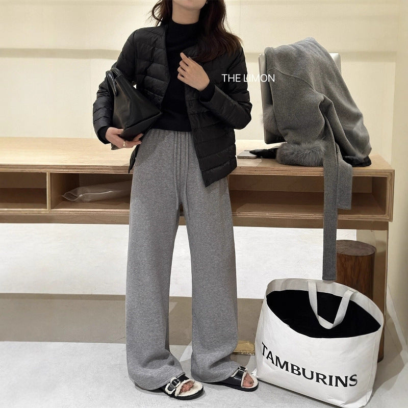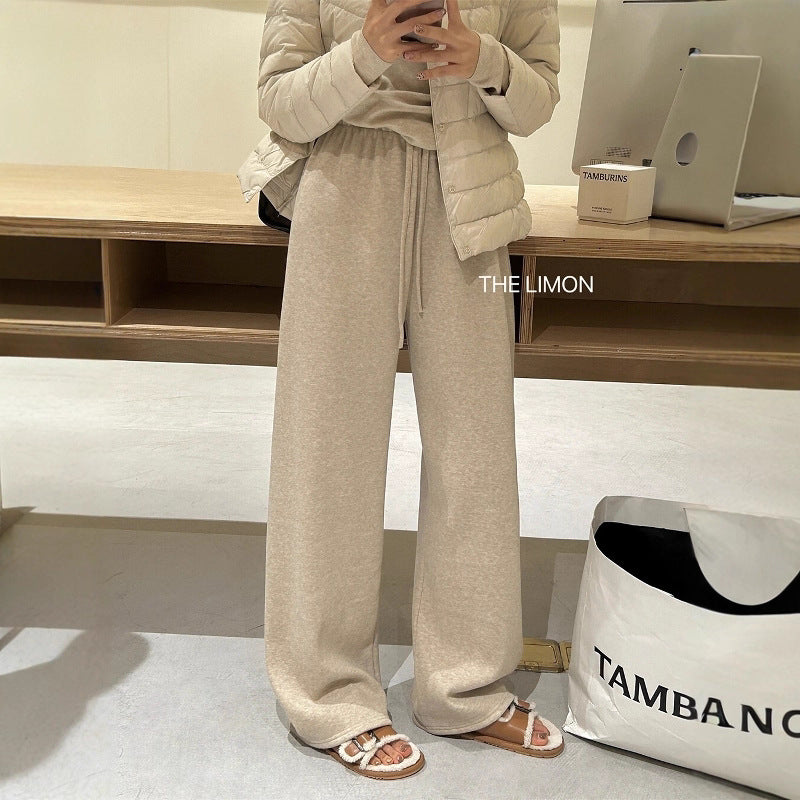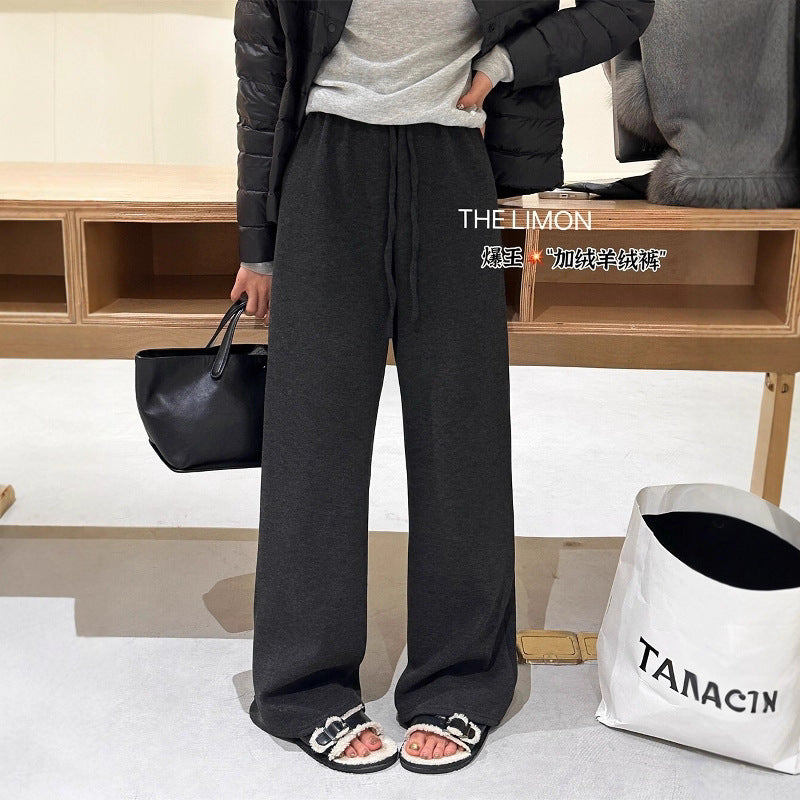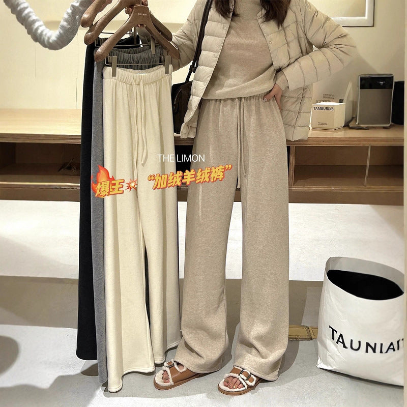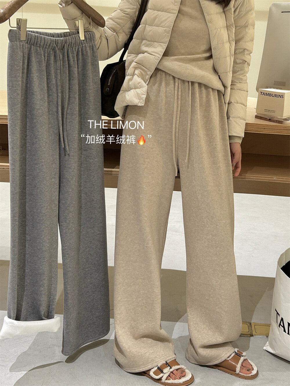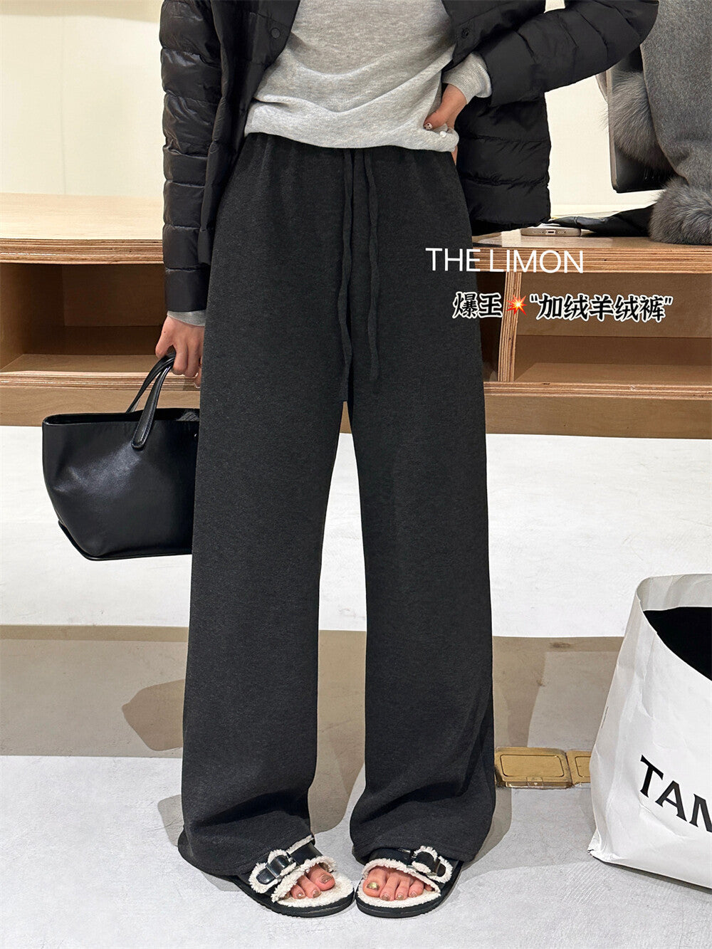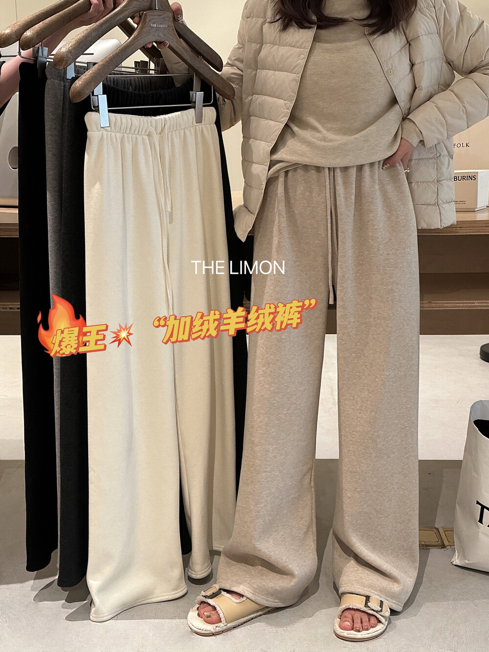 【L7039】實拍檸檬加厚加絨羊絨寬鬆顯瘦高腰直筒褲251117