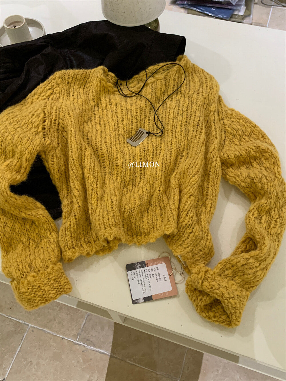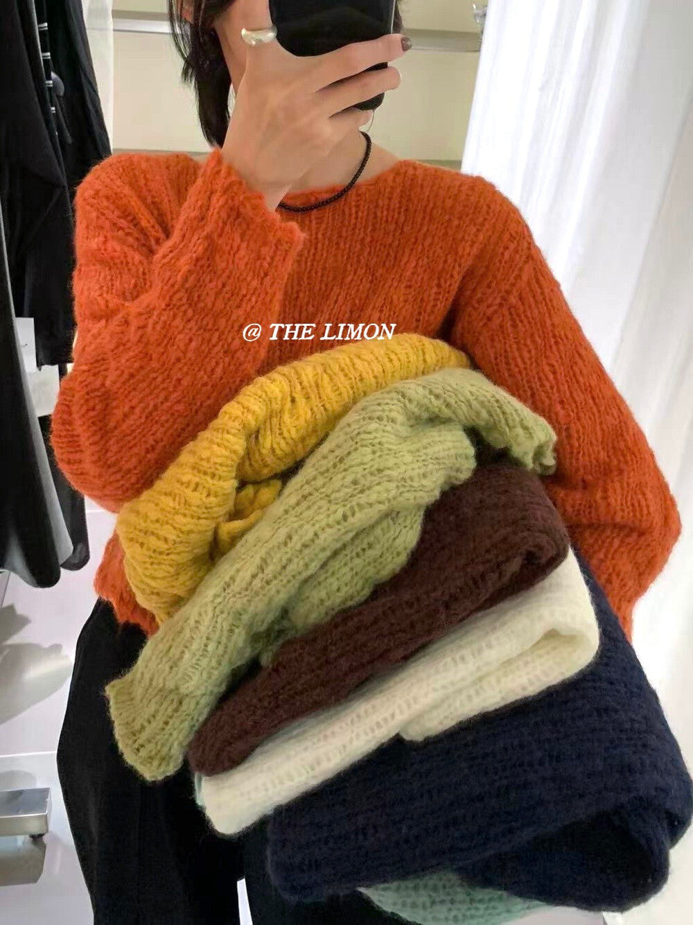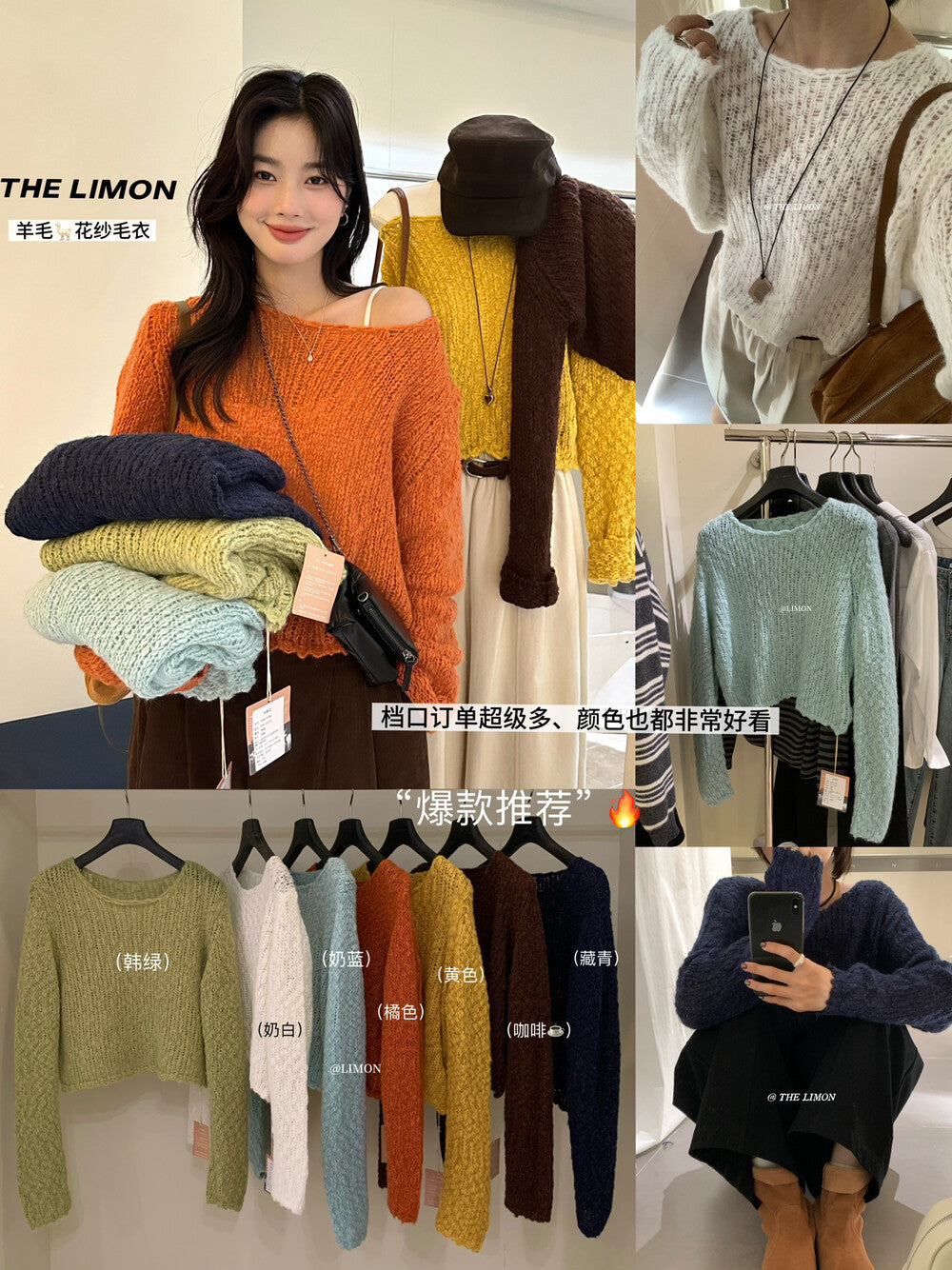 【L8327】實拍檸檬秋冬甜美氛圍軟糯花紗針織毛衣250915