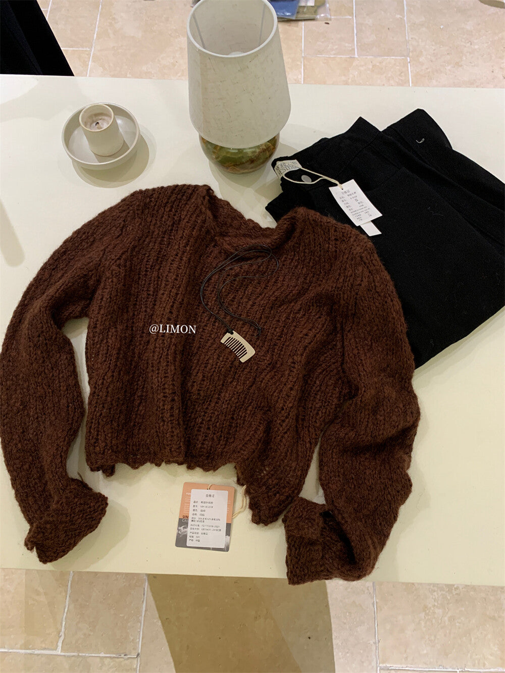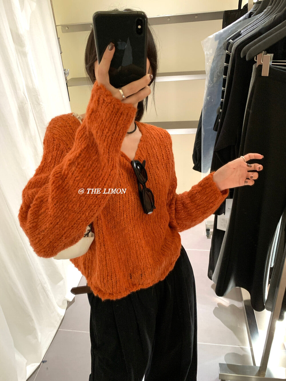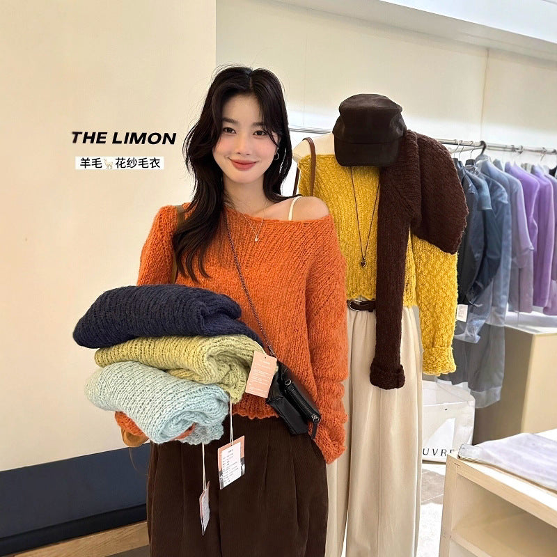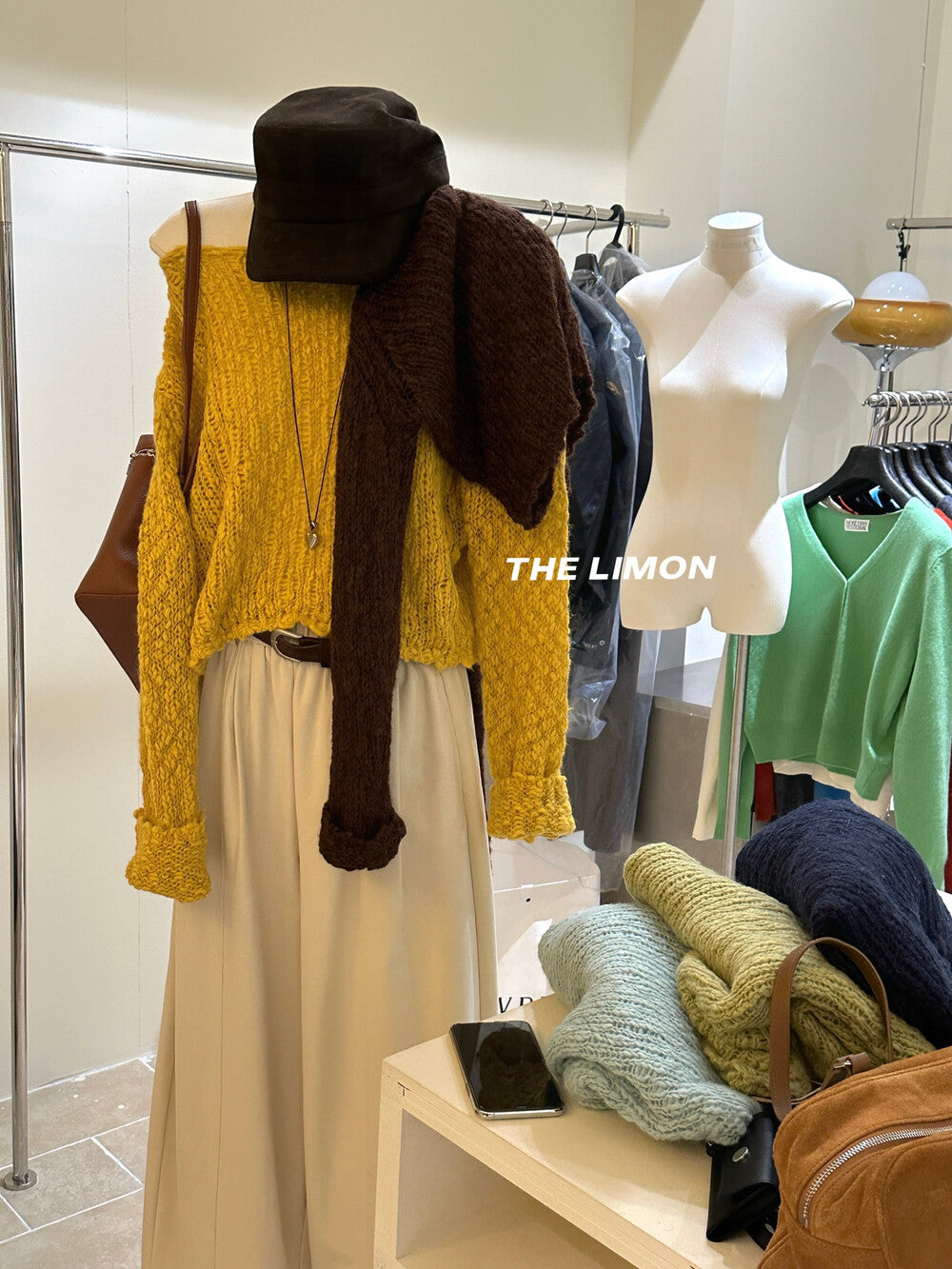 【L8327】實拍檸檬秋冬甜美氛圍軟糯花紗針織毛衣250915