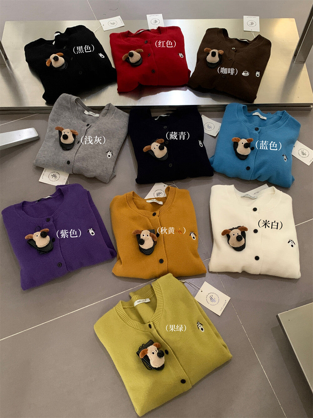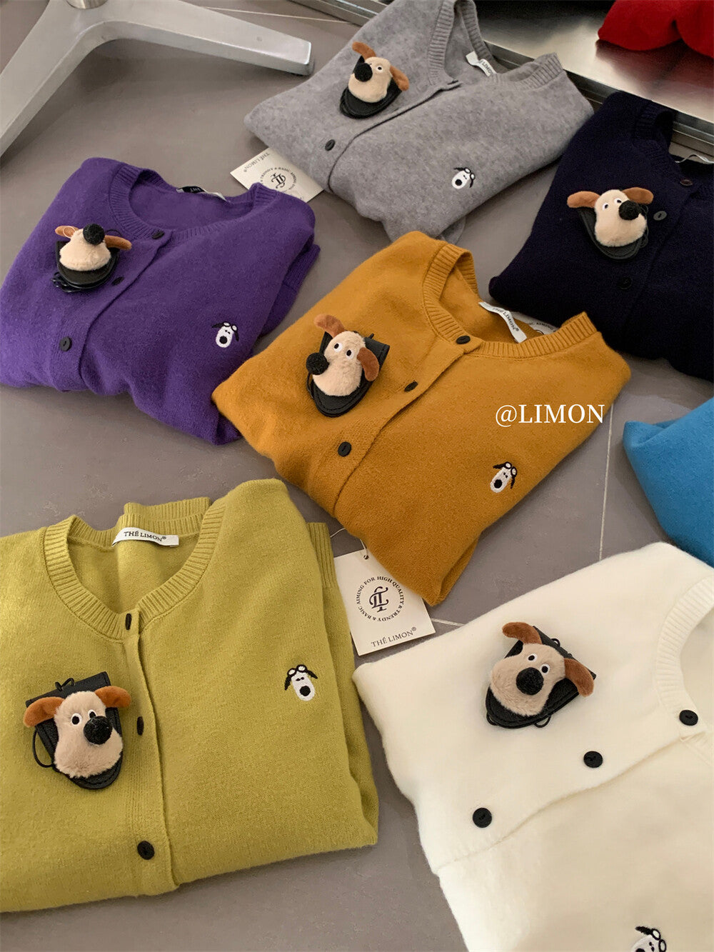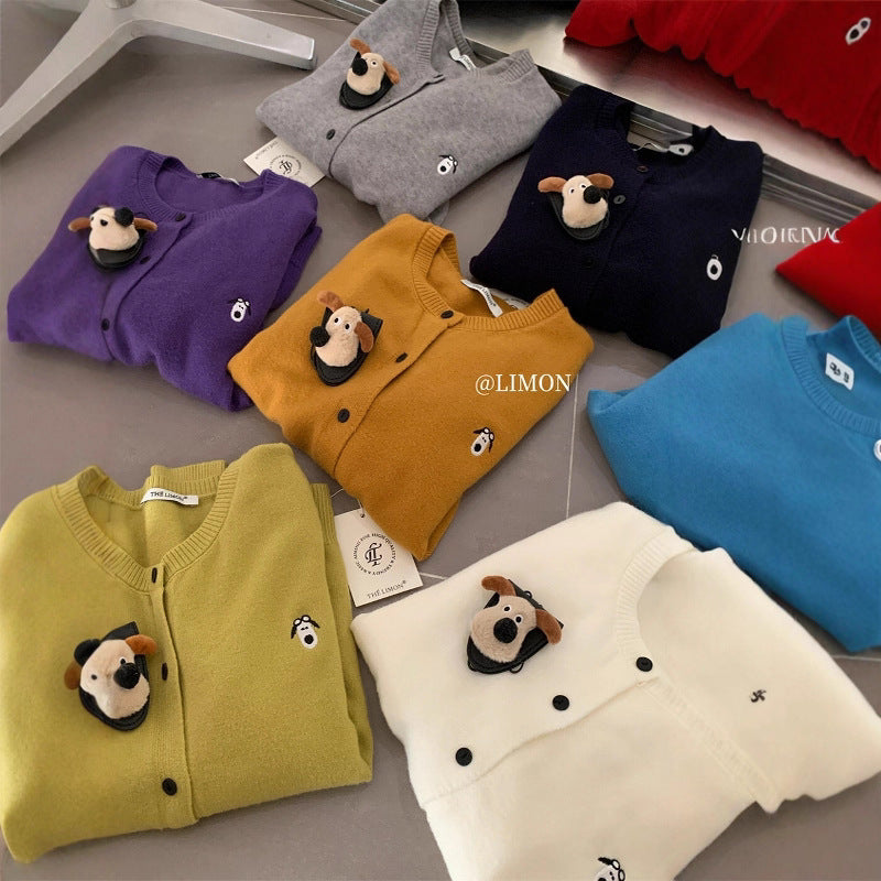 【L8339】實拍檸檬立體小狗圓領針織外套+掛飾250930