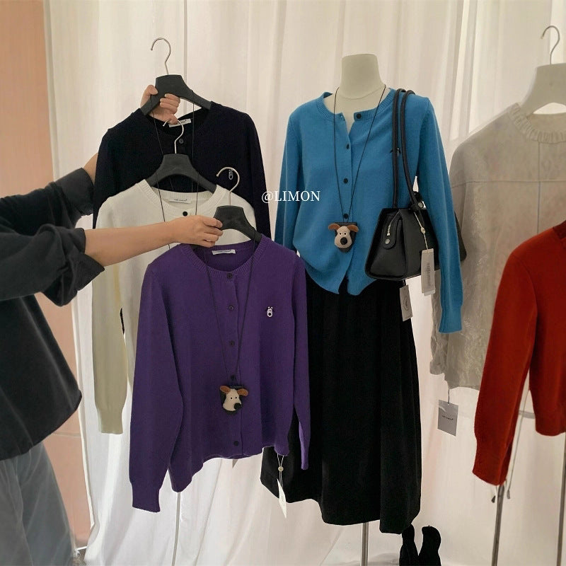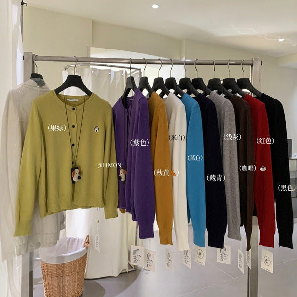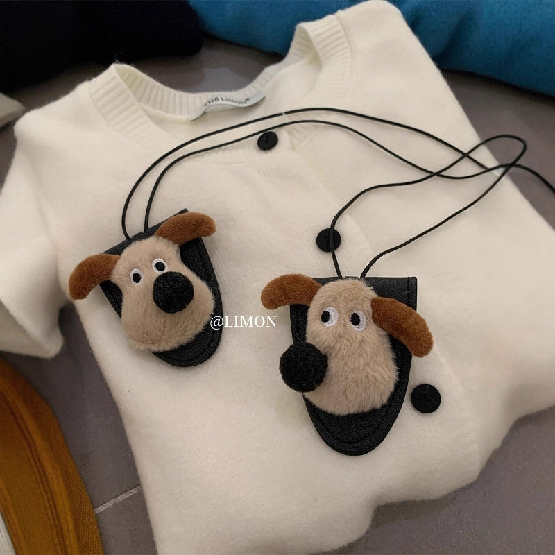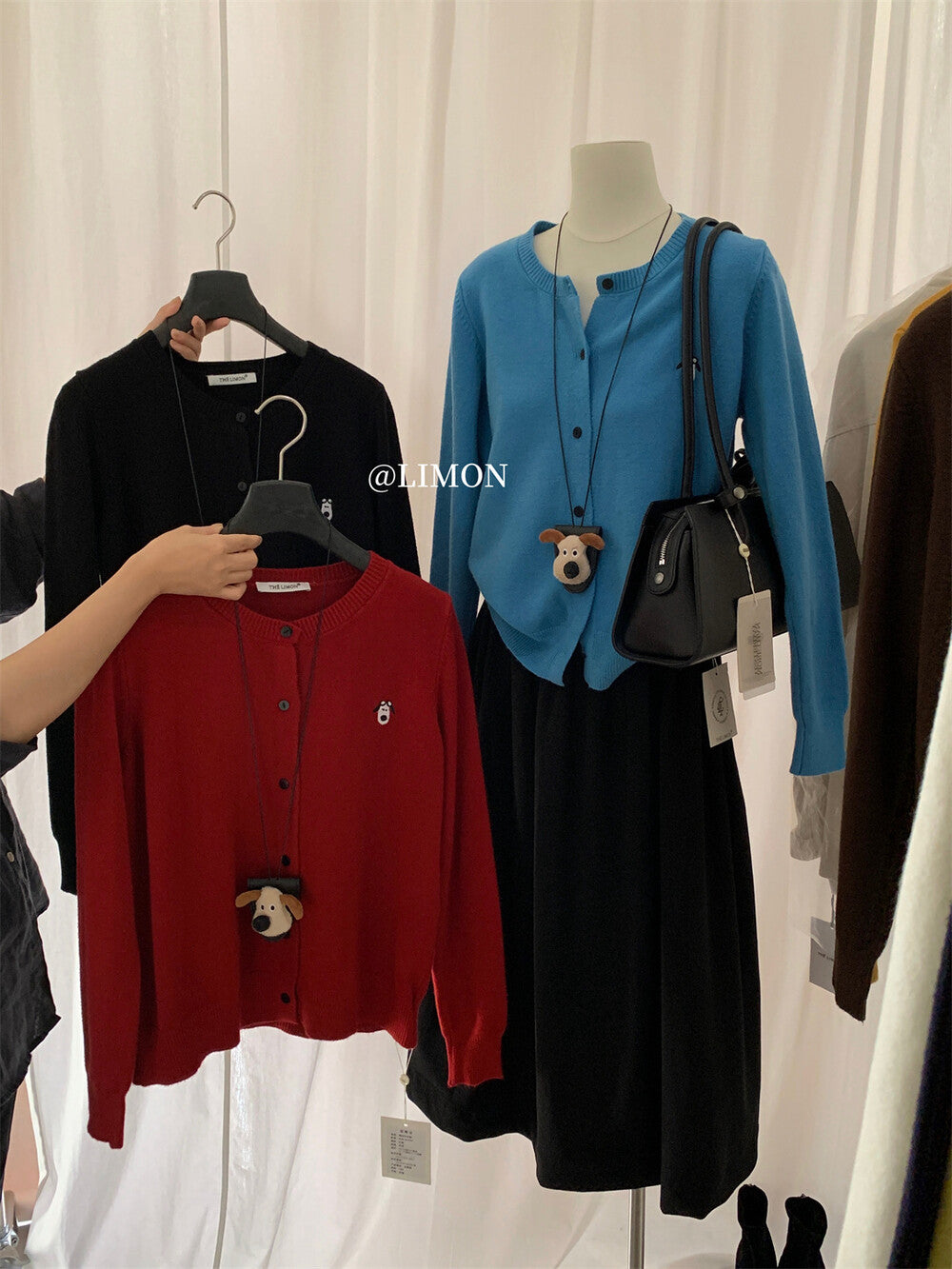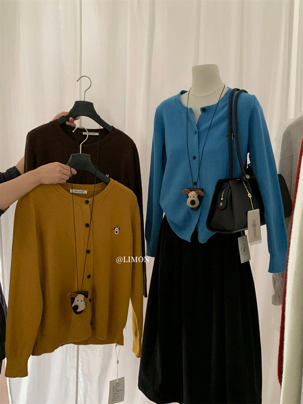 【L8339】實拍檸檬立體小狗圓領針織外套+掛飾250930