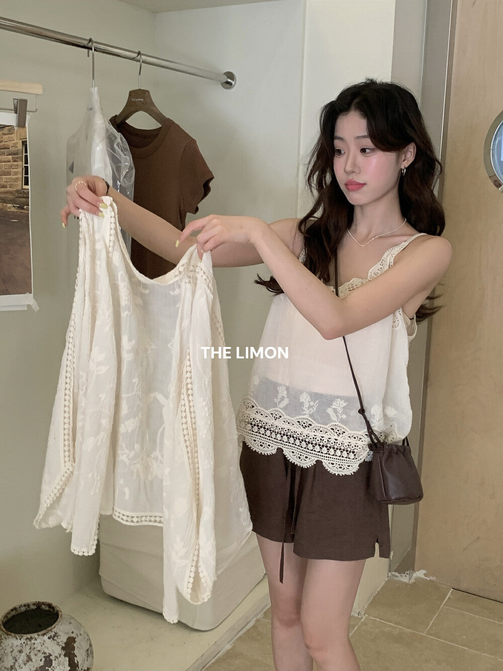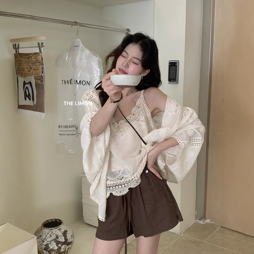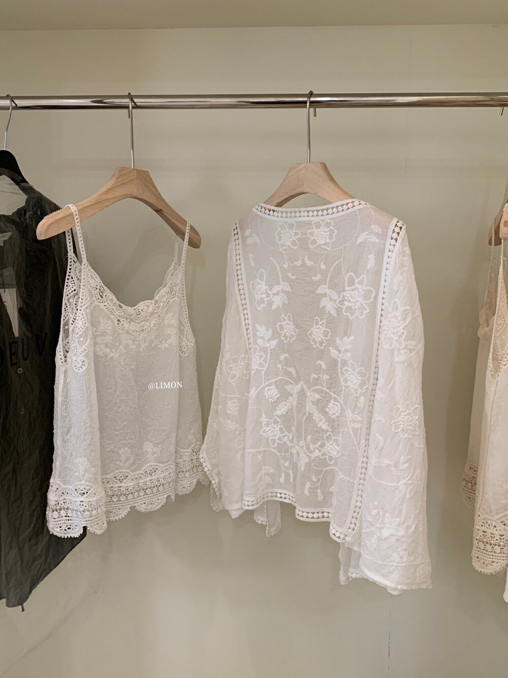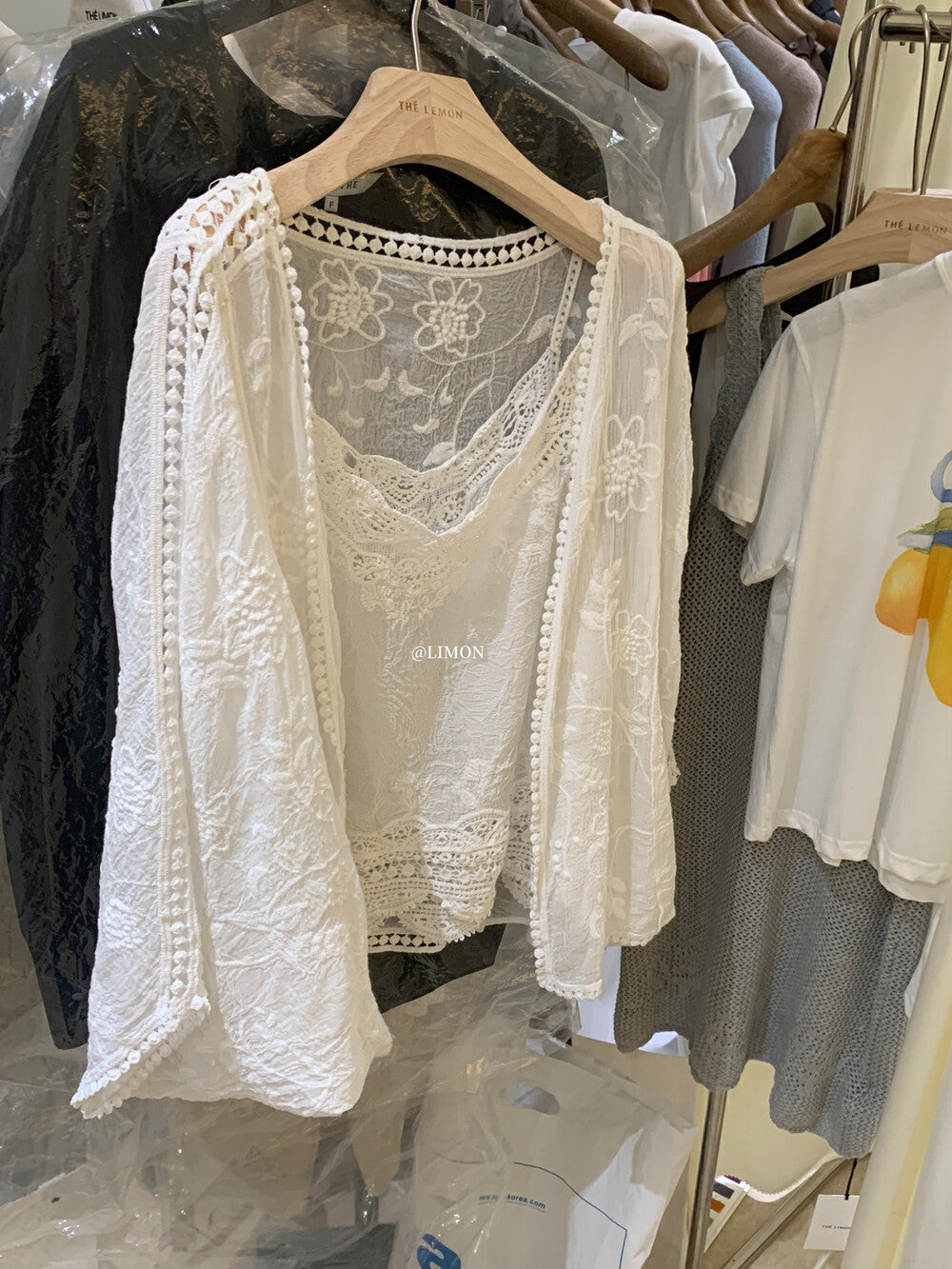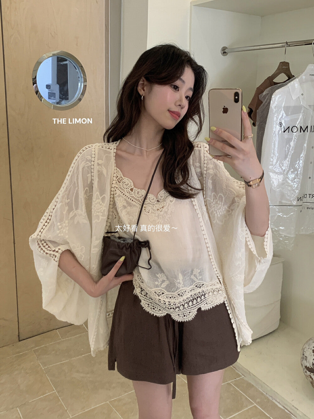 【L8661】實拍檸檬夏秋高級感刺繡防曬衫+吊帶背心套裝250915