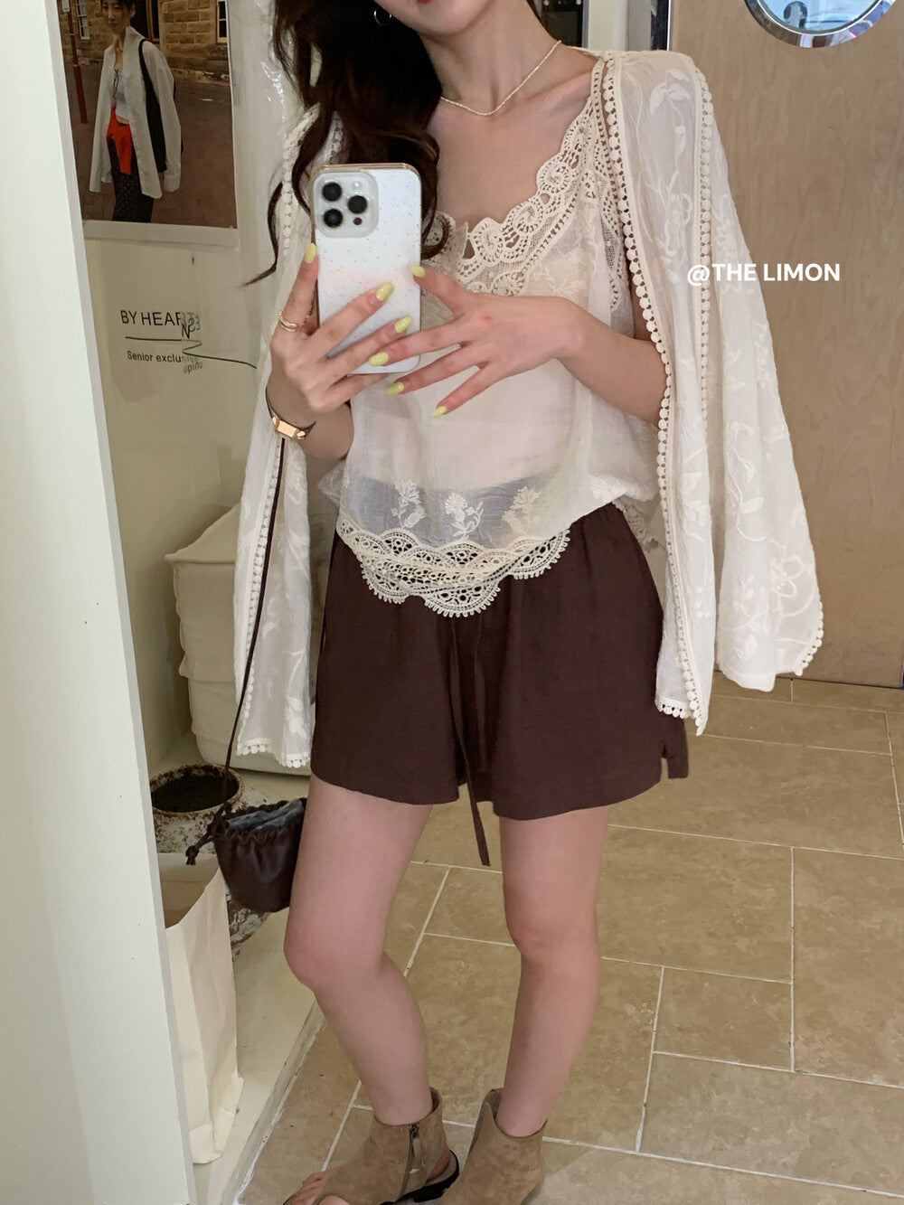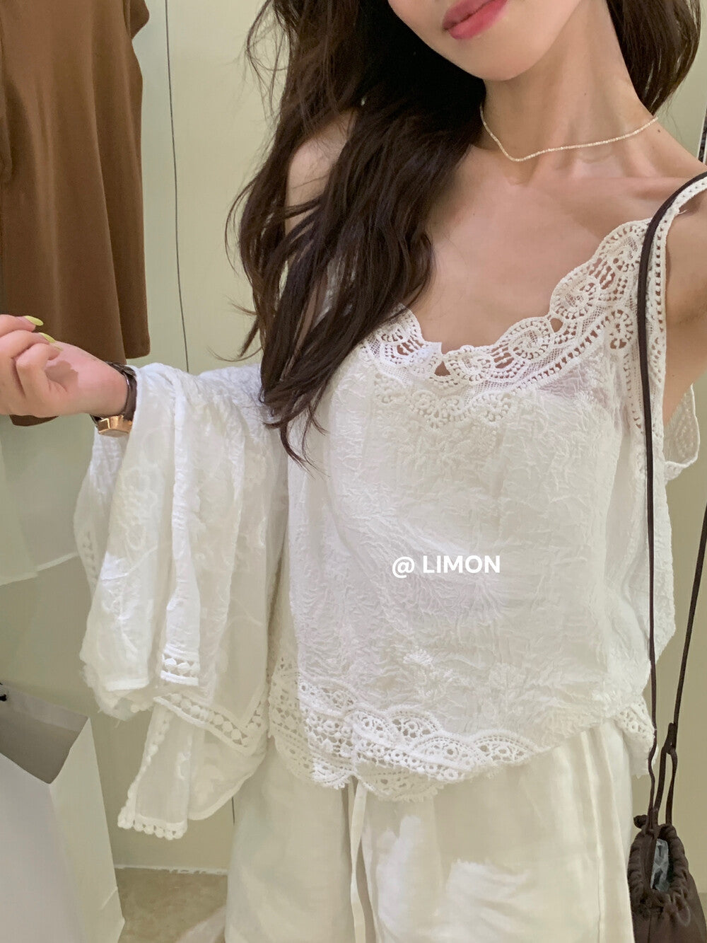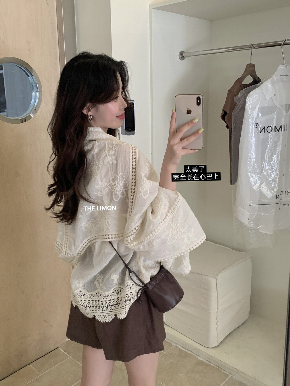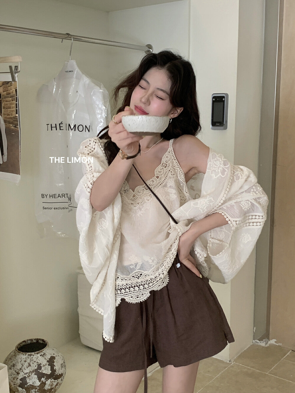 【L8661】實拍檸檬夏秋高級感刺繡防曬衫+吊帶背心套裝250915