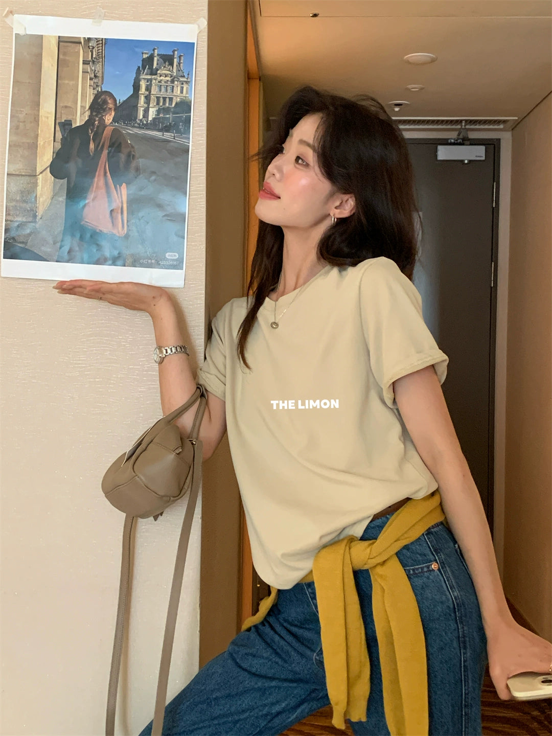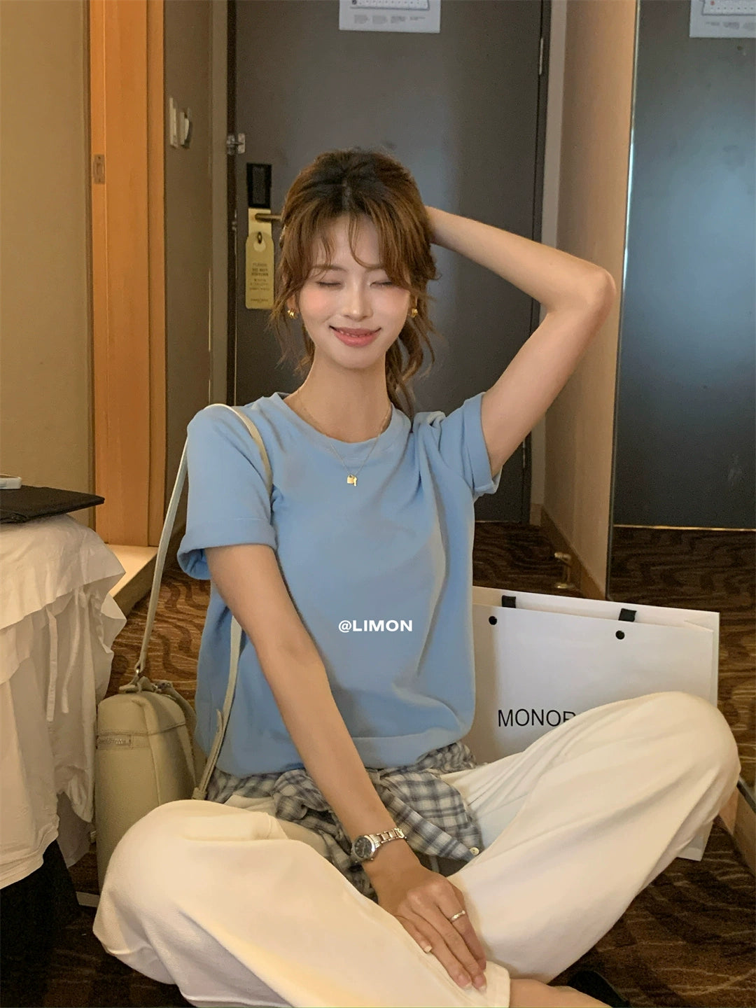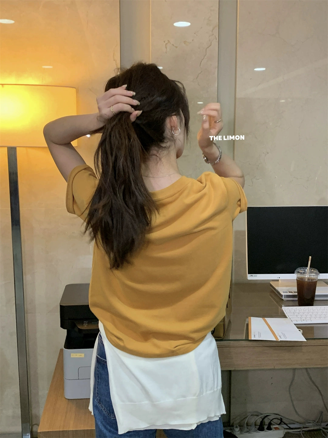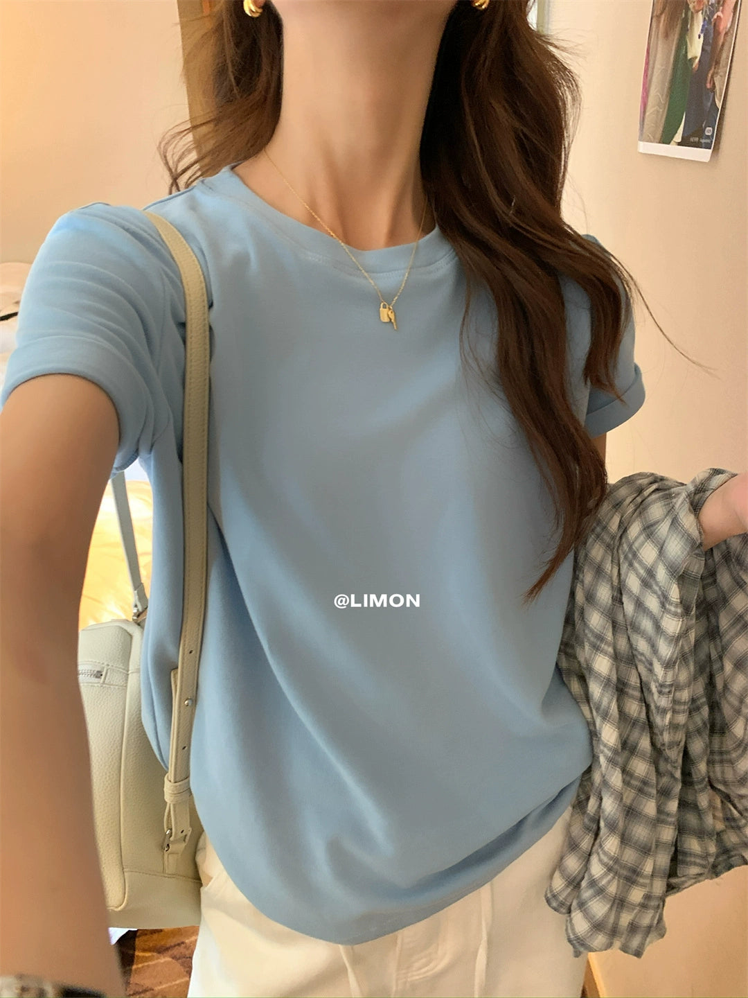 【L9036】實拍檸檬家磨毛雲朵絨短袖t恤250901