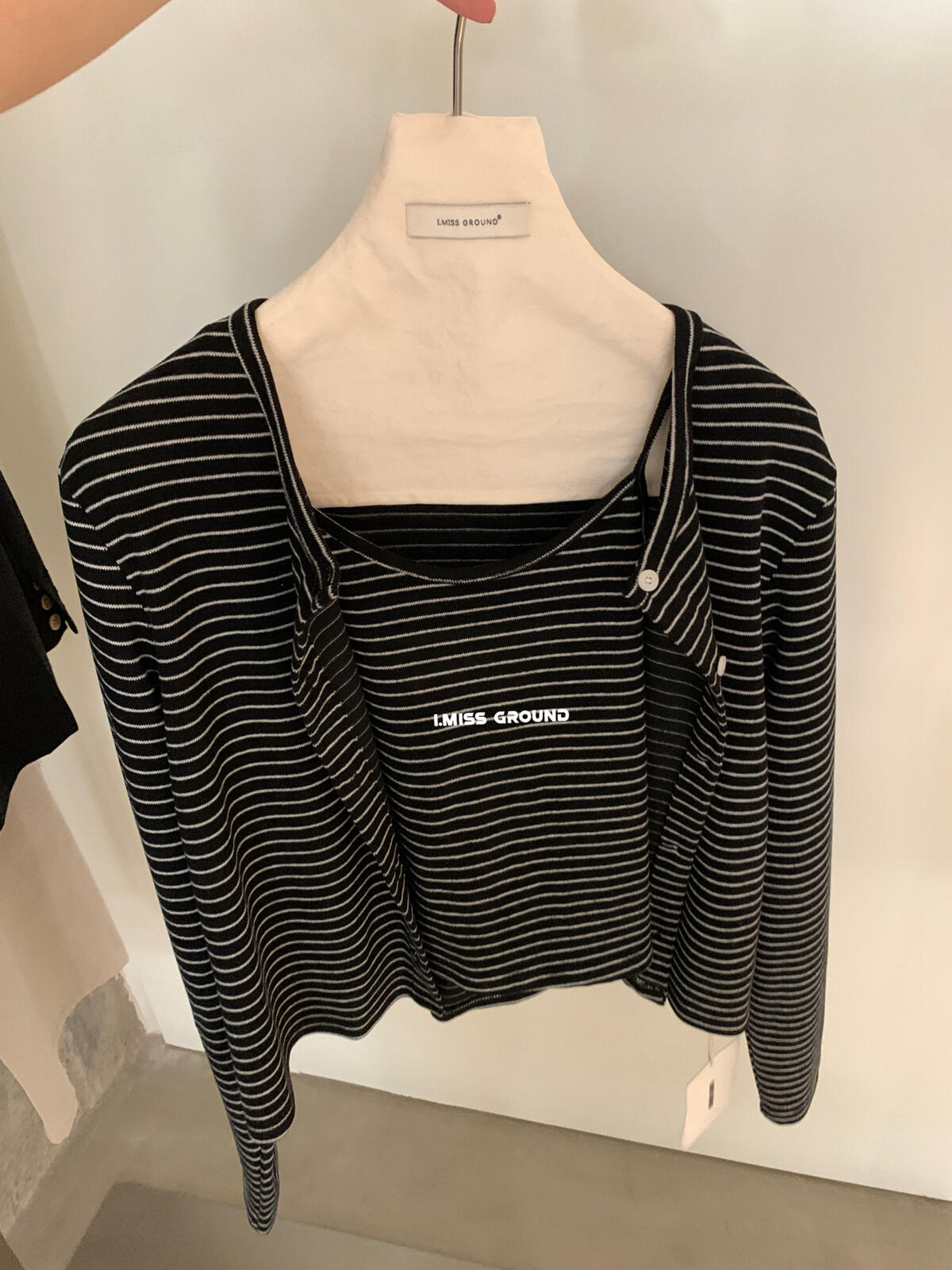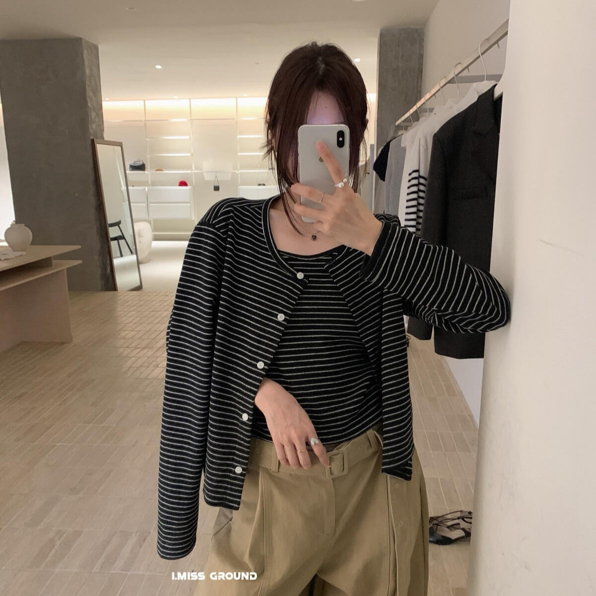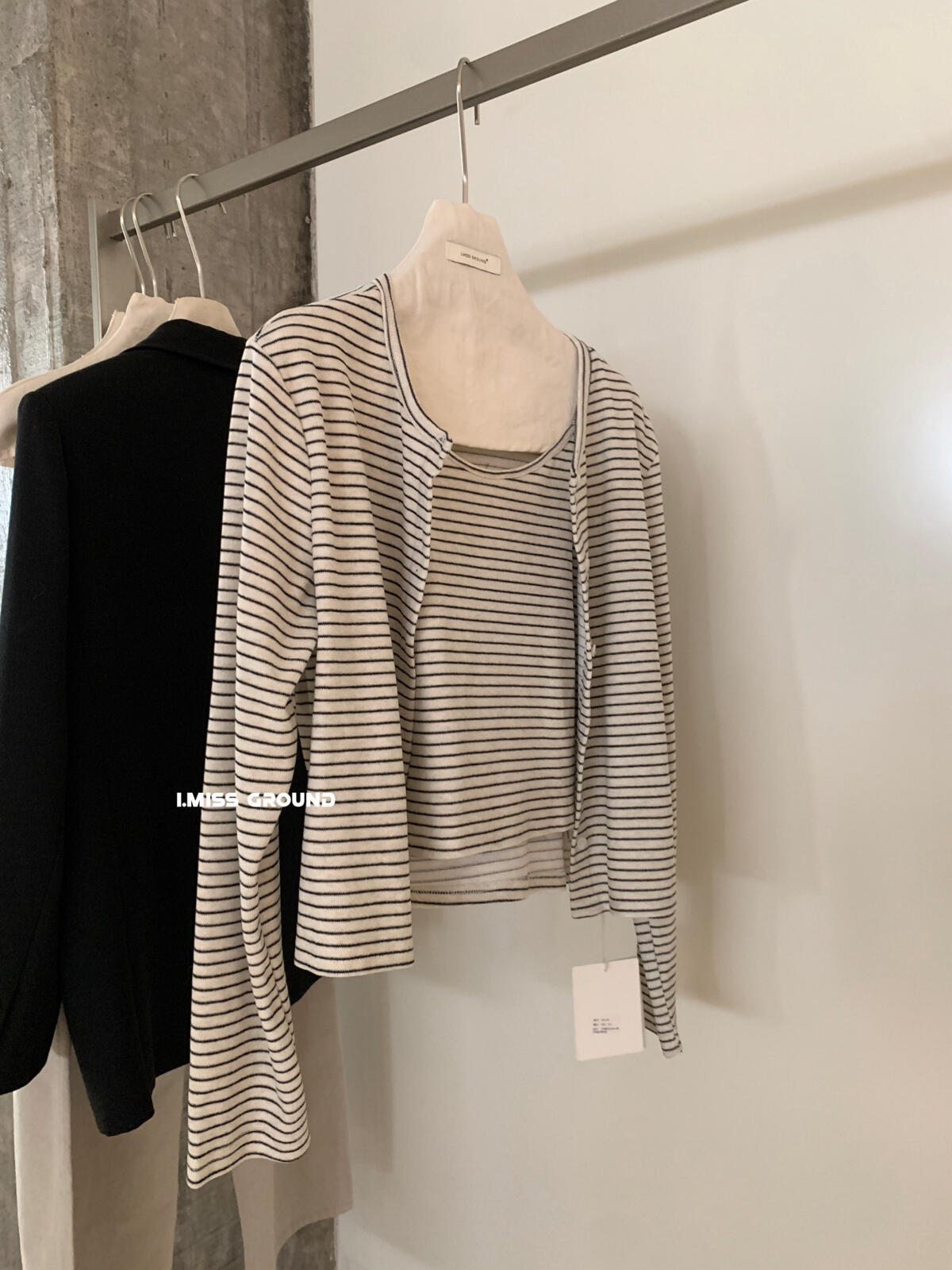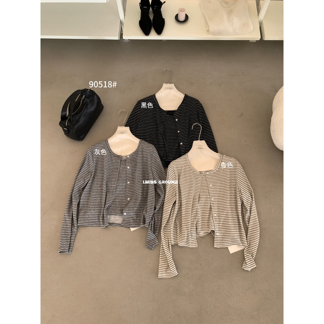 【L90518】實拍秋季簡約慵懶氣質條紋背心+小外套250923