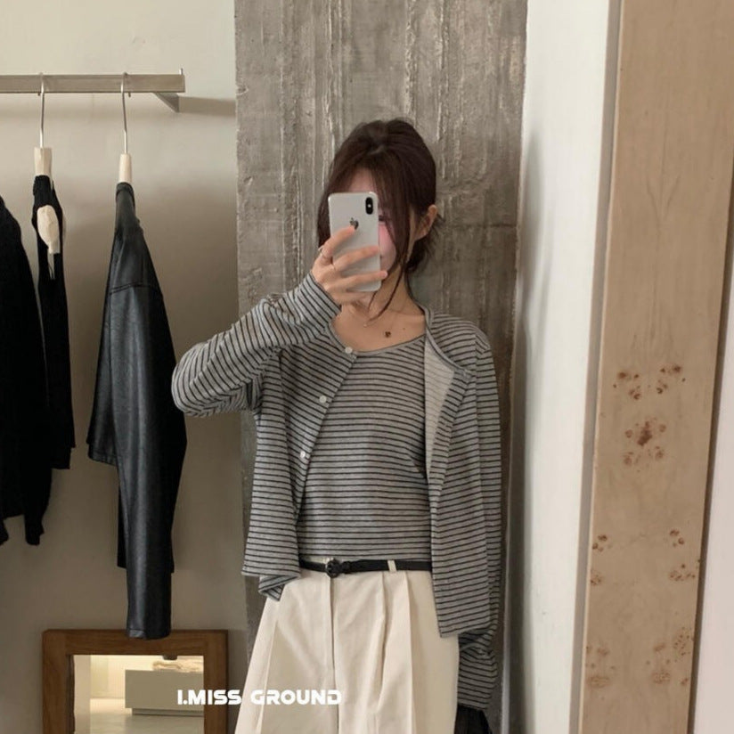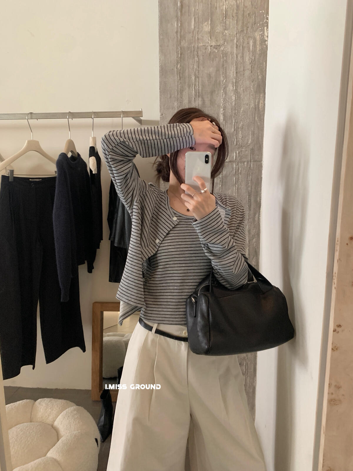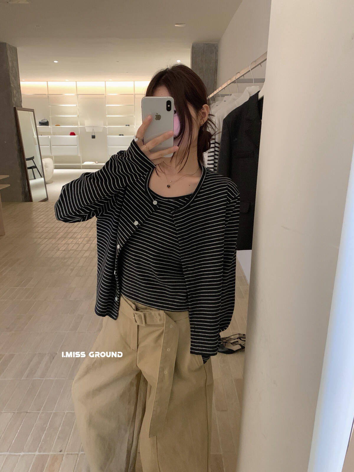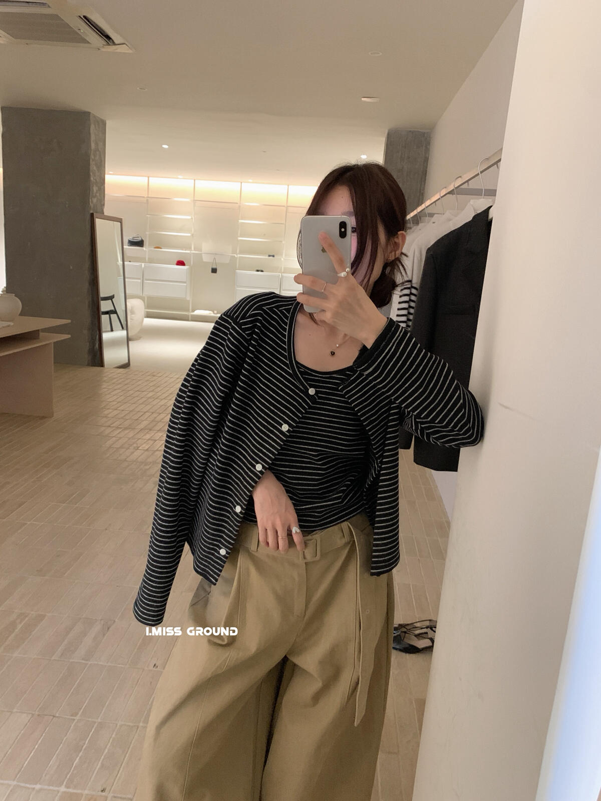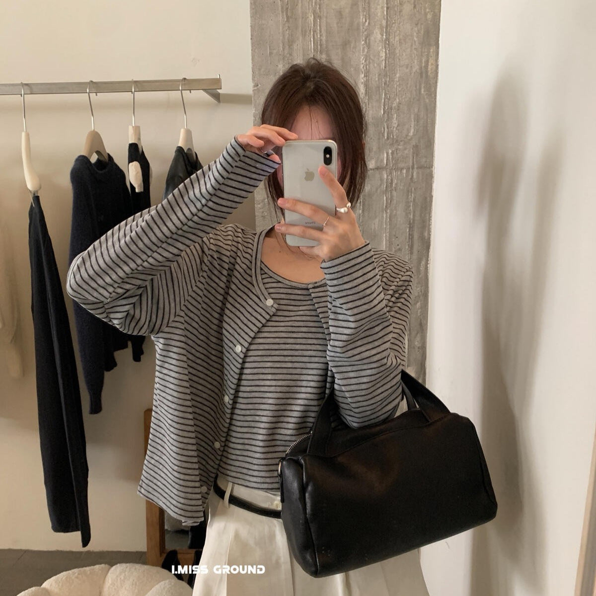 【L90518】實拍秋季簡約慵懶氣質條紋背心+小外套250923