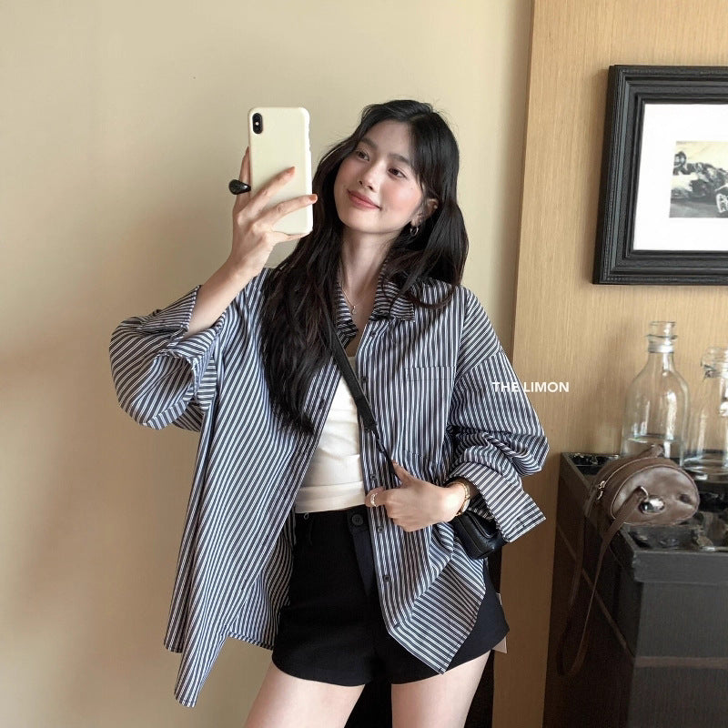 【L9070】實拍檸檬家秋裝慵懶防曬休閒寬鬆顯瘦長袖襯衫250901