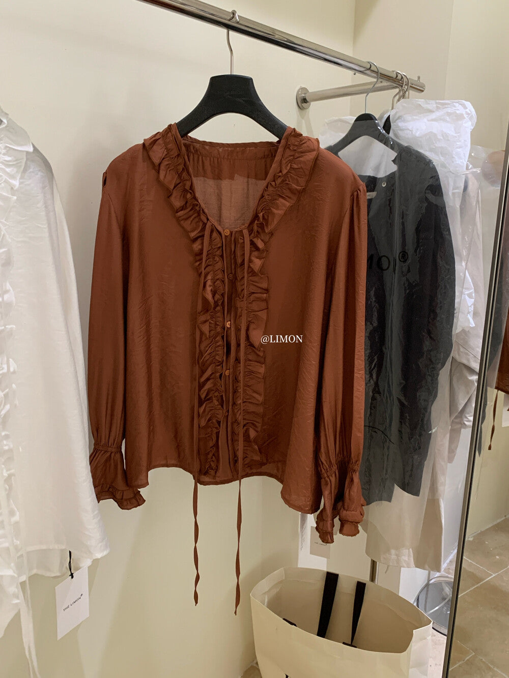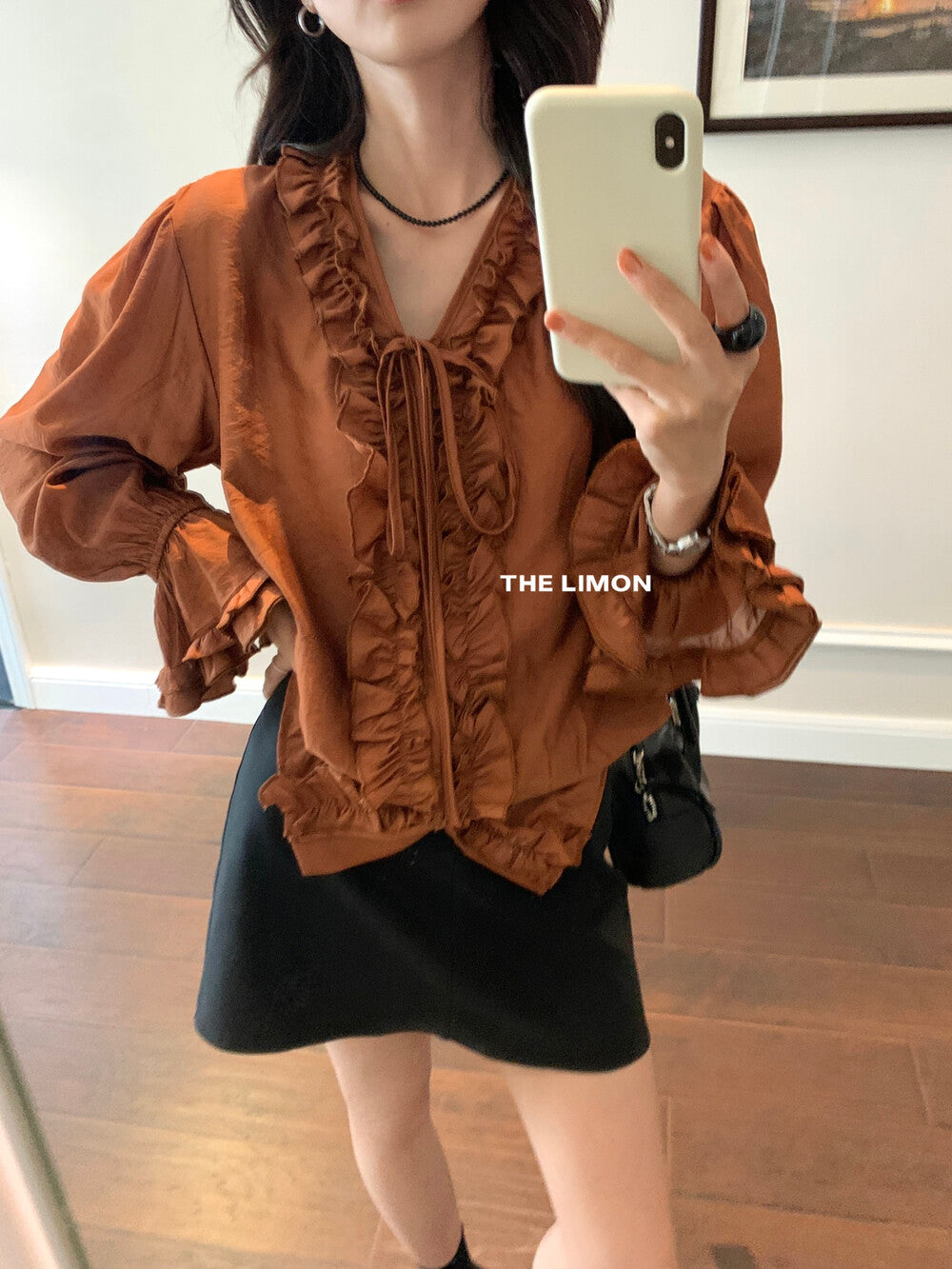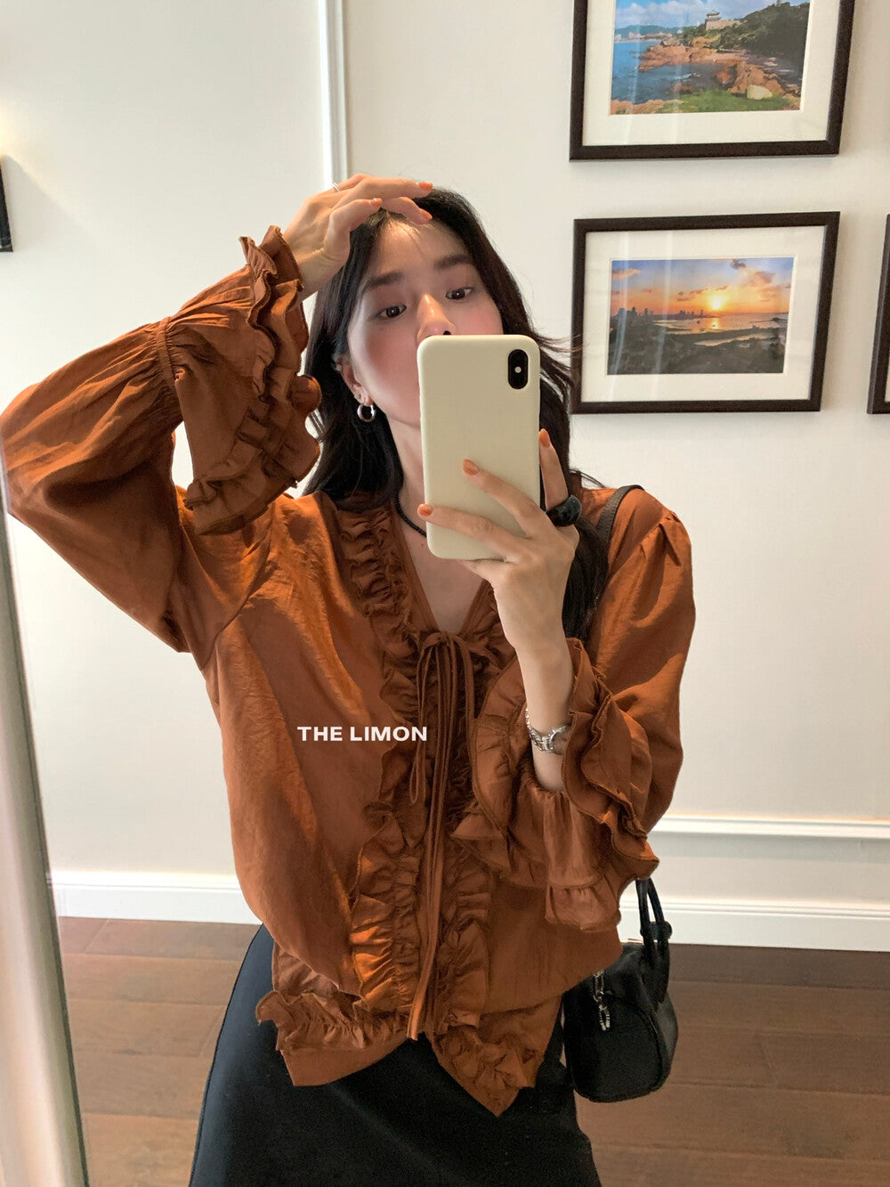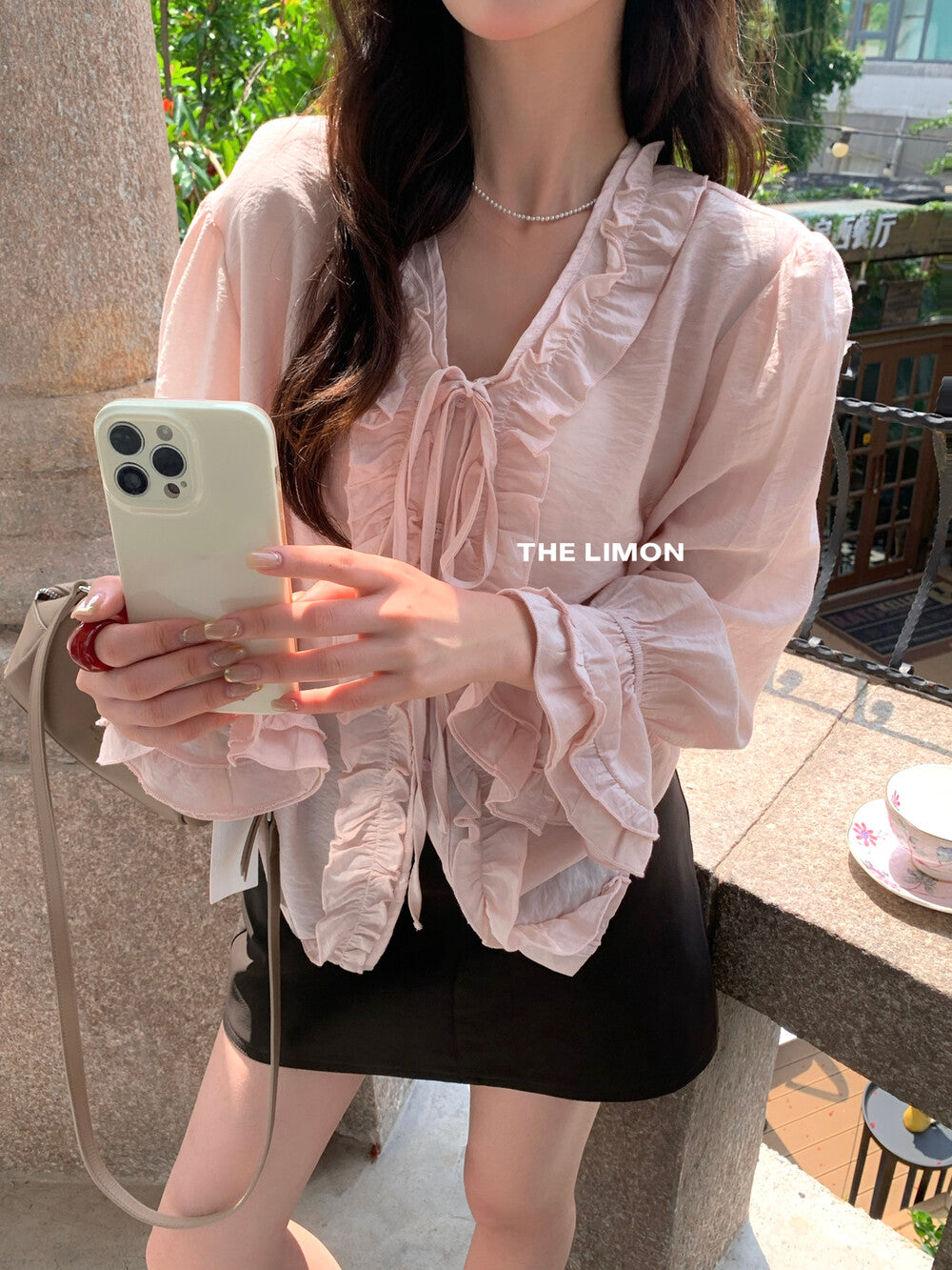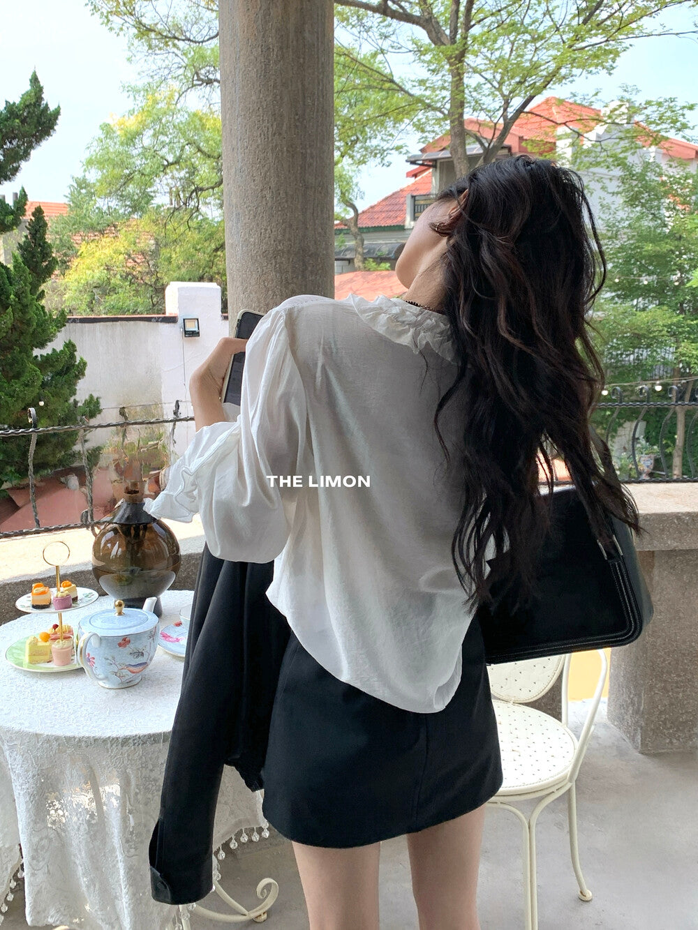 【L9071】實拍檸檬家法式設計感褶皺荷葉温柔長袖襯衫250901
