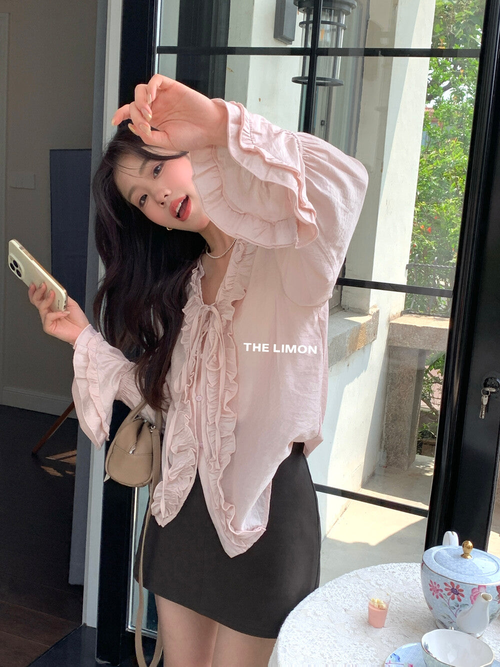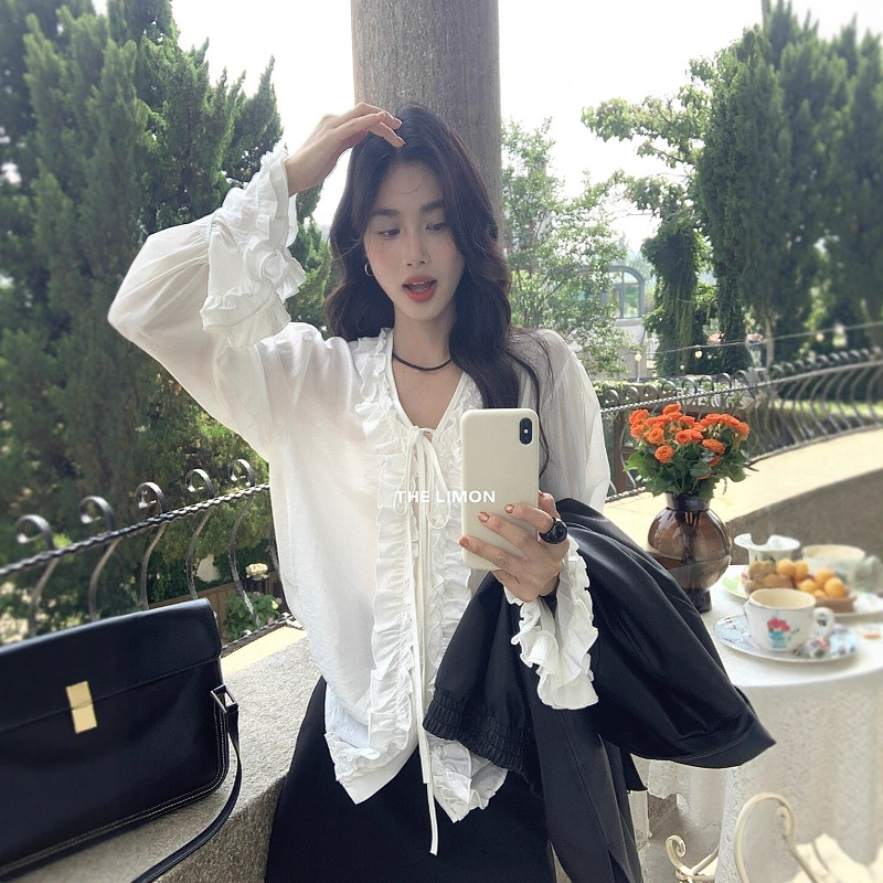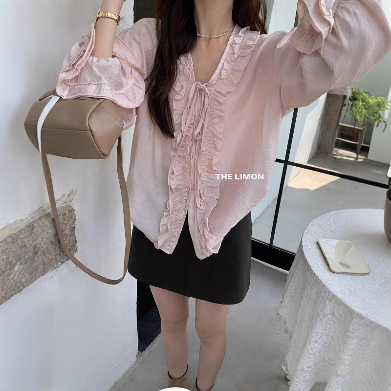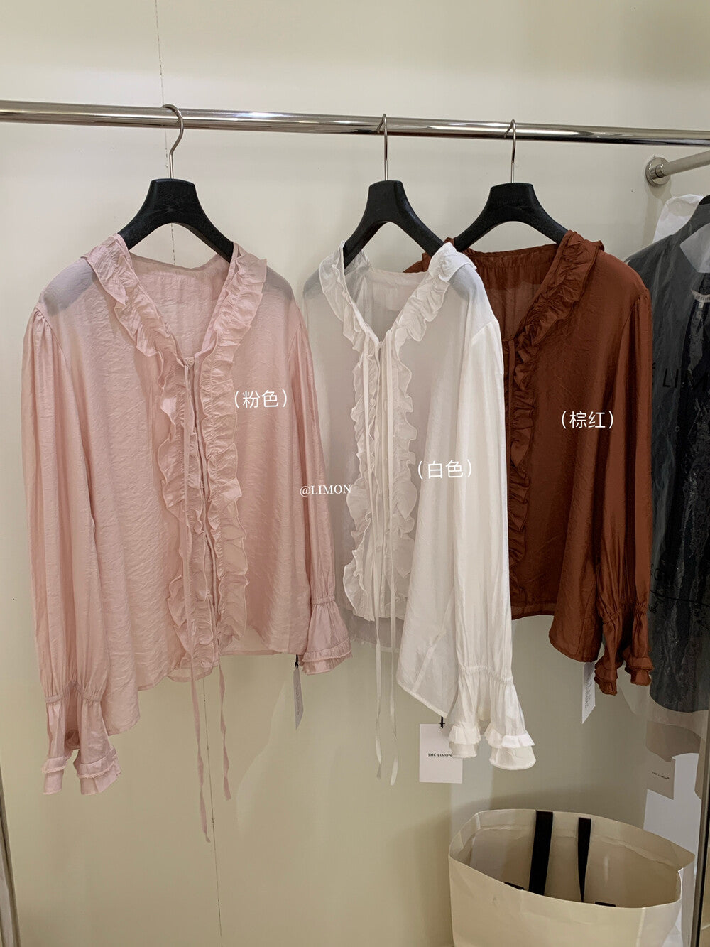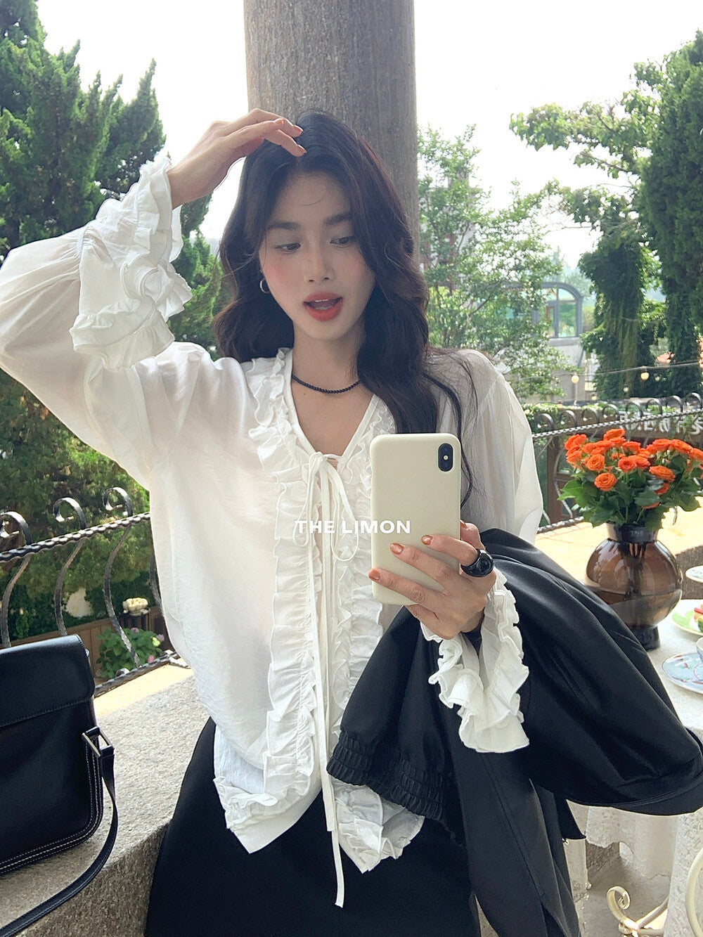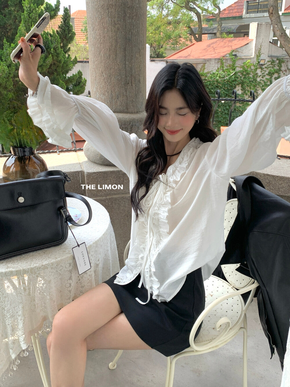 【L9071】實拍檸檬家法式設計感褶皺荷葉温柔長袖襯衫250901
