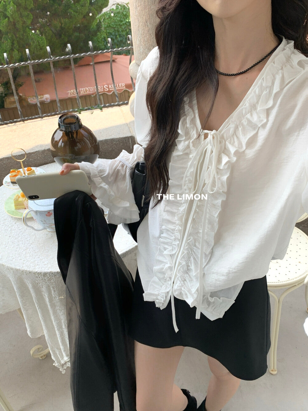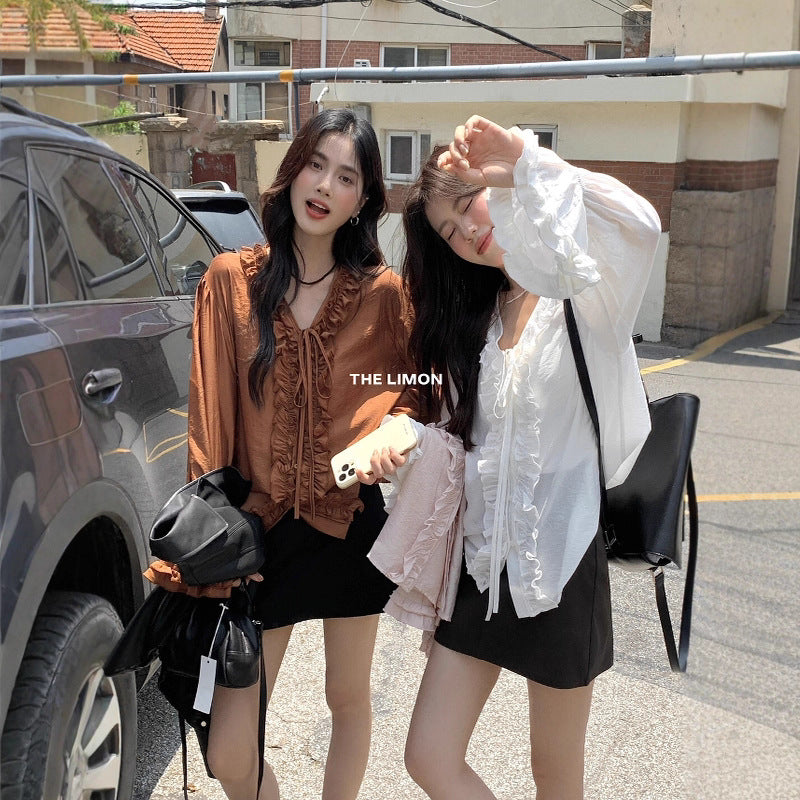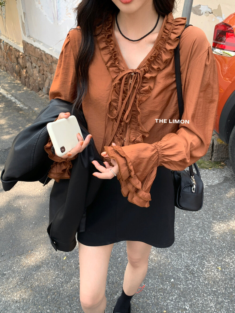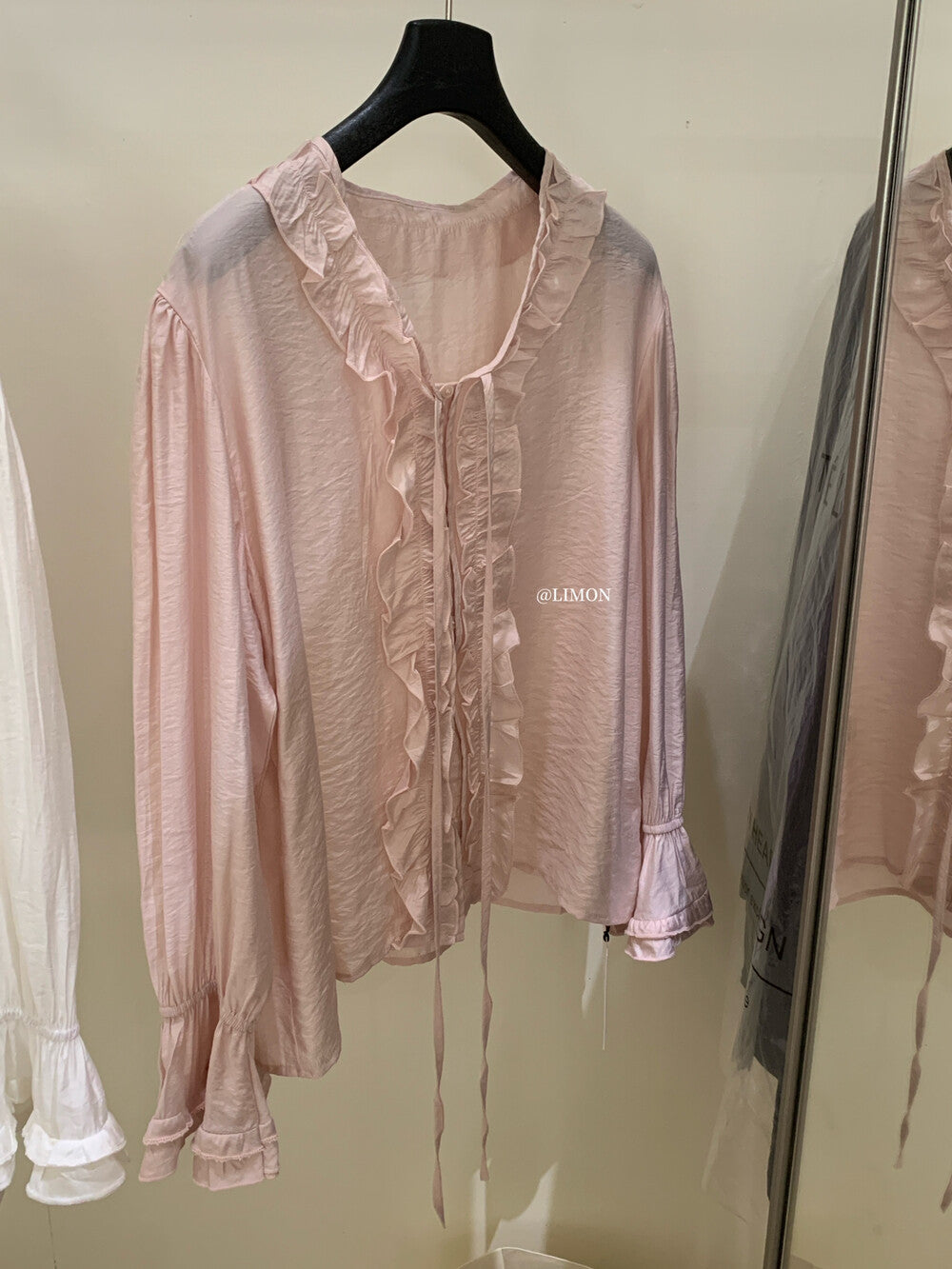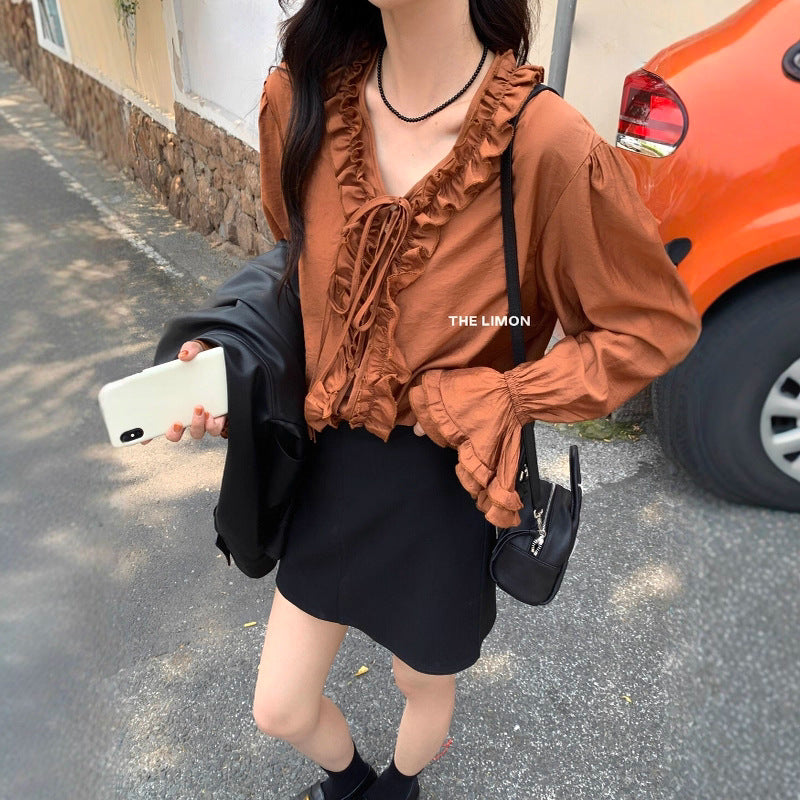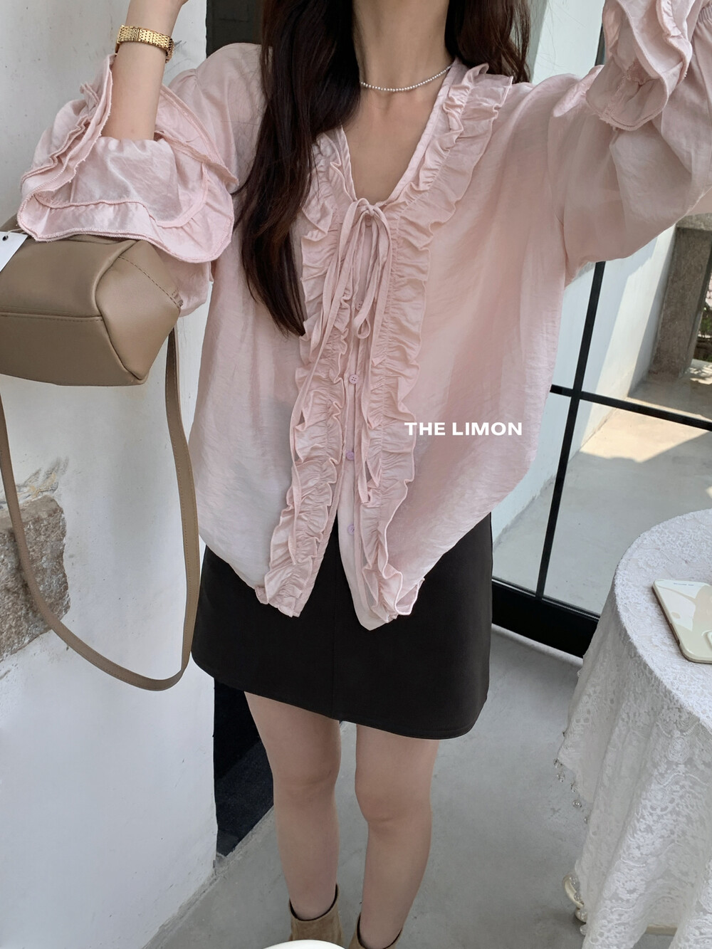 【L9071】實拍檸檬家法式設計感褶皺荷葉温柔長袖襯衫250901