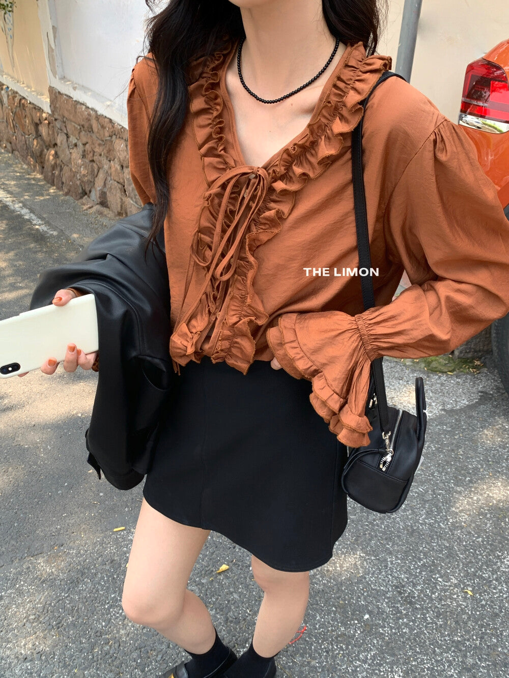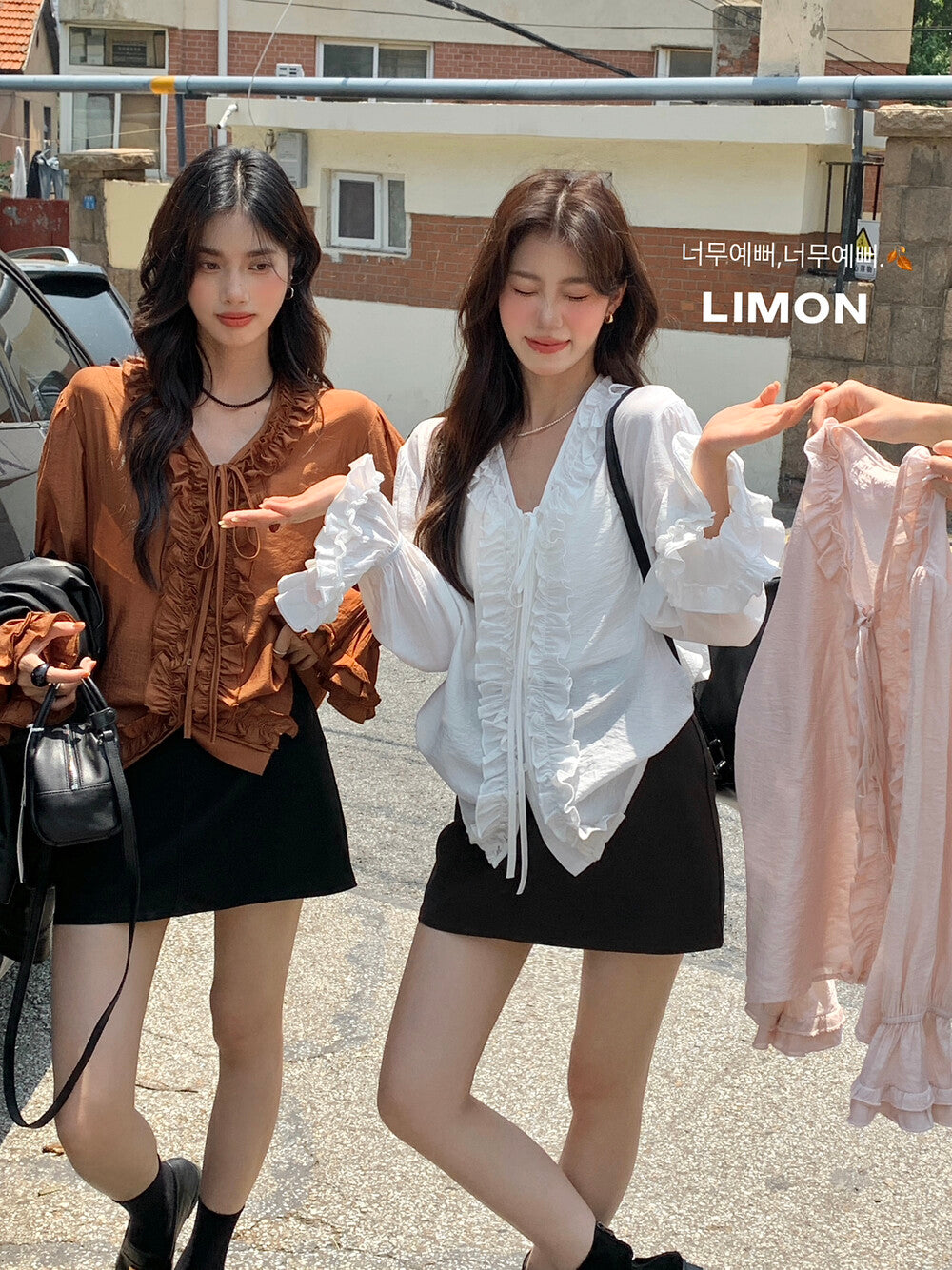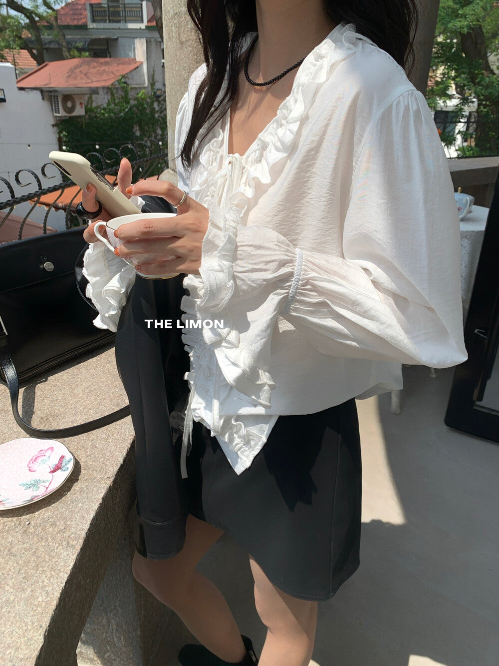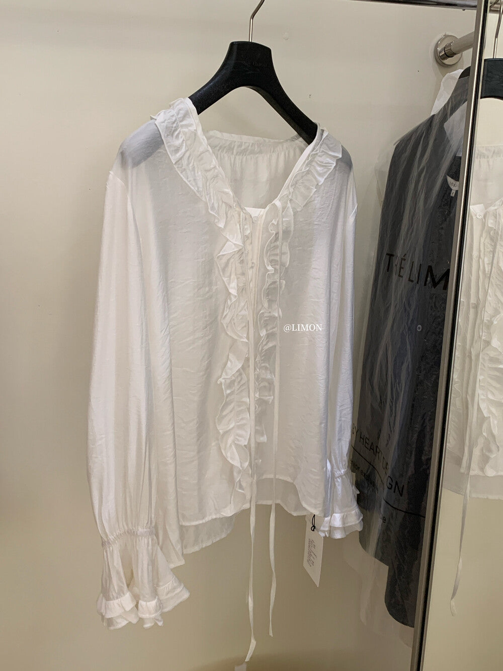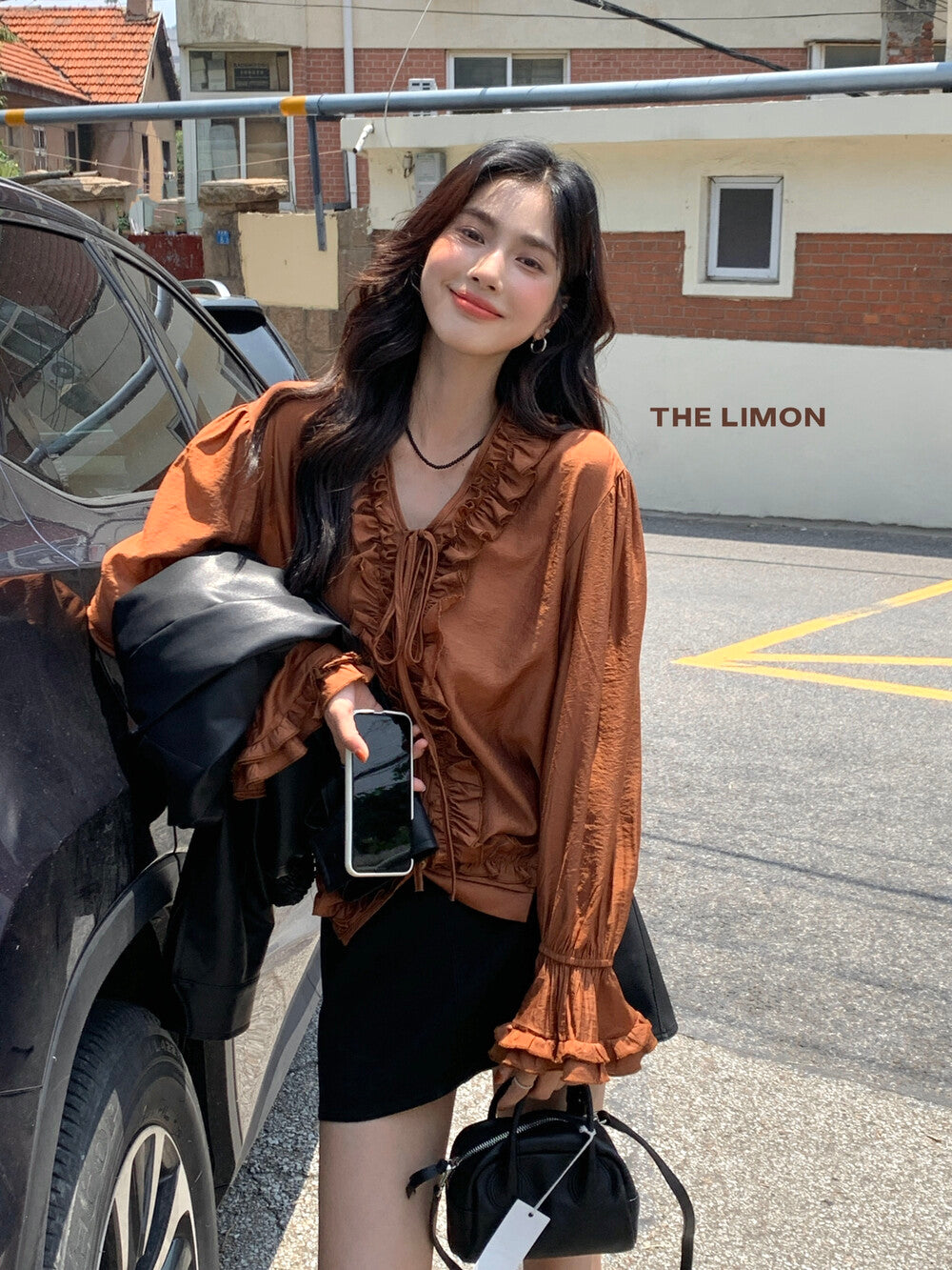 【L9071】實拍檸檬家法式設計感褶皺荷葉温柔長袖襯衫250901