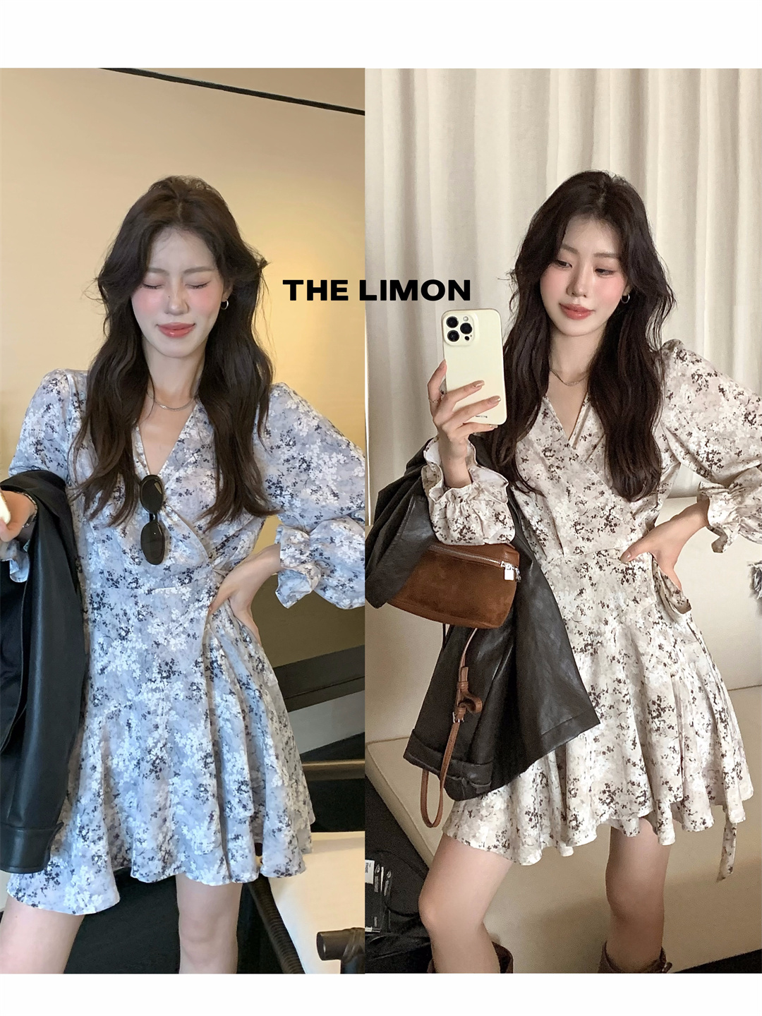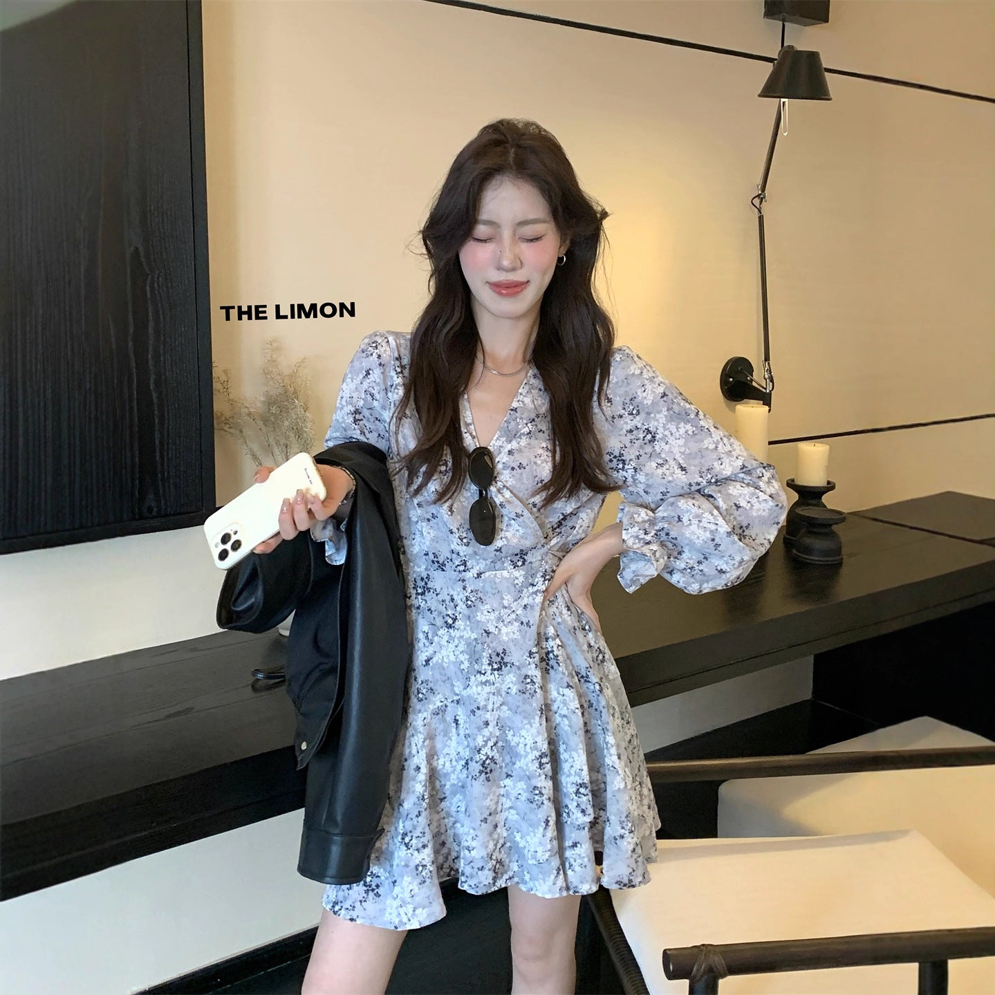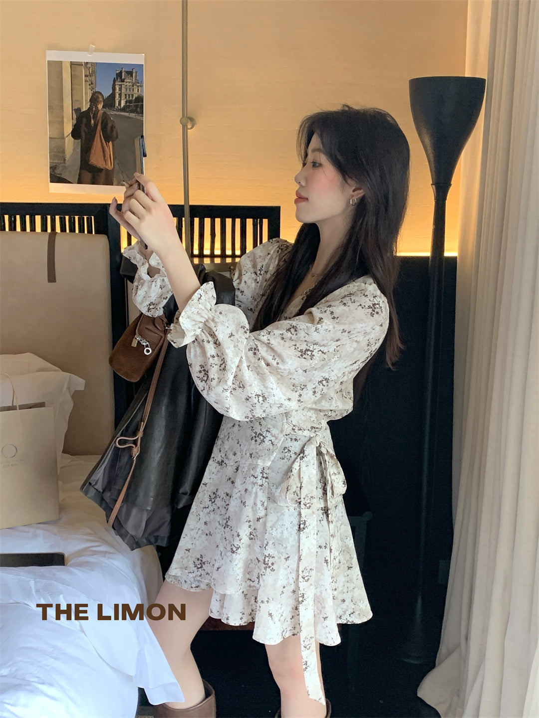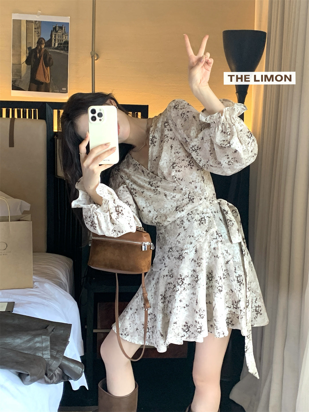 【L9072】實拍檸檬家法式甜美雪紡碎花收腰顯瘦短洋裝250901