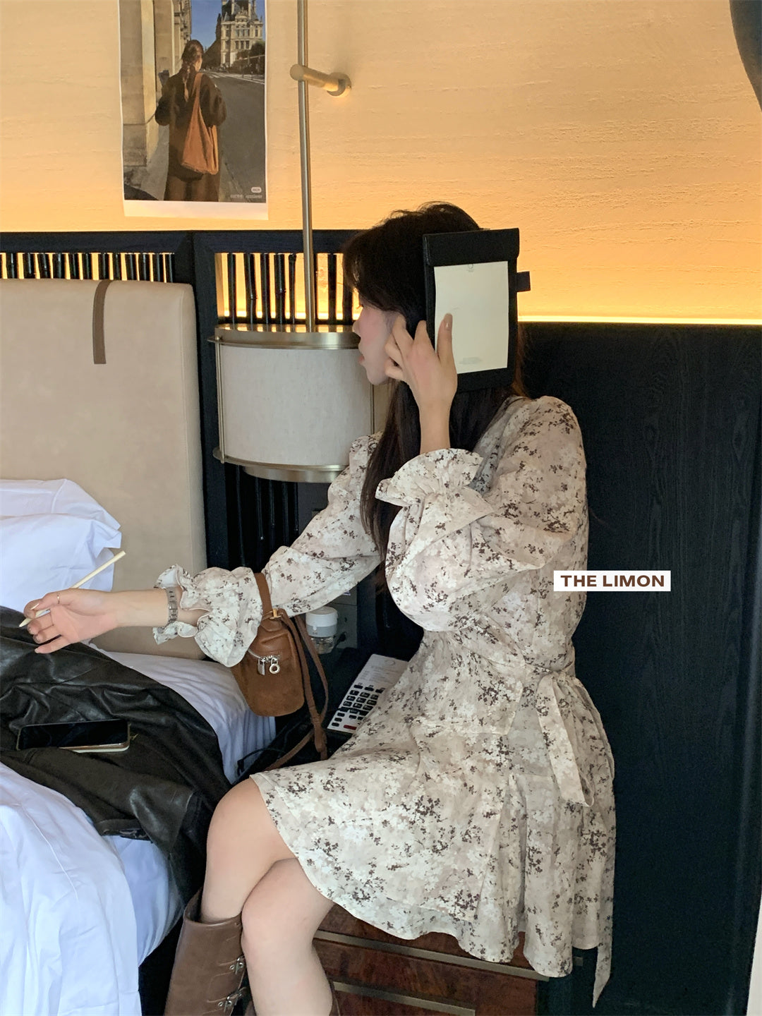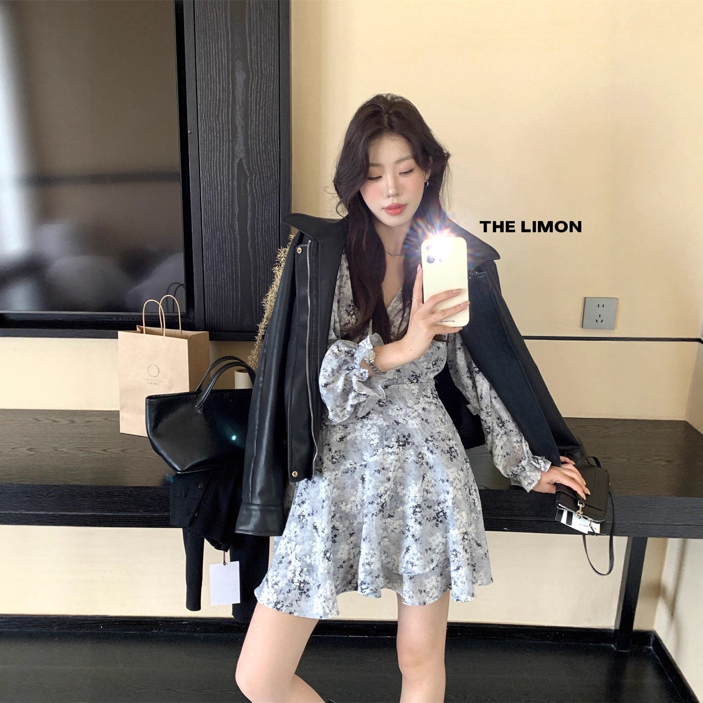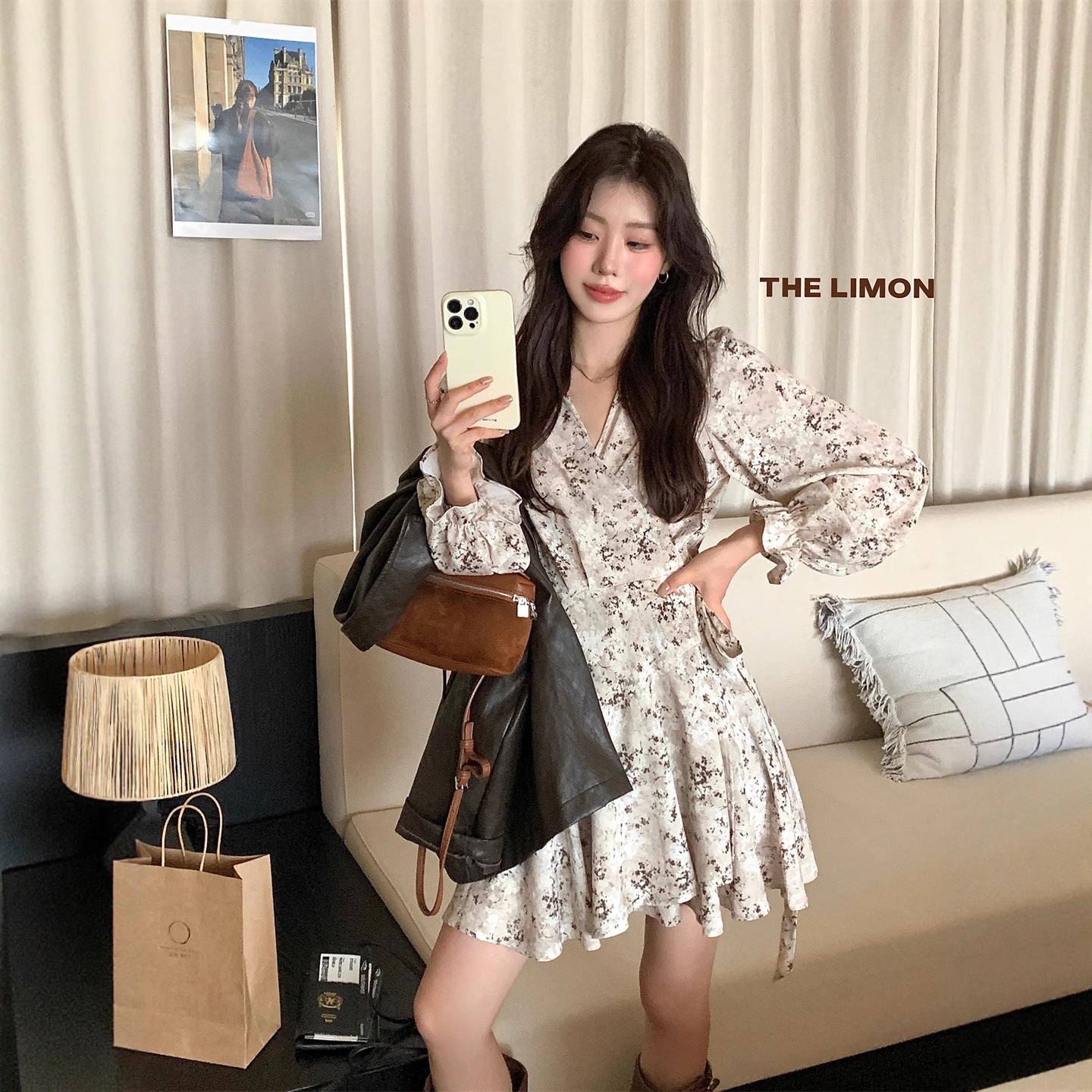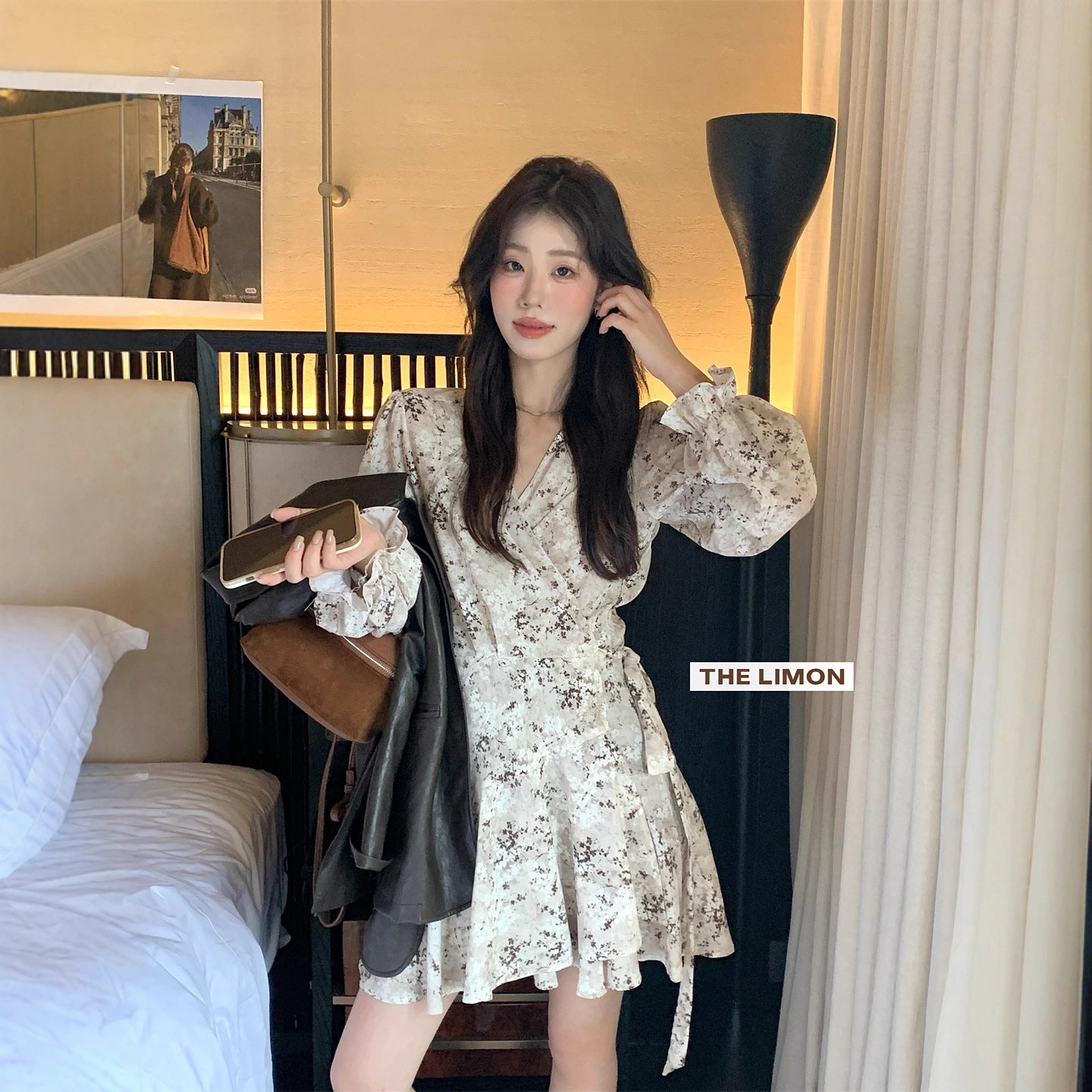 【L9072】實拍檸檬家法式甜美雪紡碎花收腰顯瘦短洋裝250901