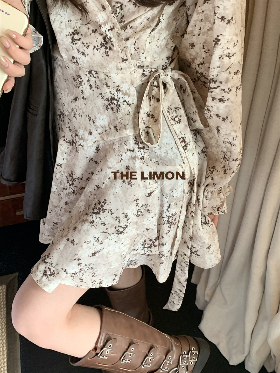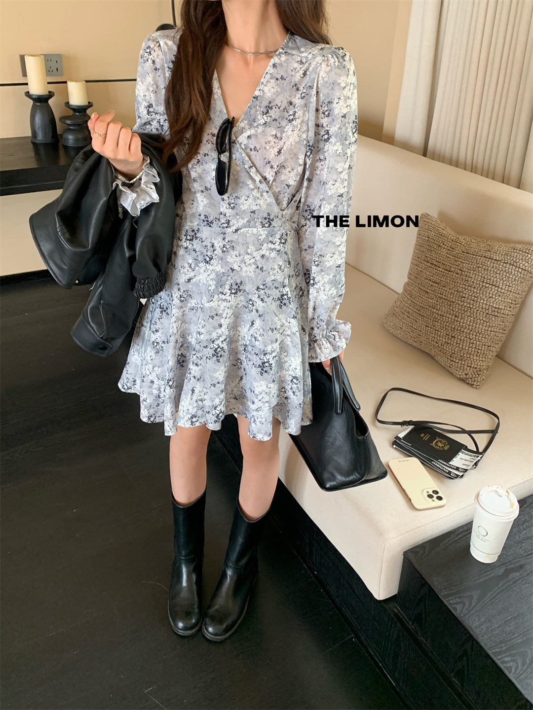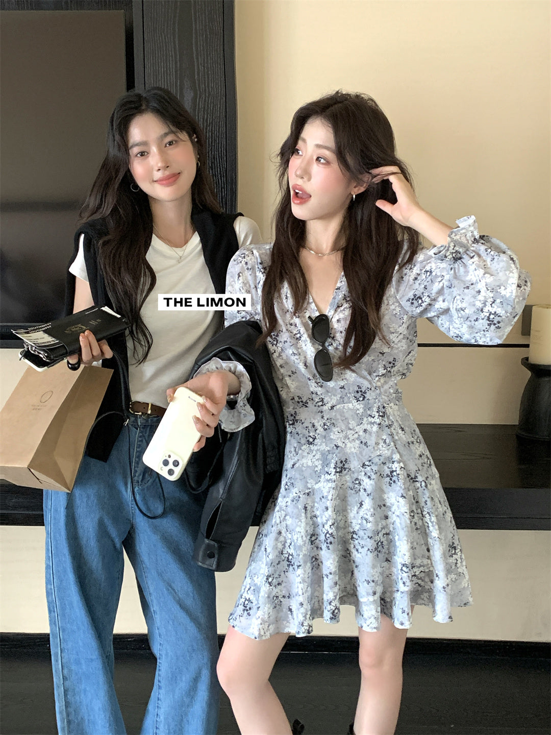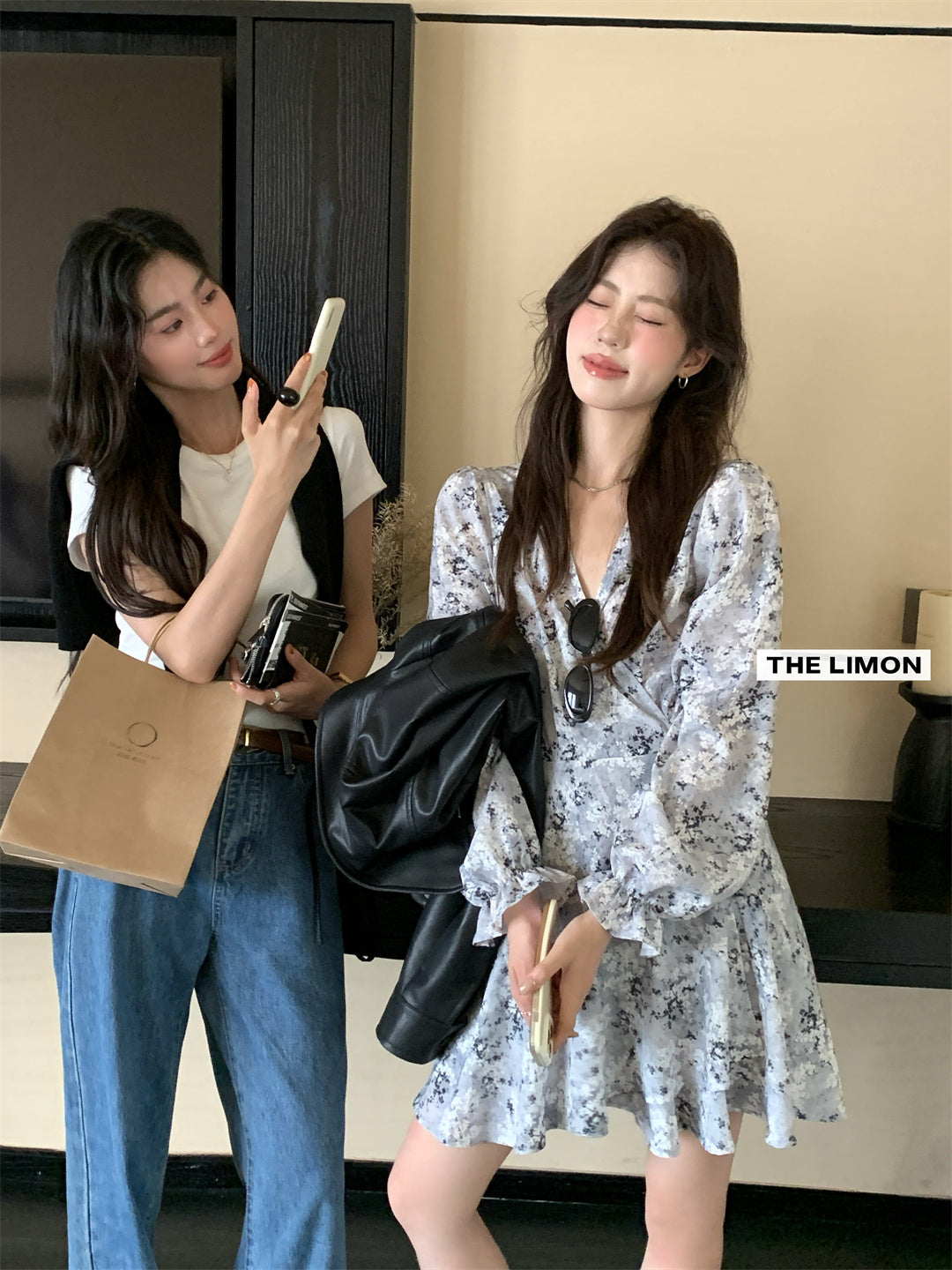 【L9072】實拍檸檬家法式甜美雪紡碎花收腰顯瘦短洋裝250901