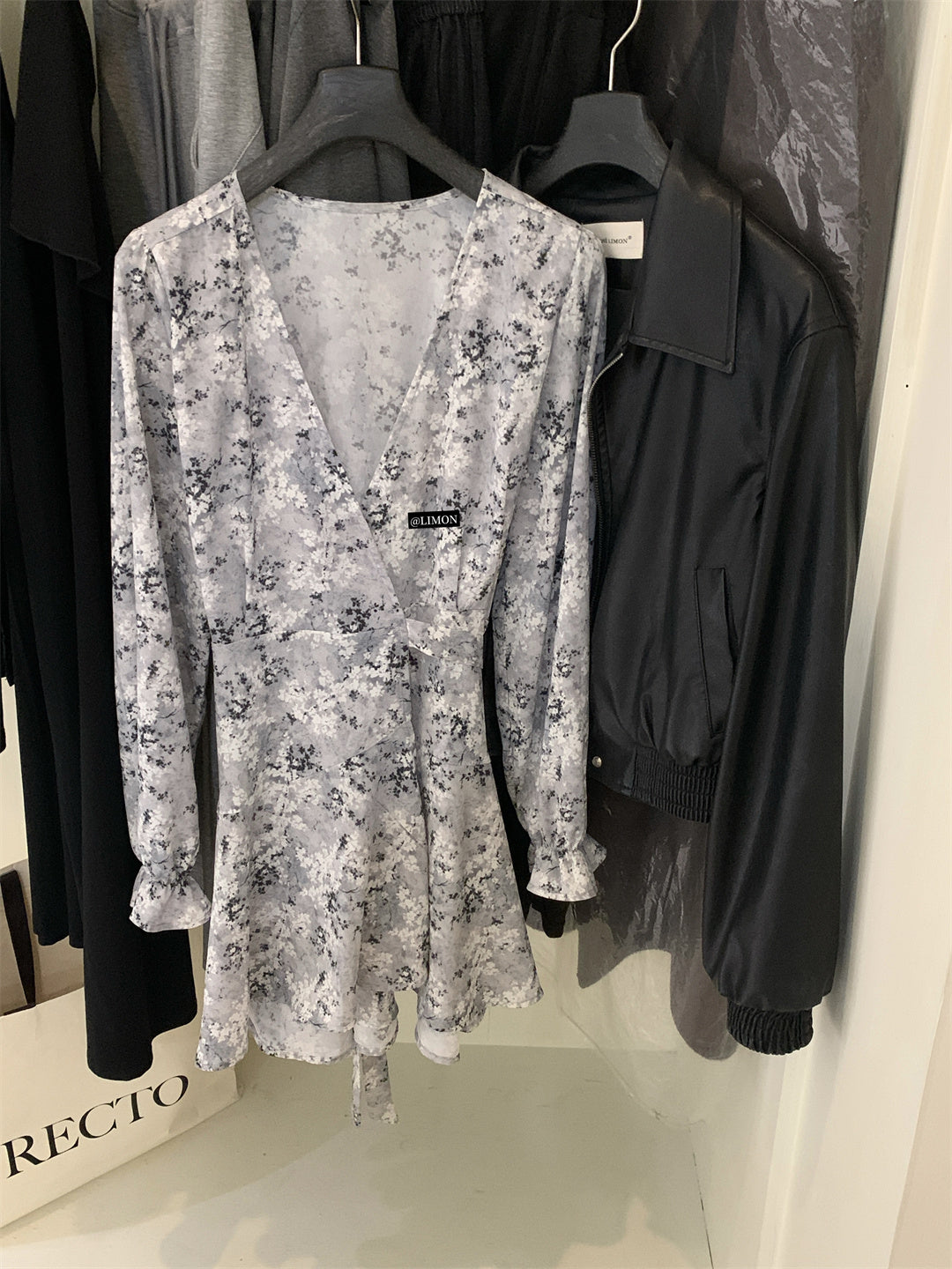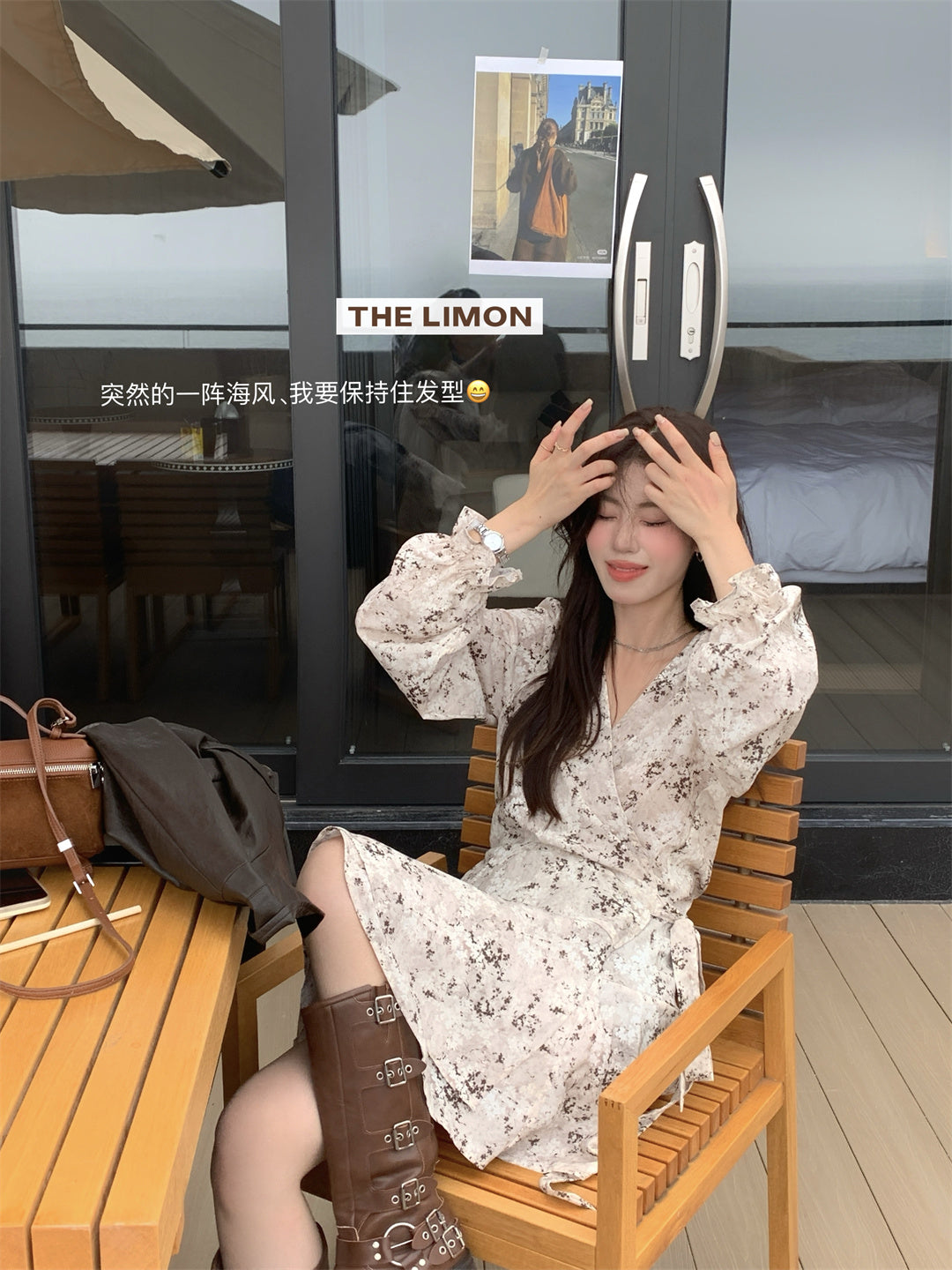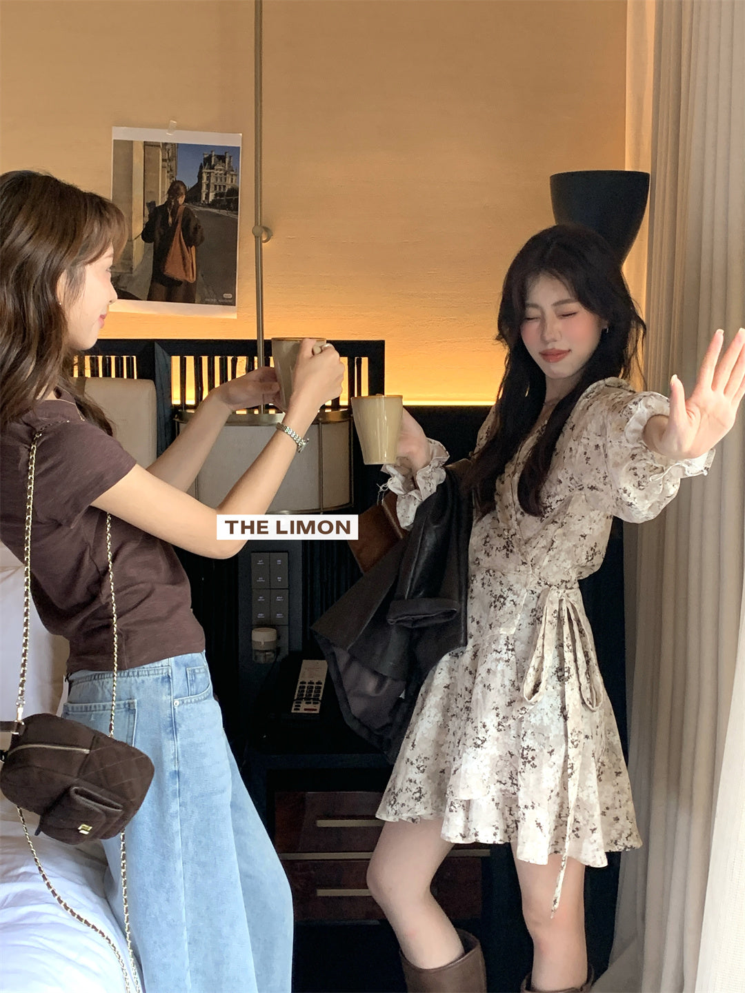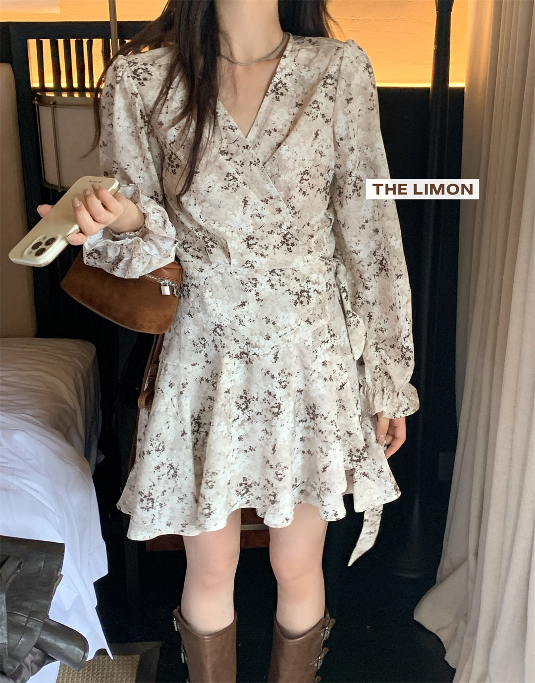 【L9072】實拍檸檬家法式甜美雪紡碎花收腰顯瘦短洋裝250901
