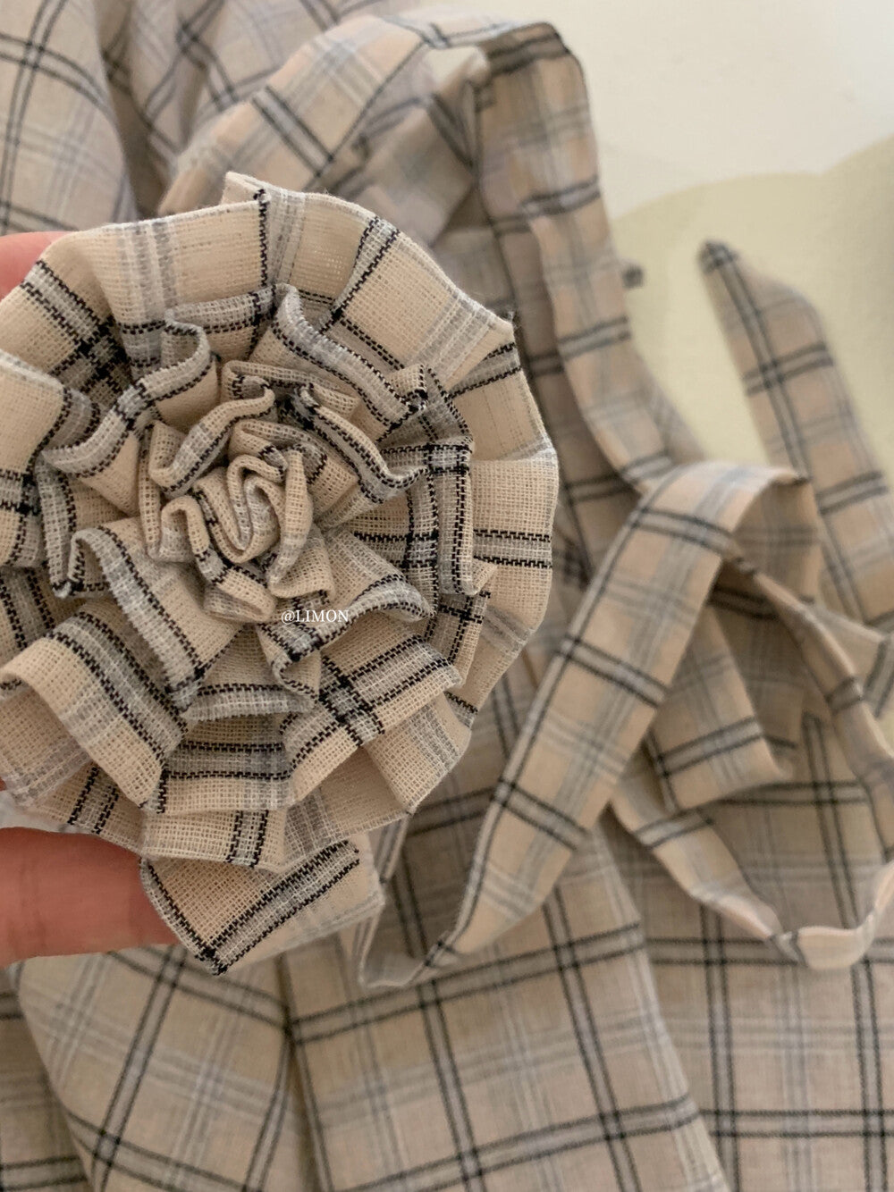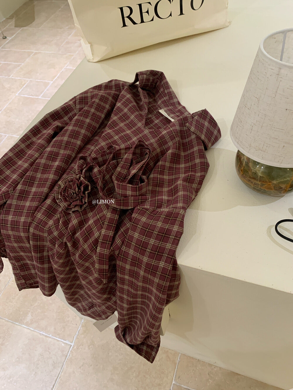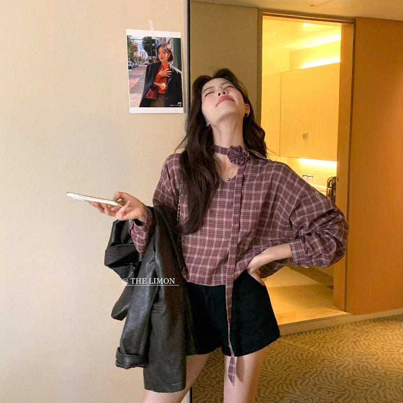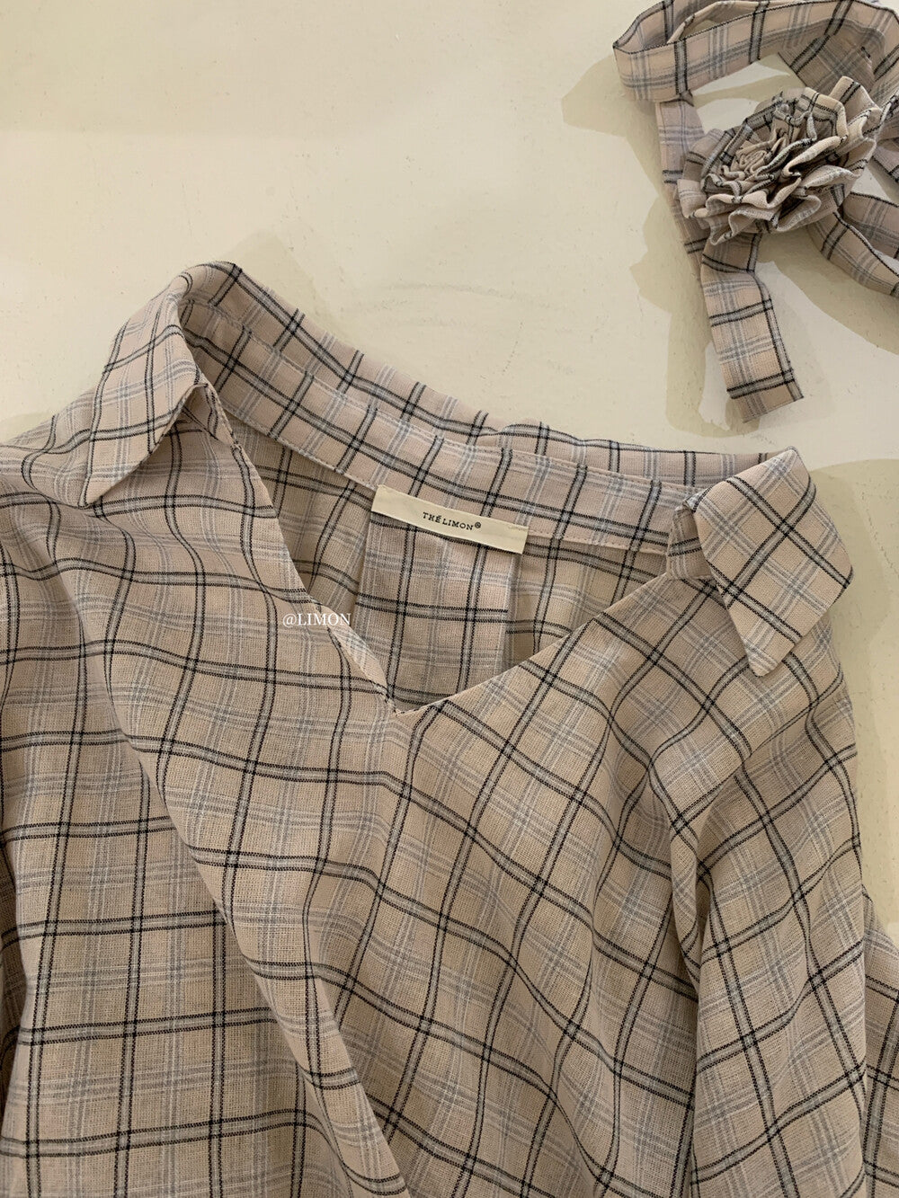 【L9113】實拍檸檬家早秋法式時髦復古格紋長袖襯衫+胸花可拆250901