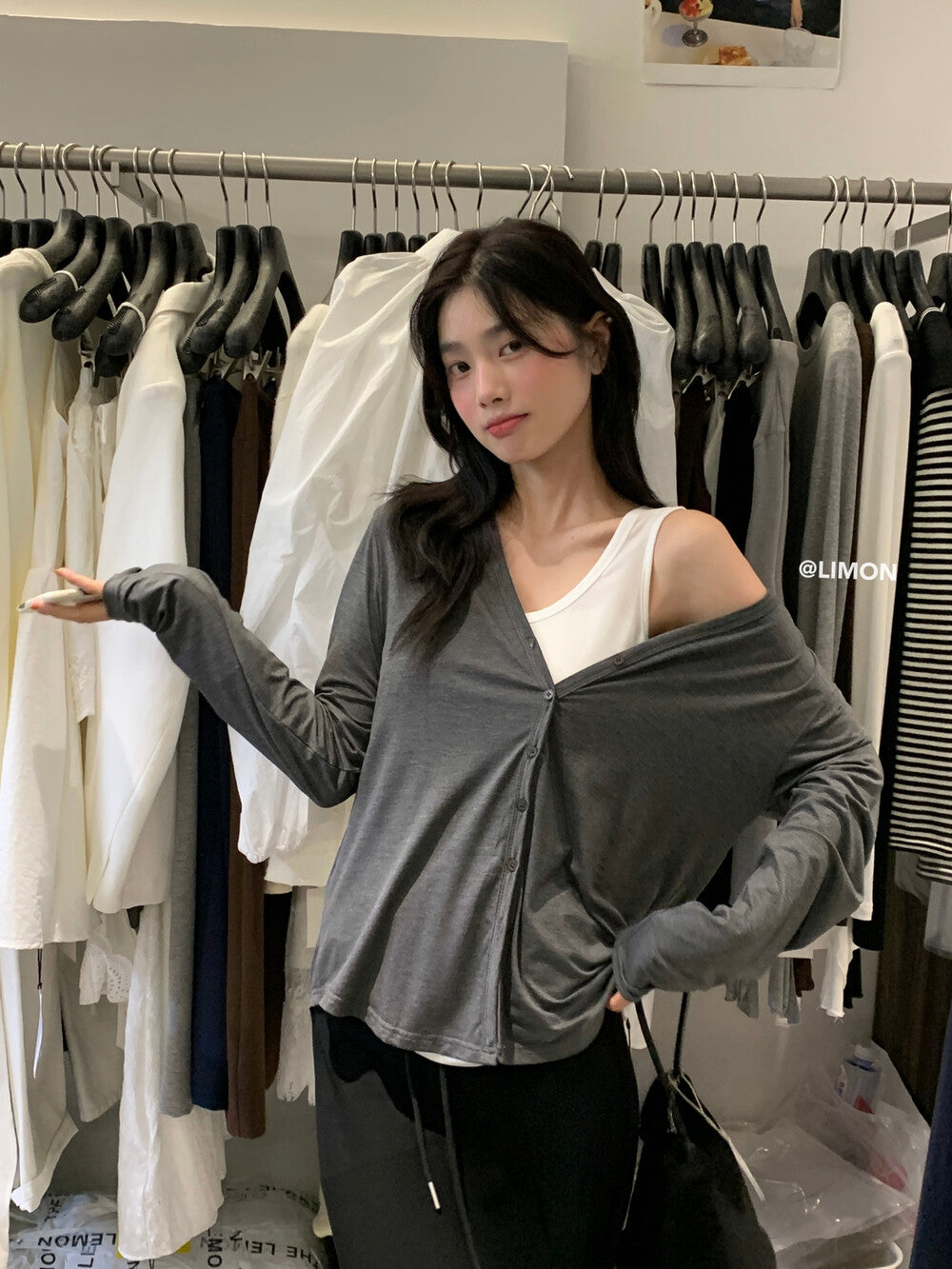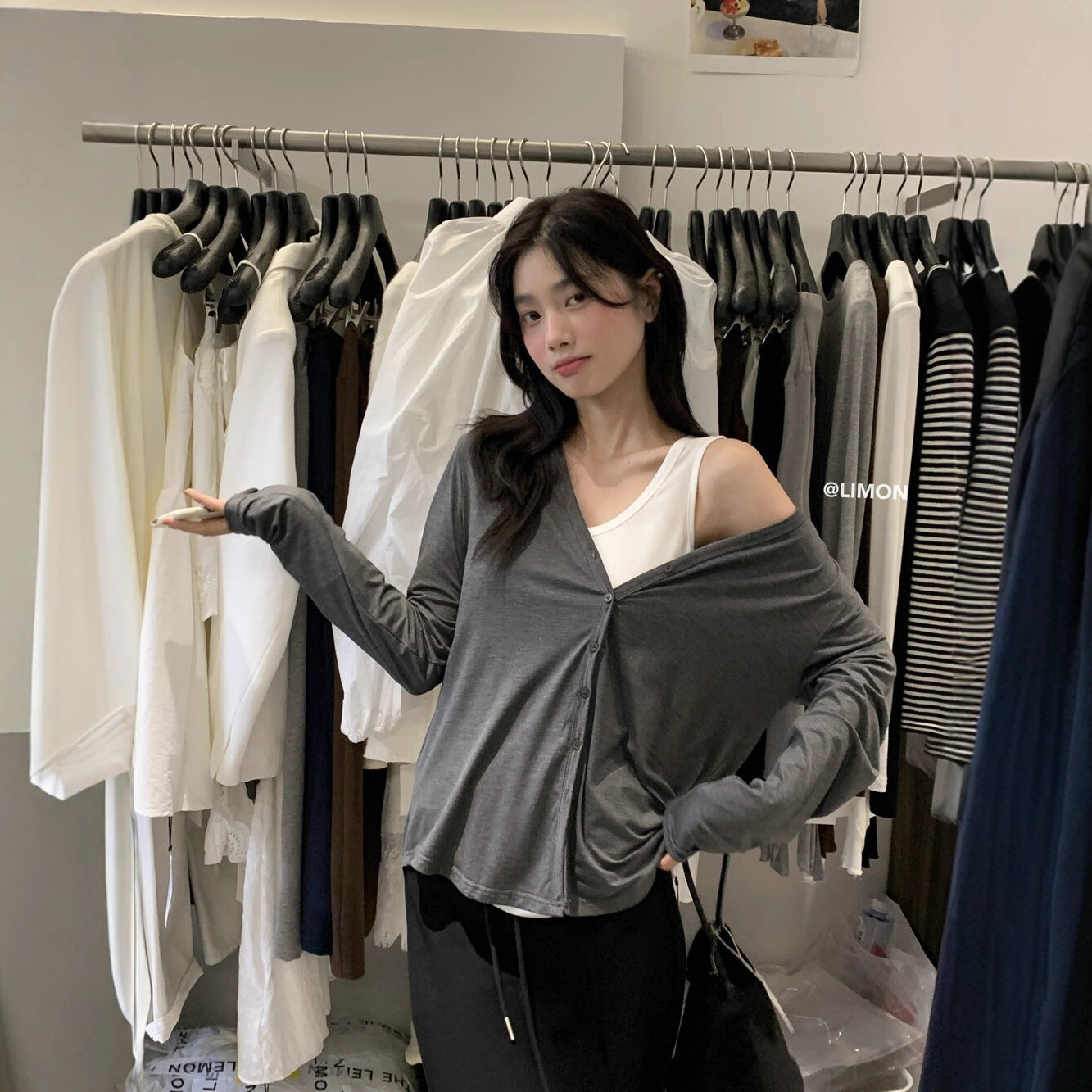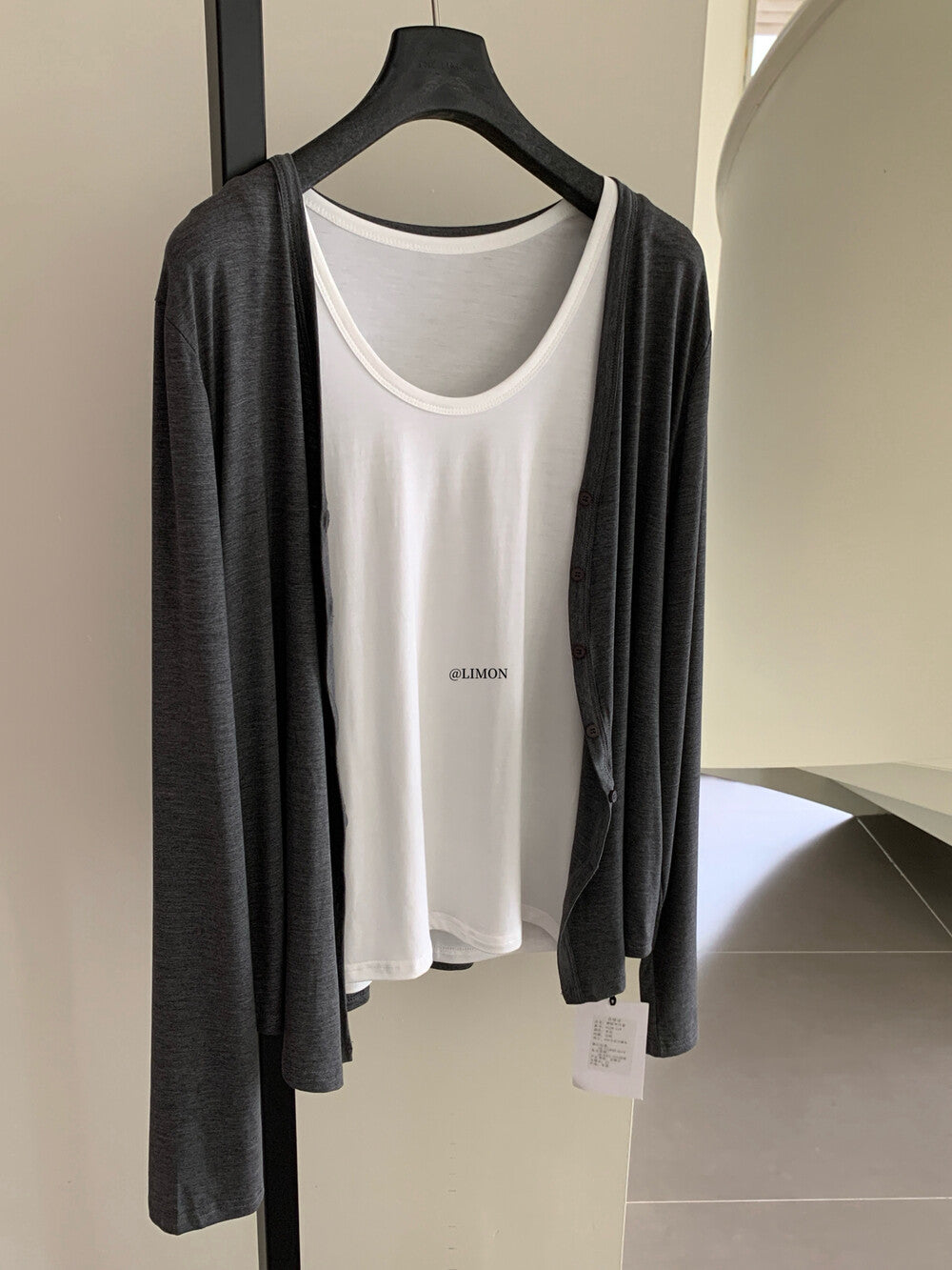 【L9128】實拍檸檬家慵懶鬆弛開衫+舒適休閒背心250901