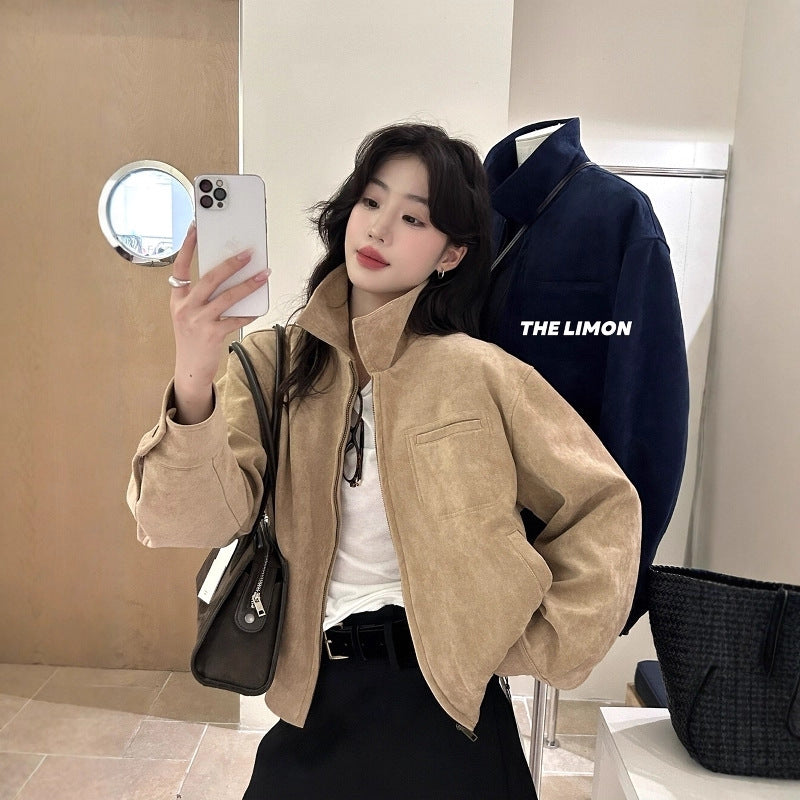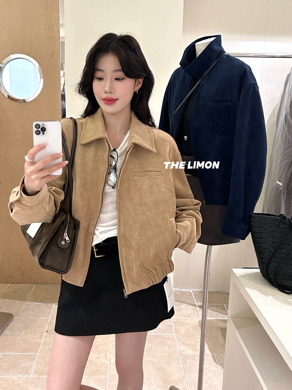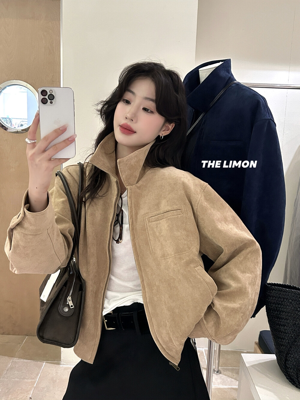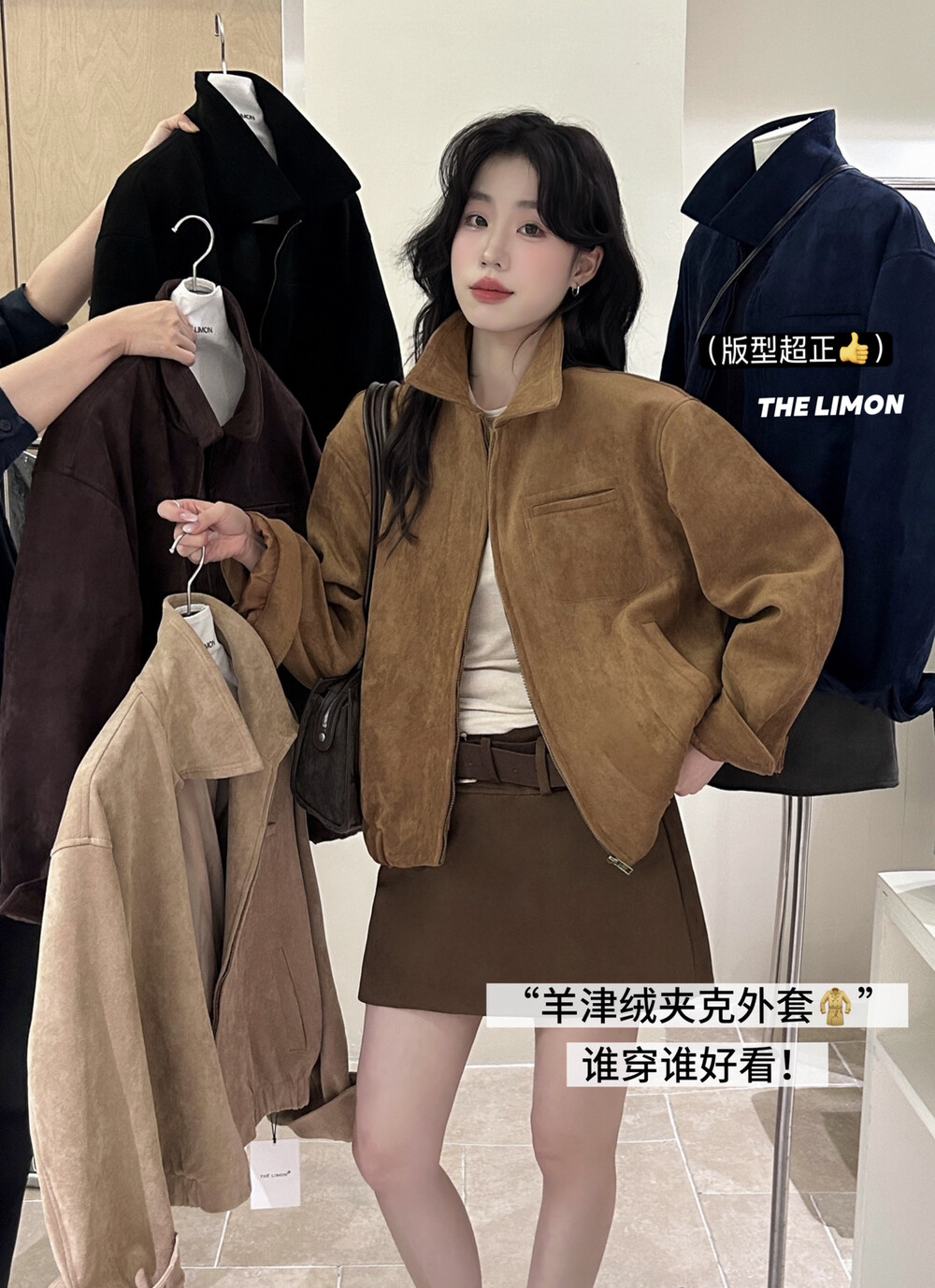 【L9150】實拍檸檬復古寬鬆羊津絨工裝長袖短外套251117