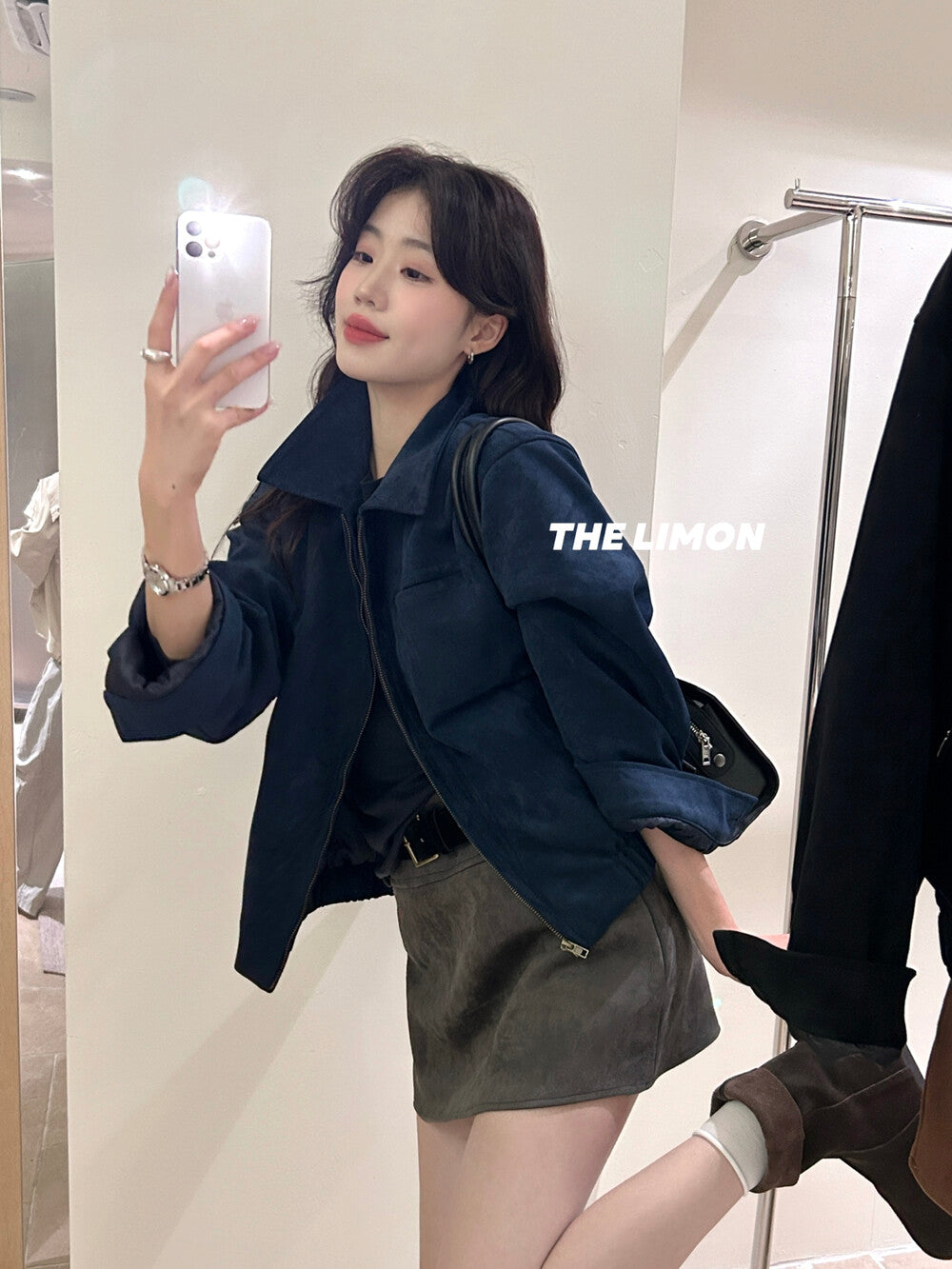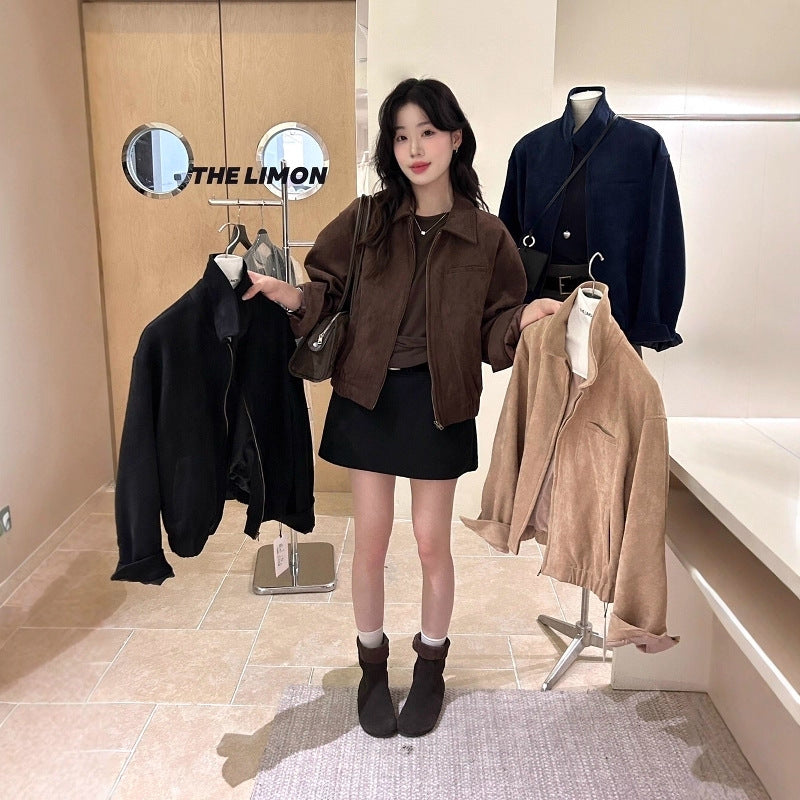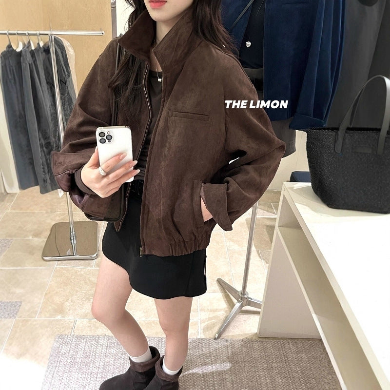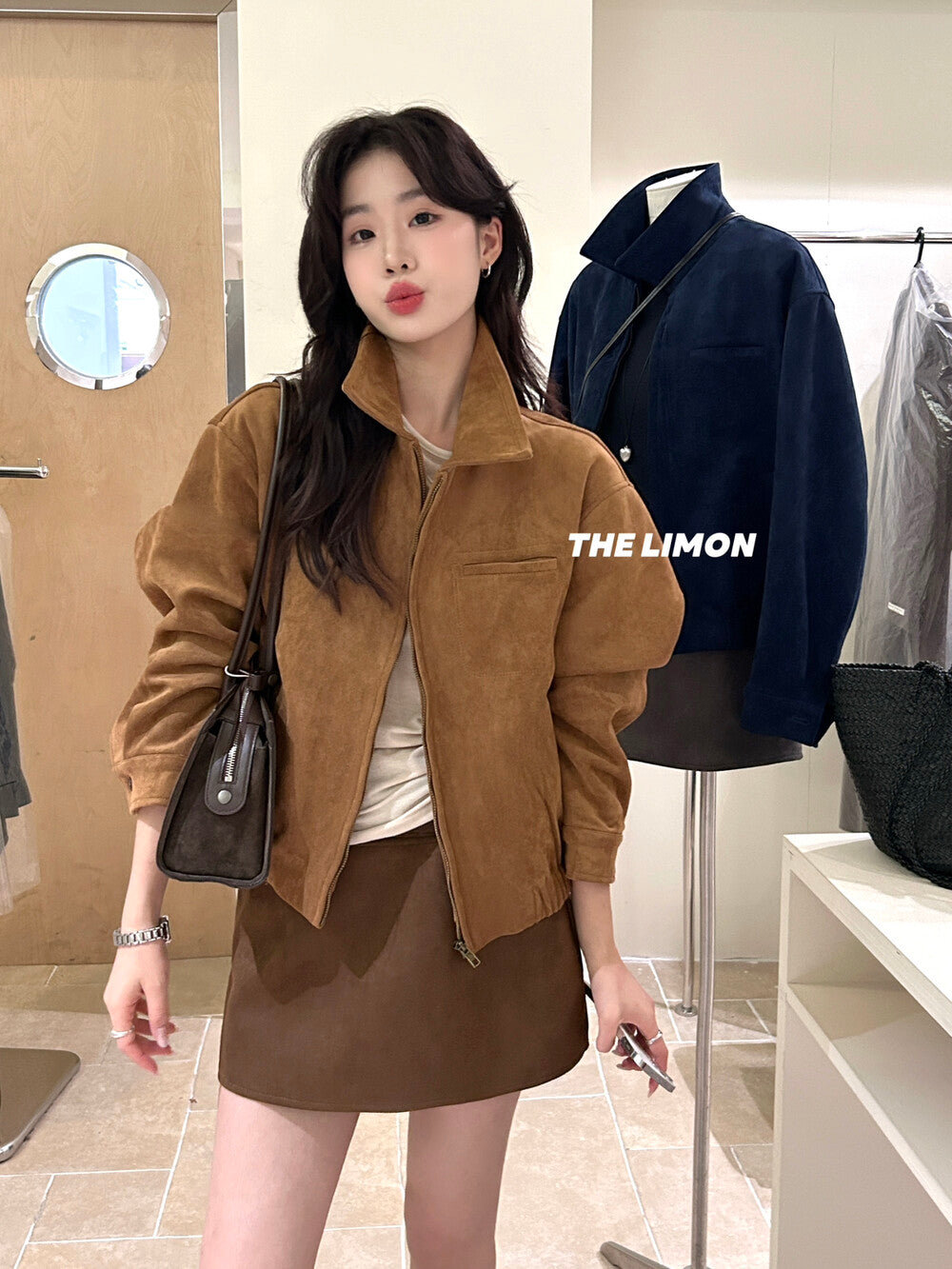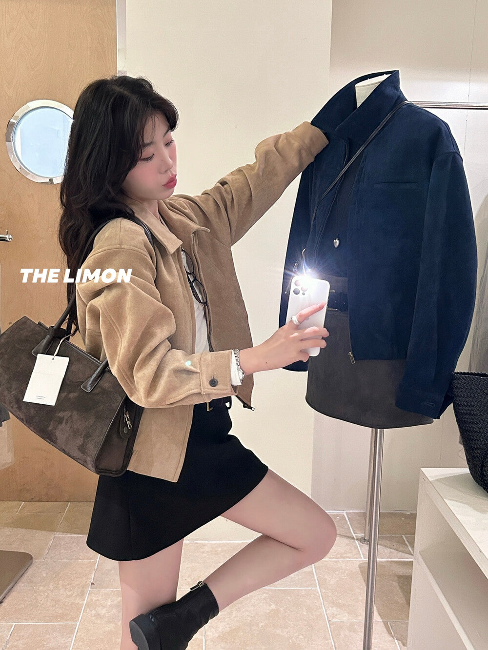 【L9150】實拍檸檬復古寬鬆羊津絨工裝長袖短外套251117