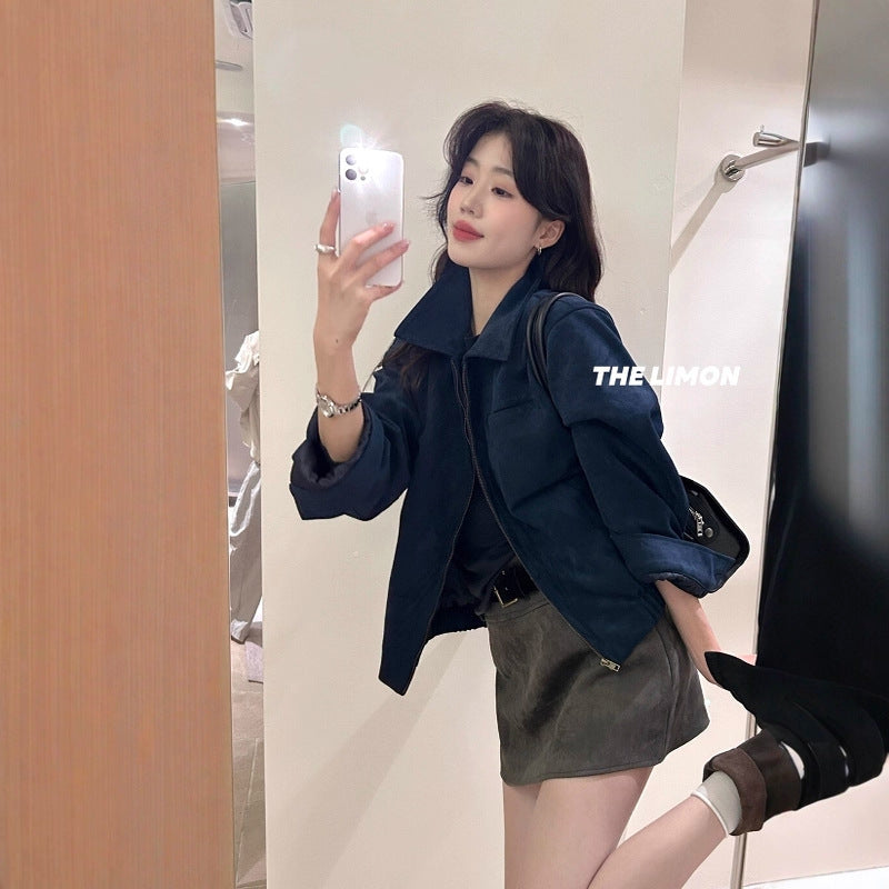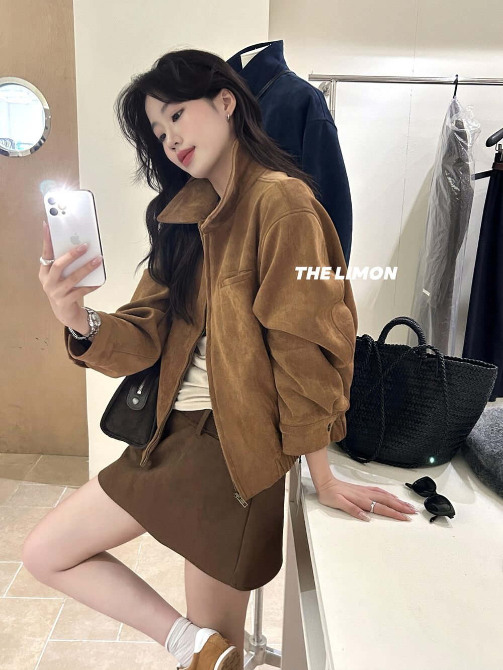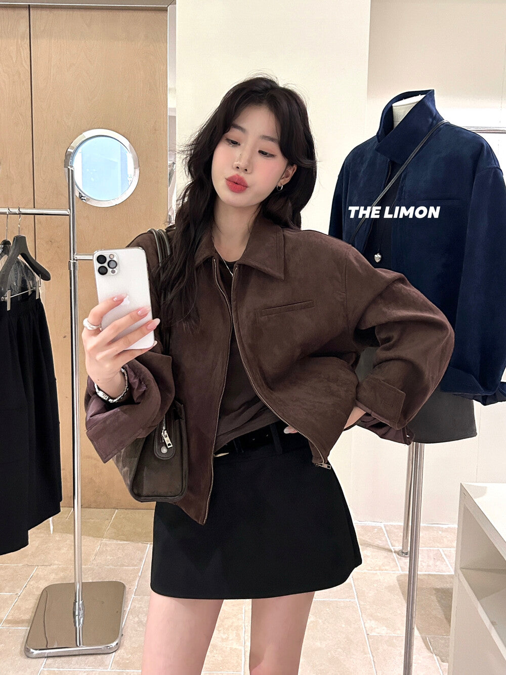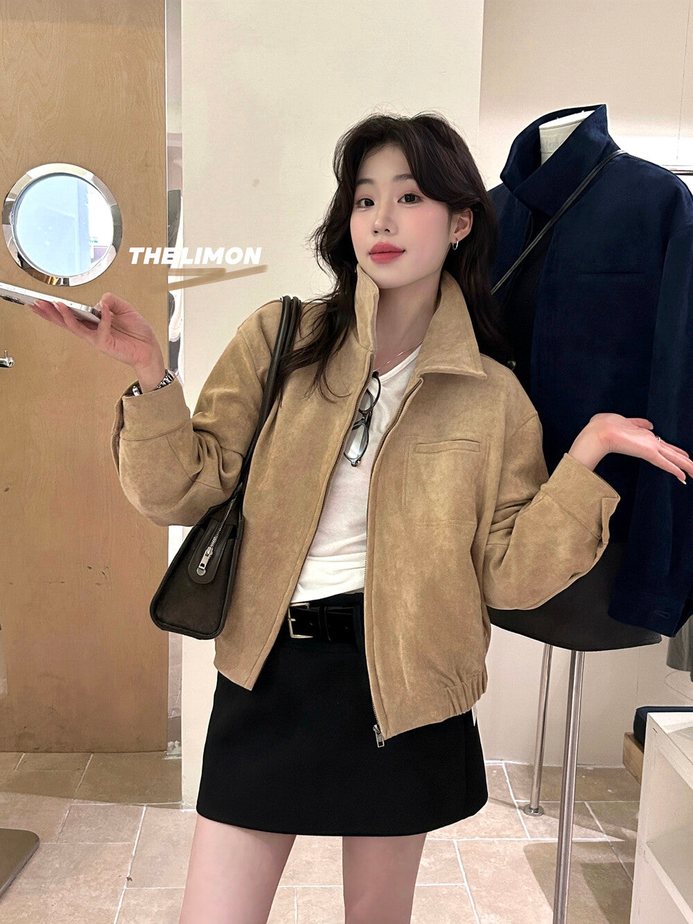 【L9150】實拍檸檬復古寬鬆羊津絨工裝長袖短外套251117