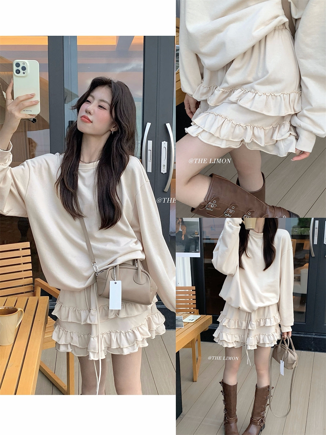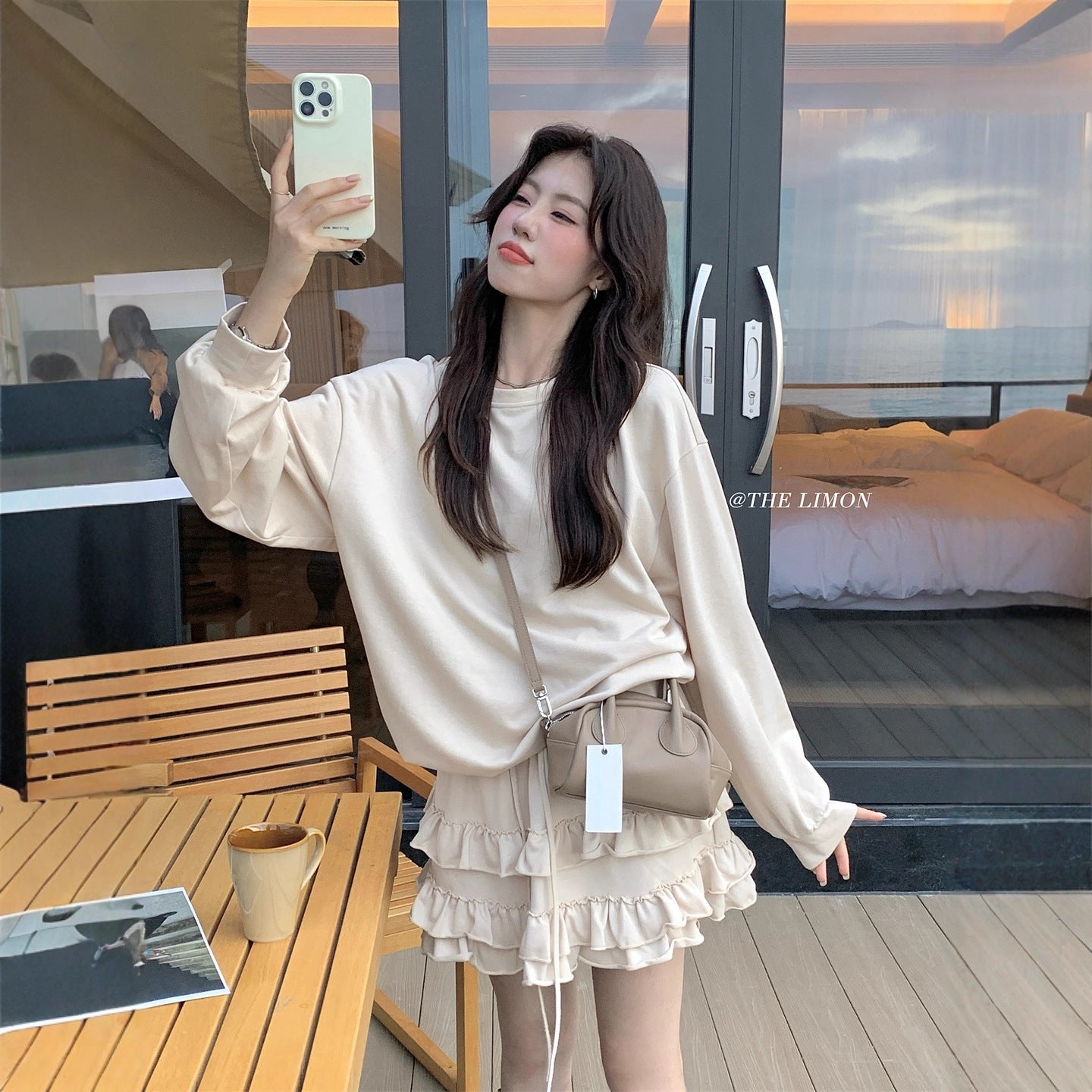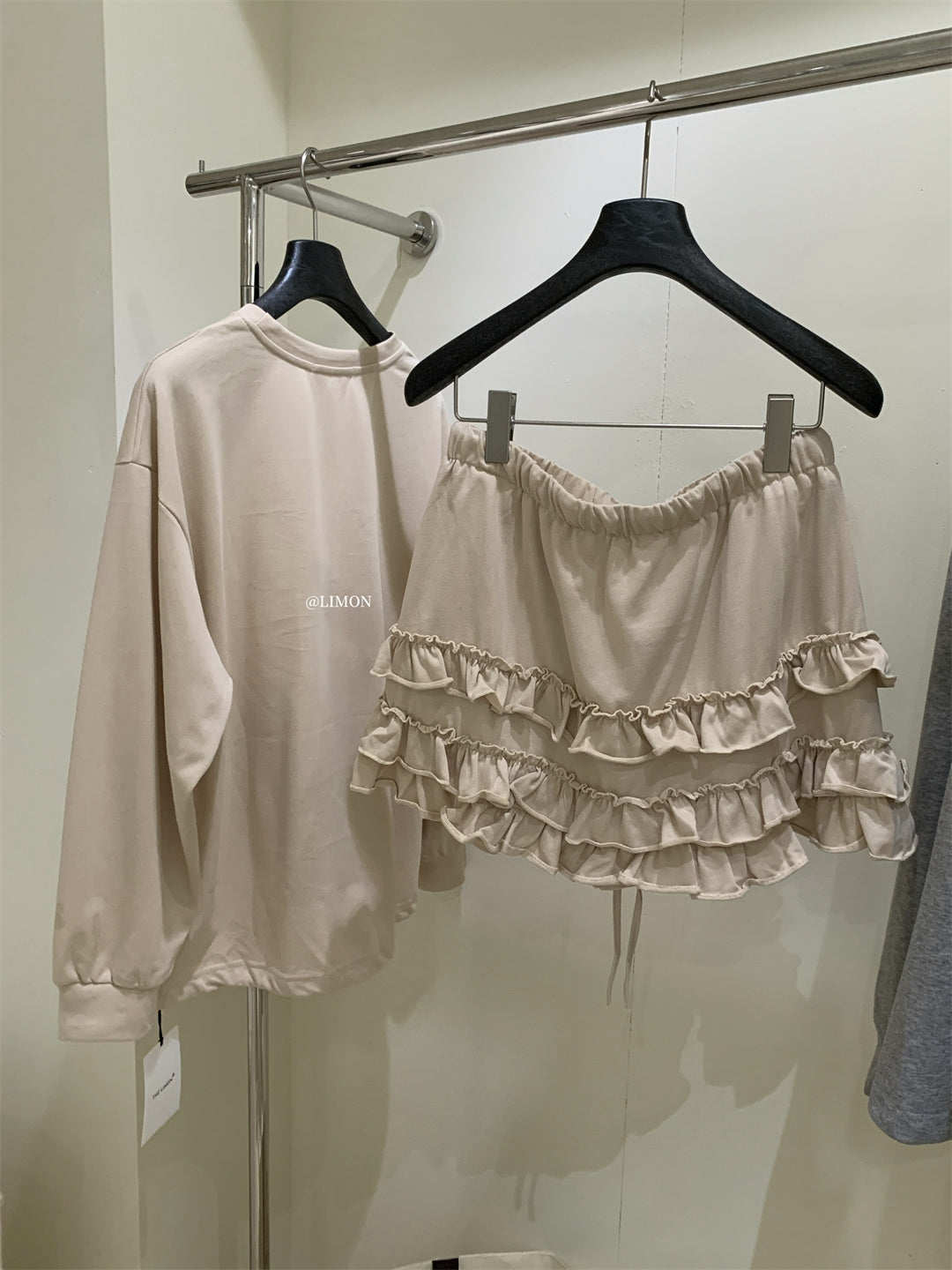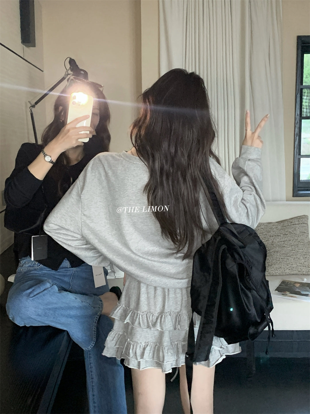 【L9161】實拍檸檬家慵懶少女長袖衞衣+蛋糕裙 2件套250901