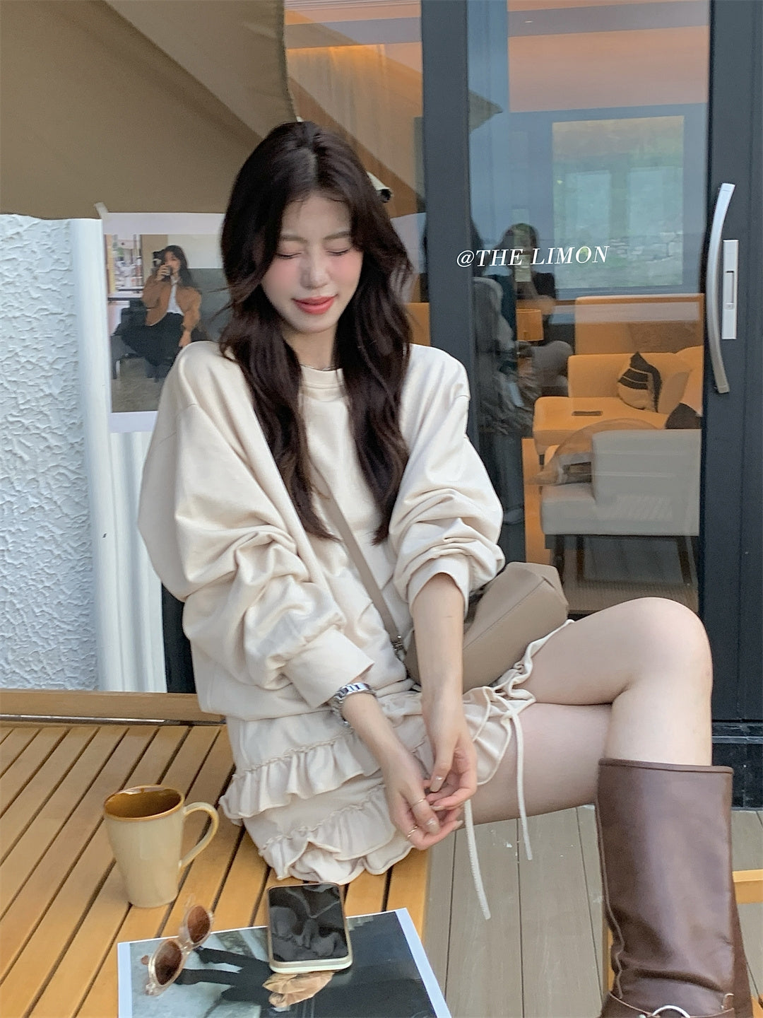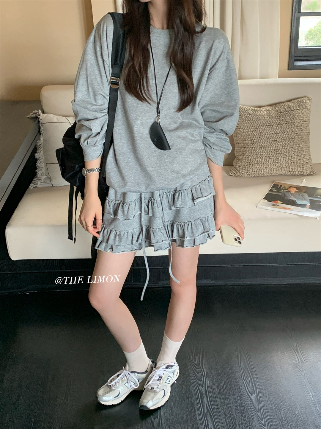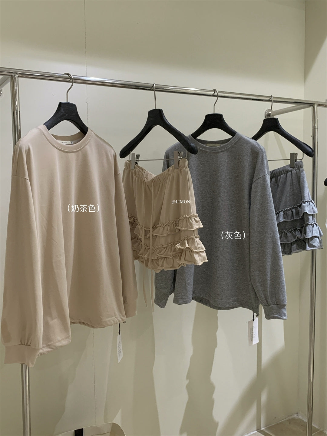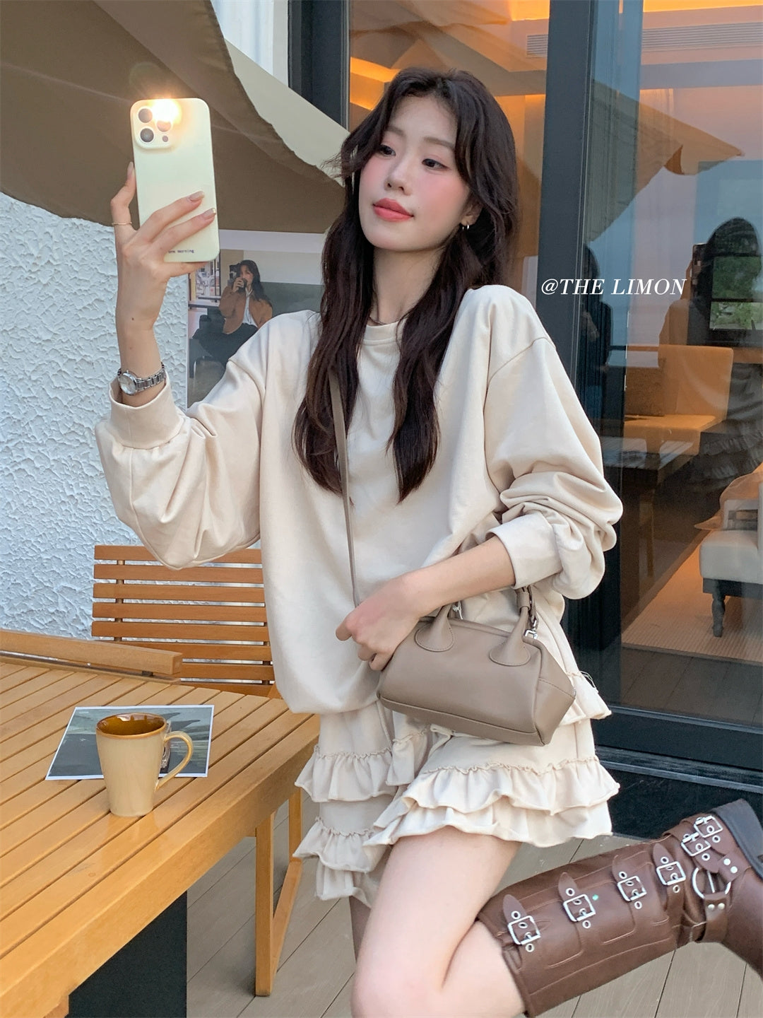 【L9161】實拍檸檬家慵懶少女長袖衞衣+蛋糕裙 2件套250901