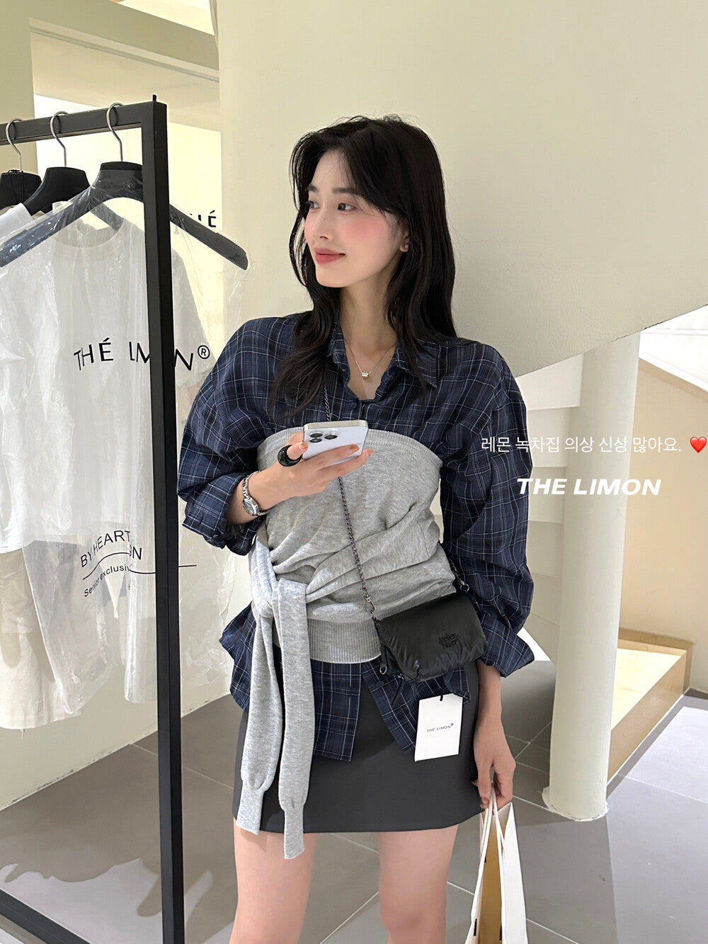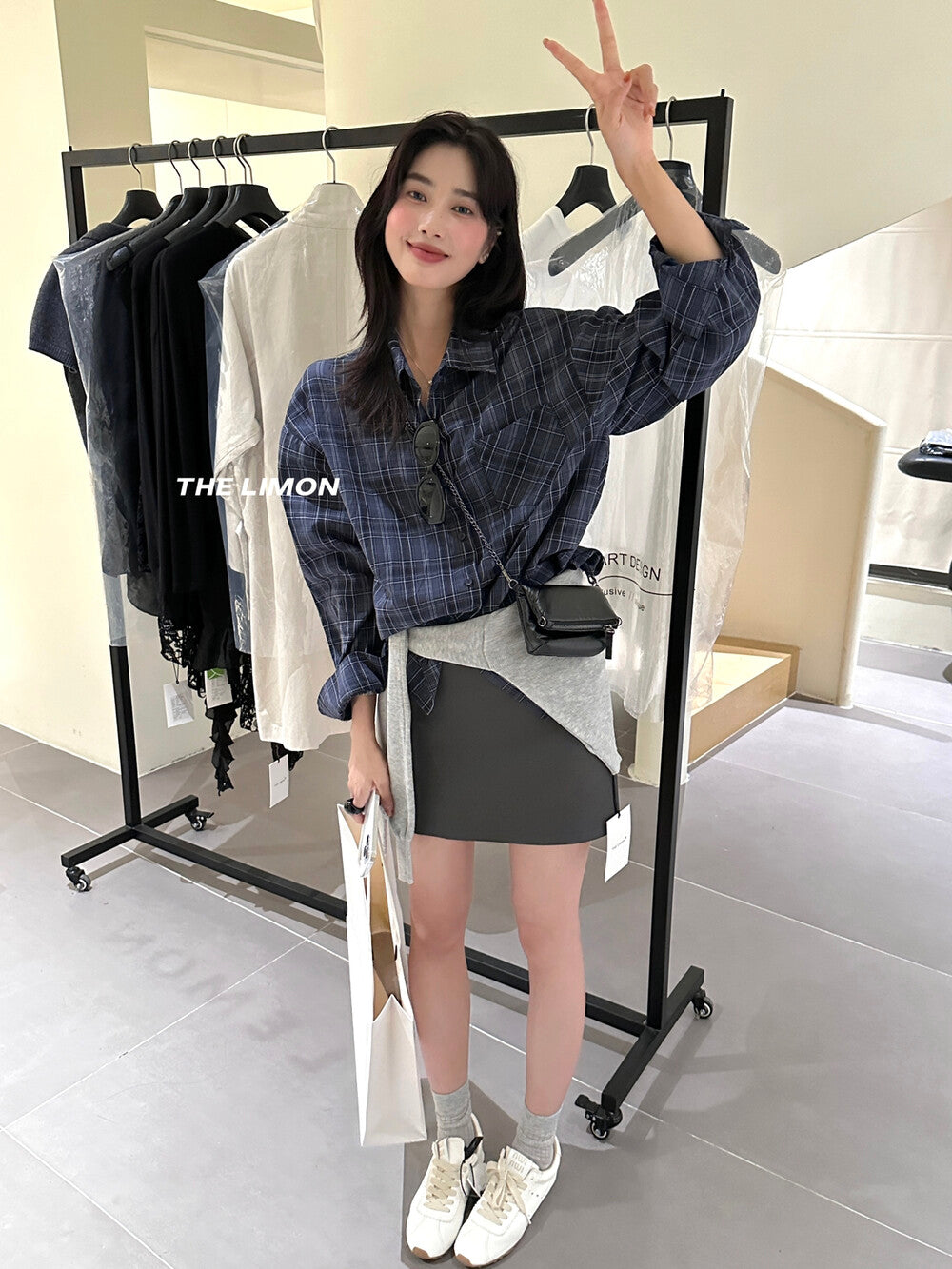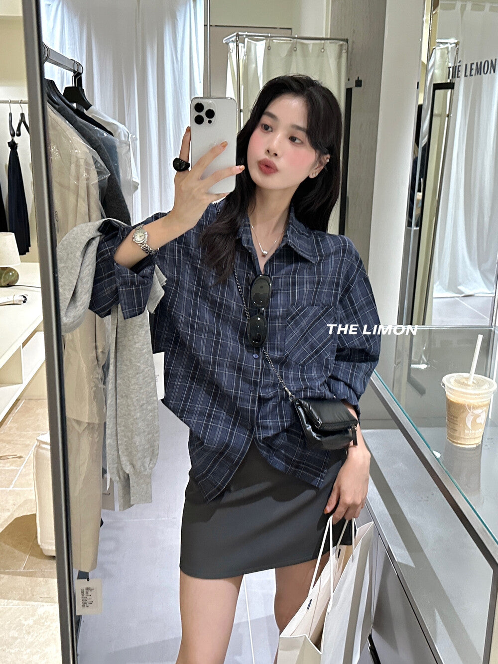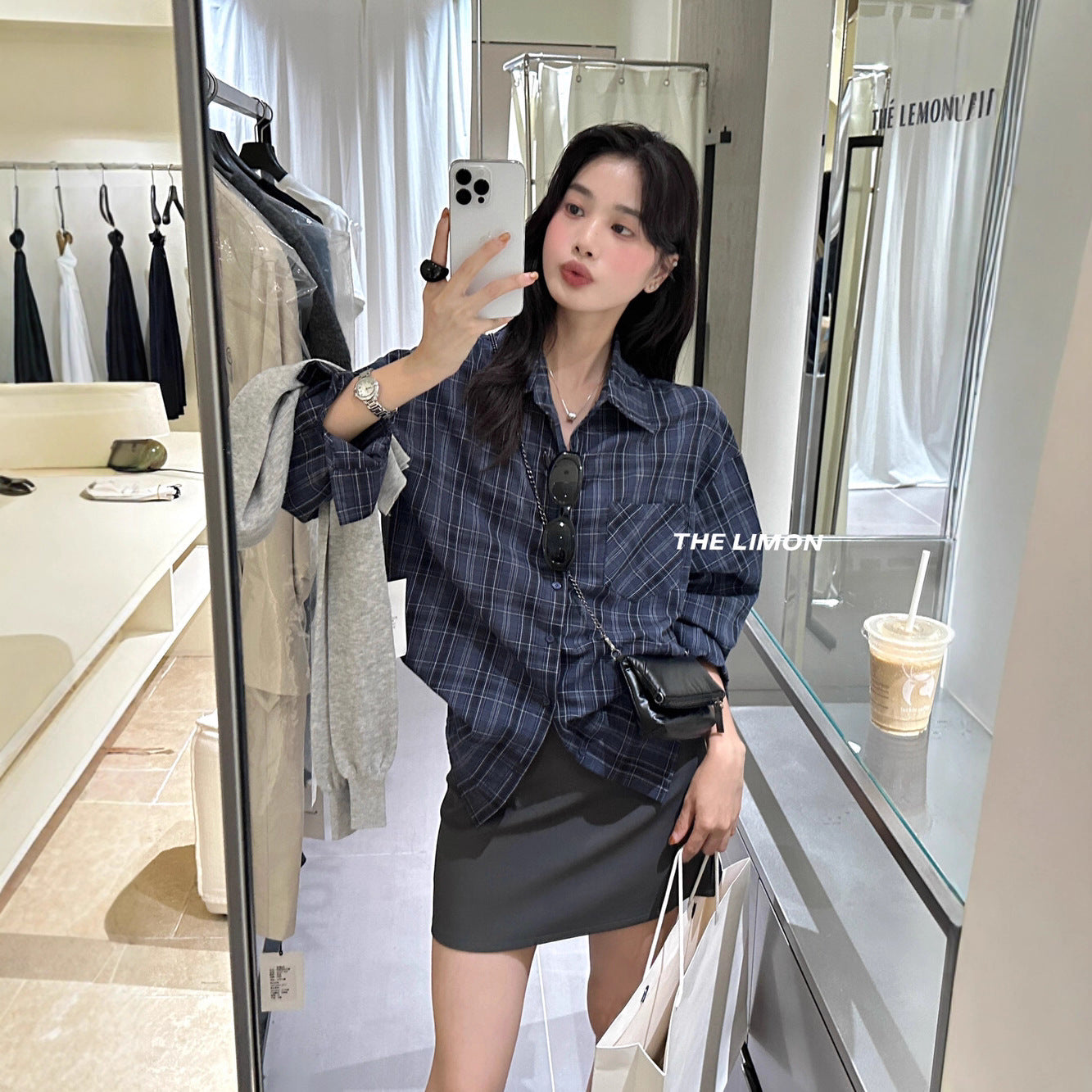 【L9189】實拍檸檬家時髦復古慵懶格紋長袖襯衫250901