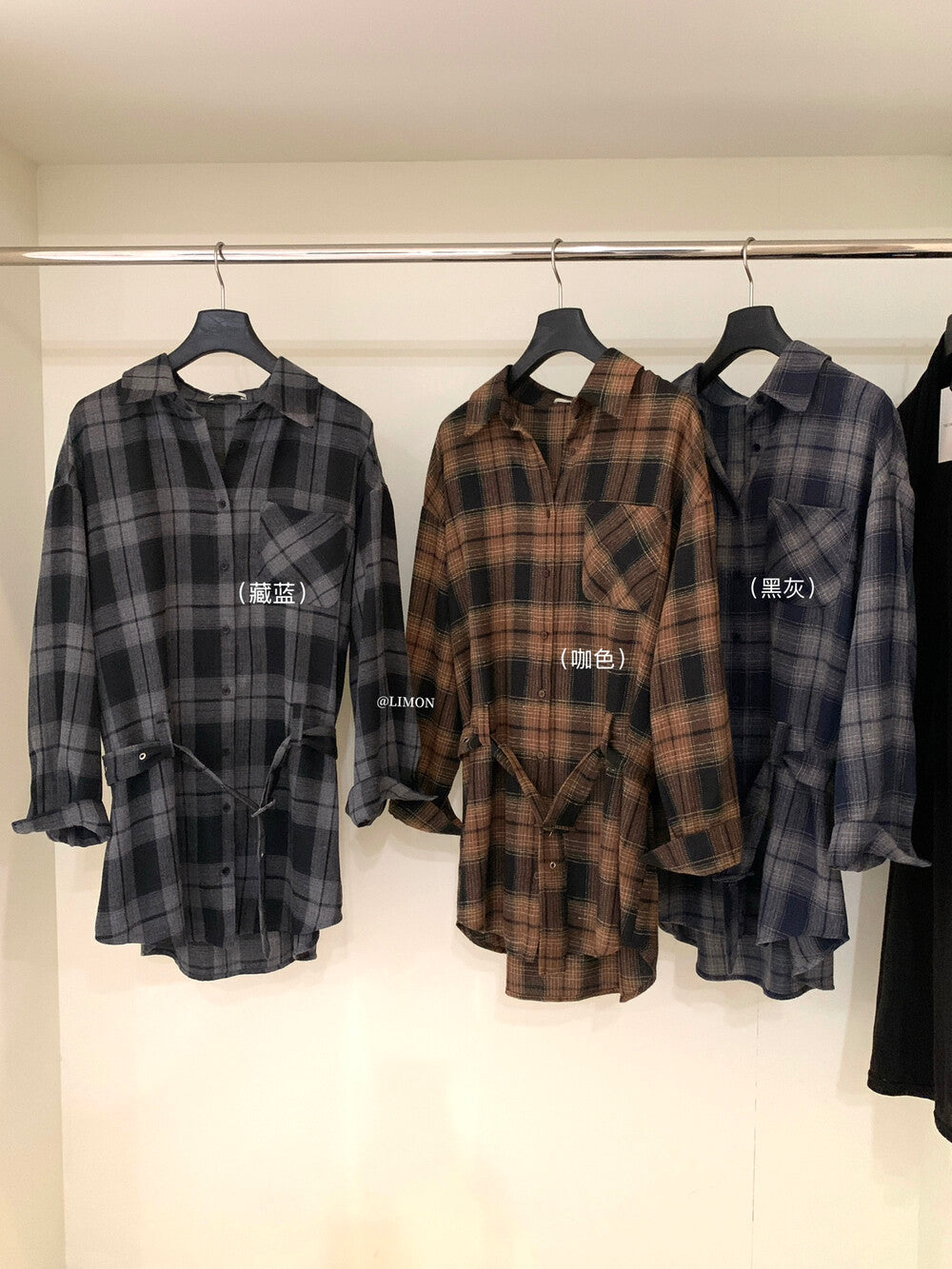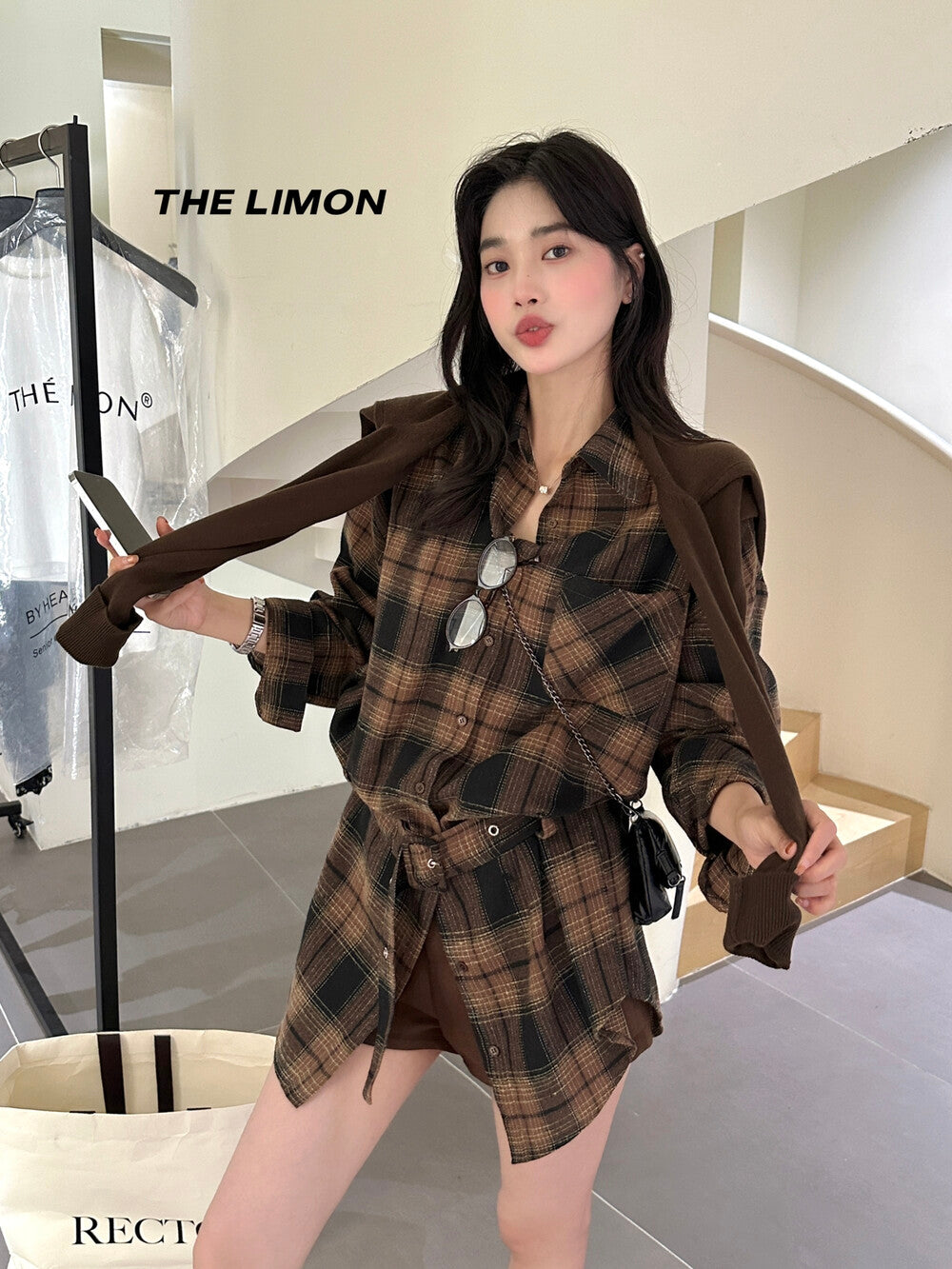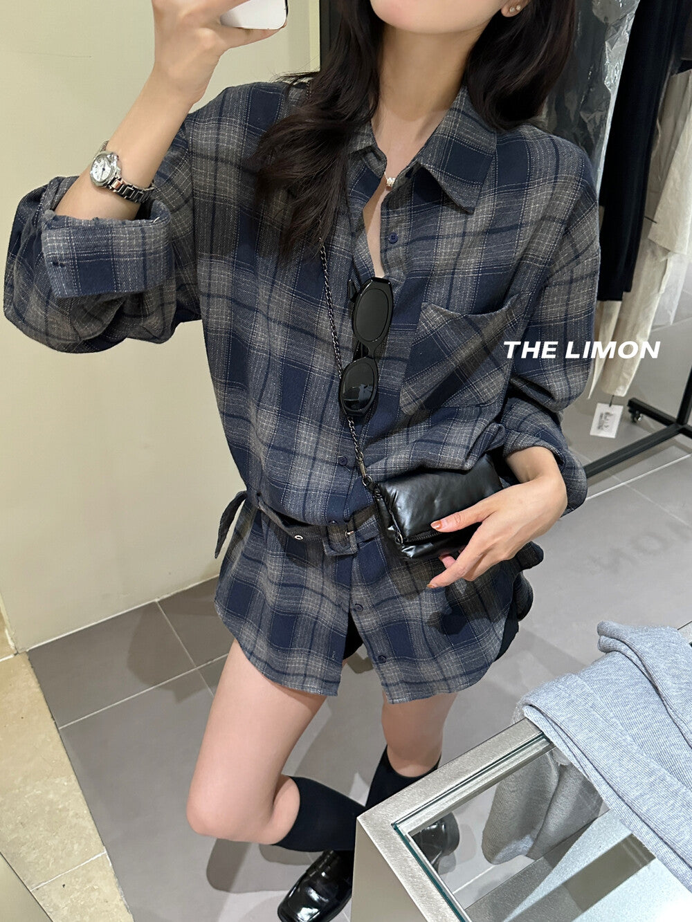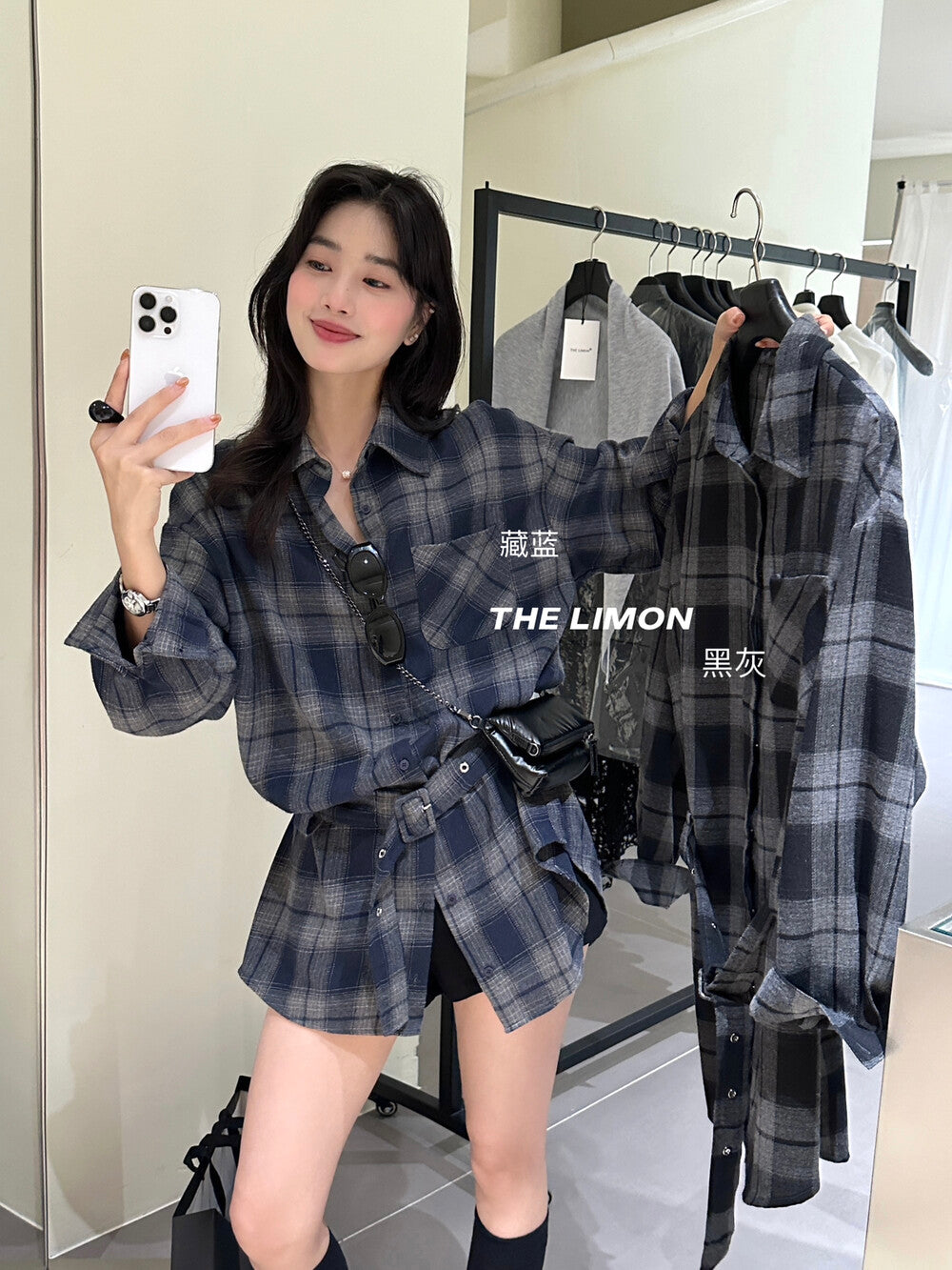 【L9205】實拍檸檬家復古磨毛格紋繫帶襯衫+腰帶250901