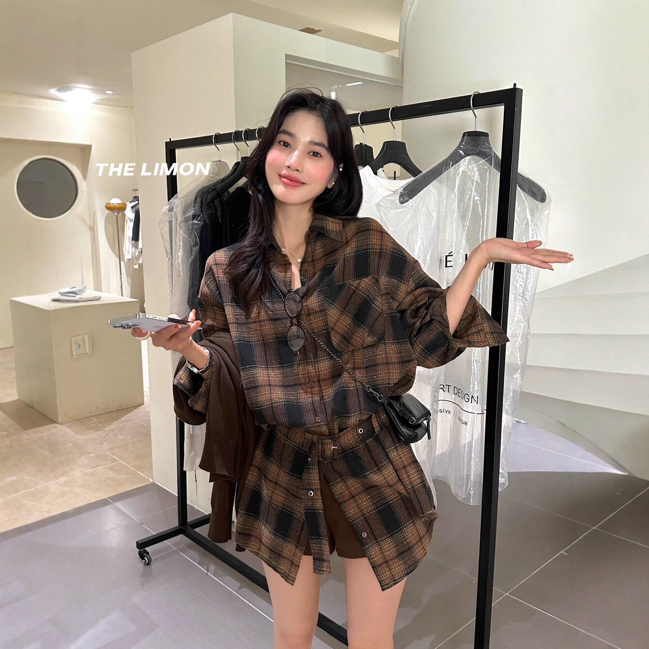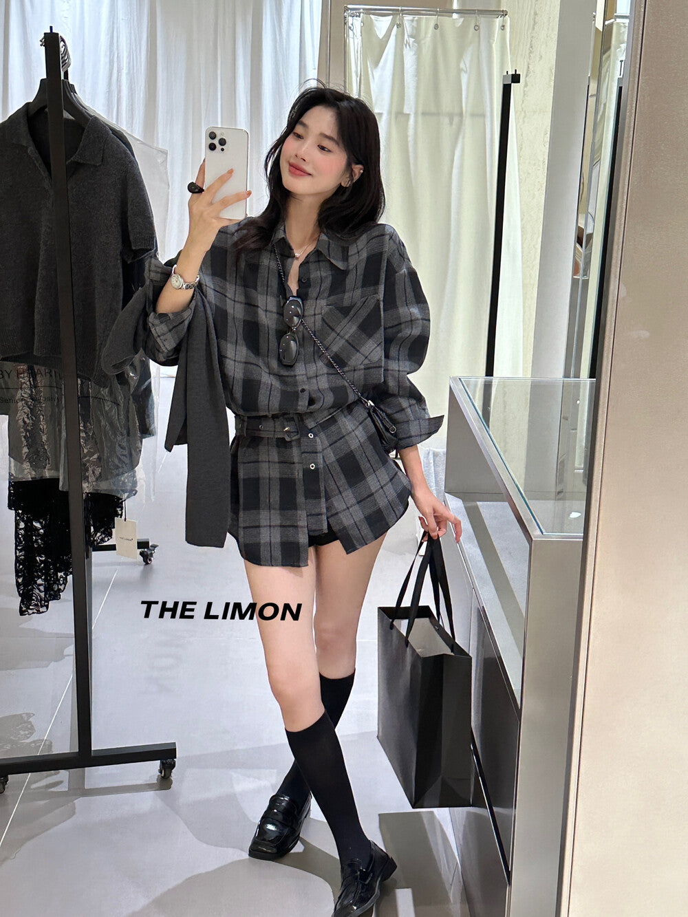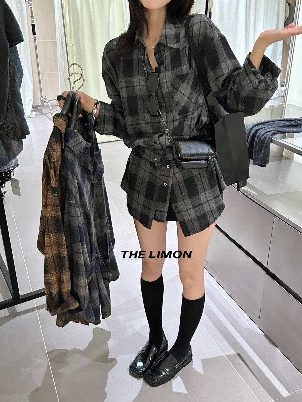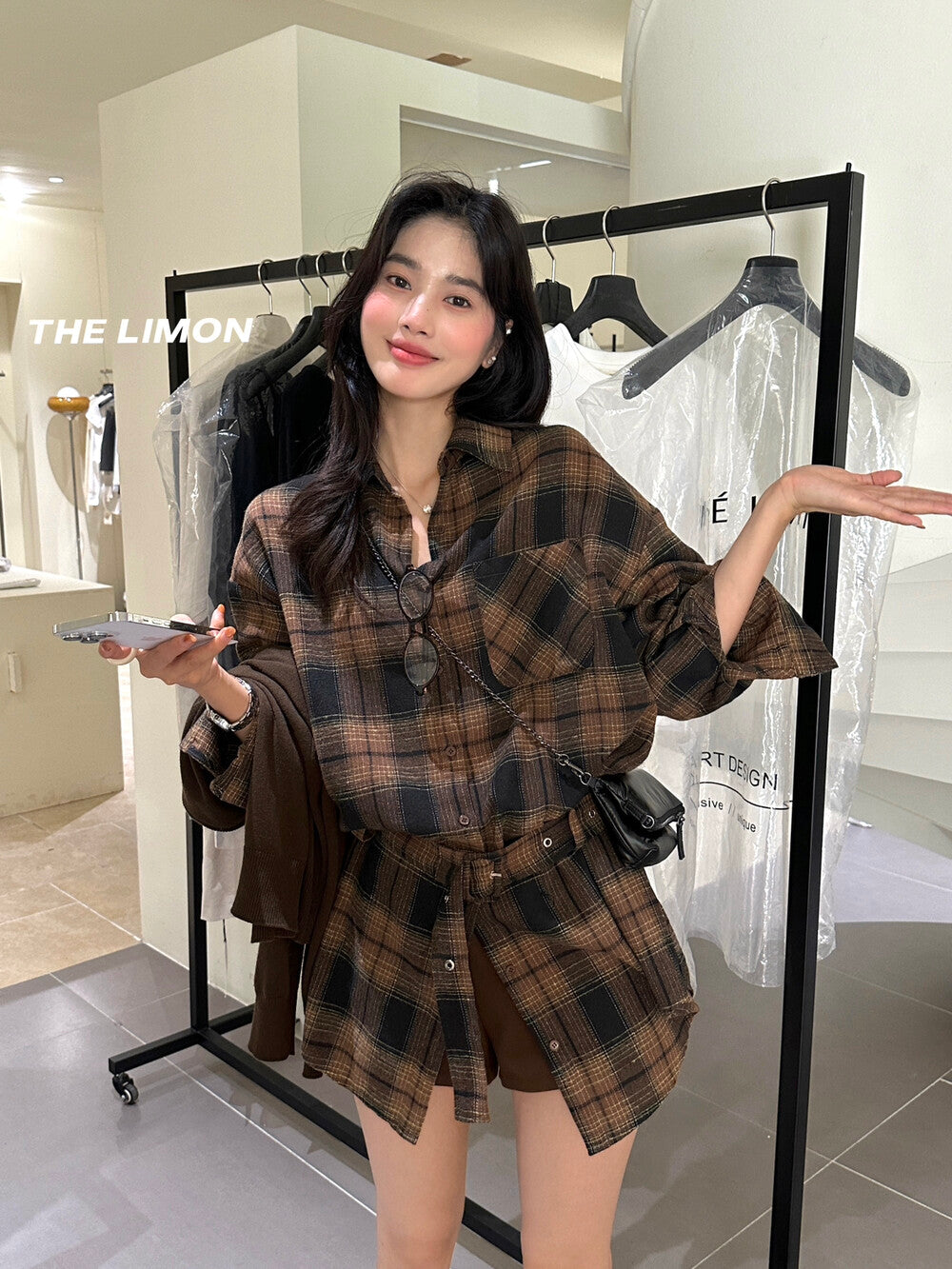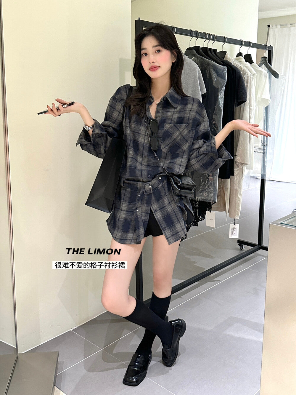 【L9205】實拍檸檬家復古磨毛格紋繫帶襯衫+腰帶250901