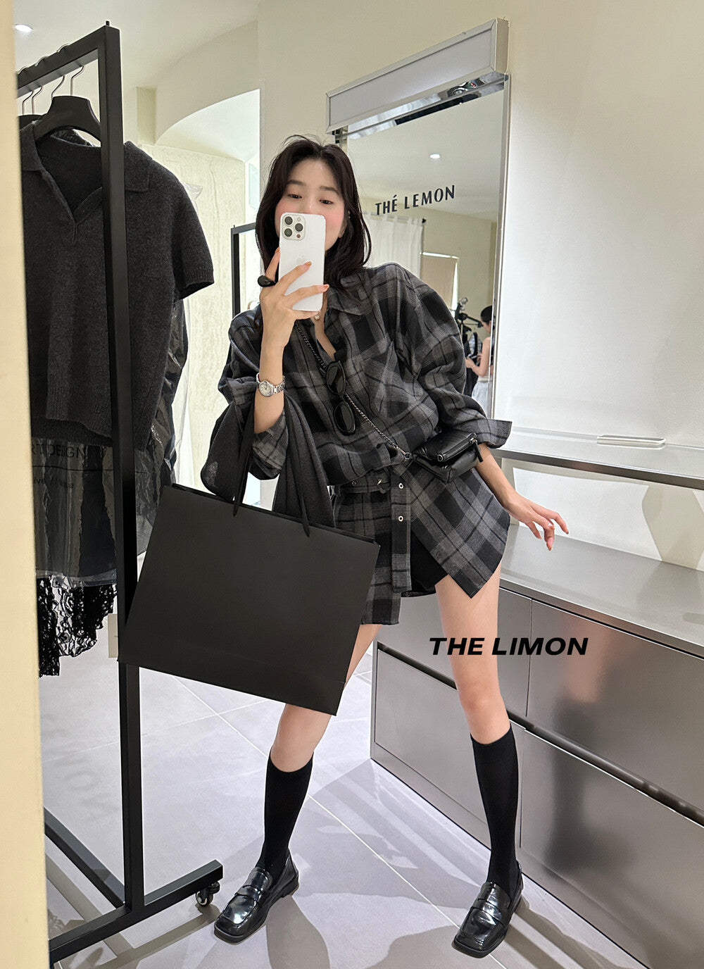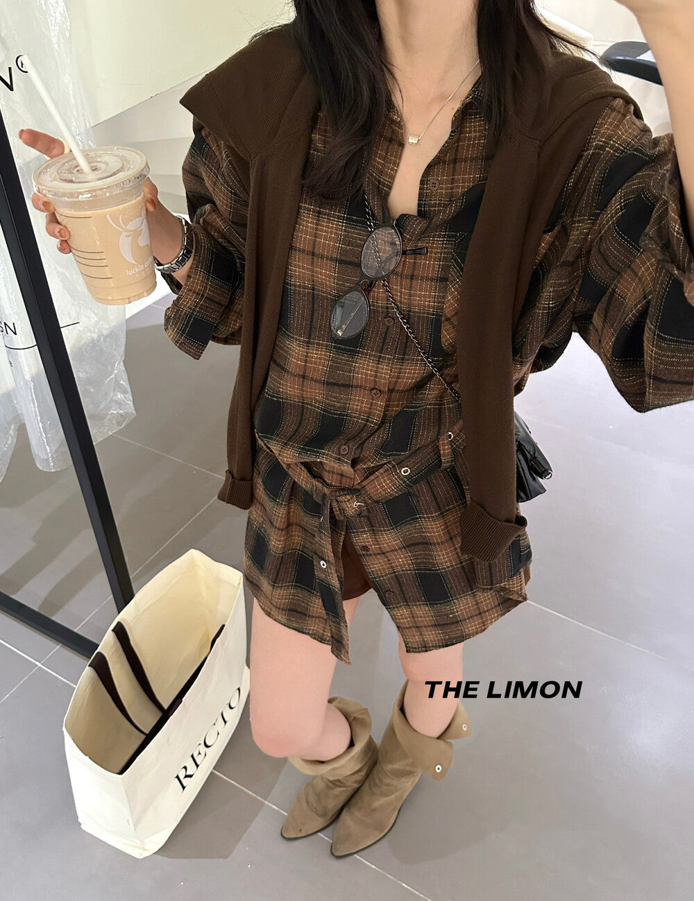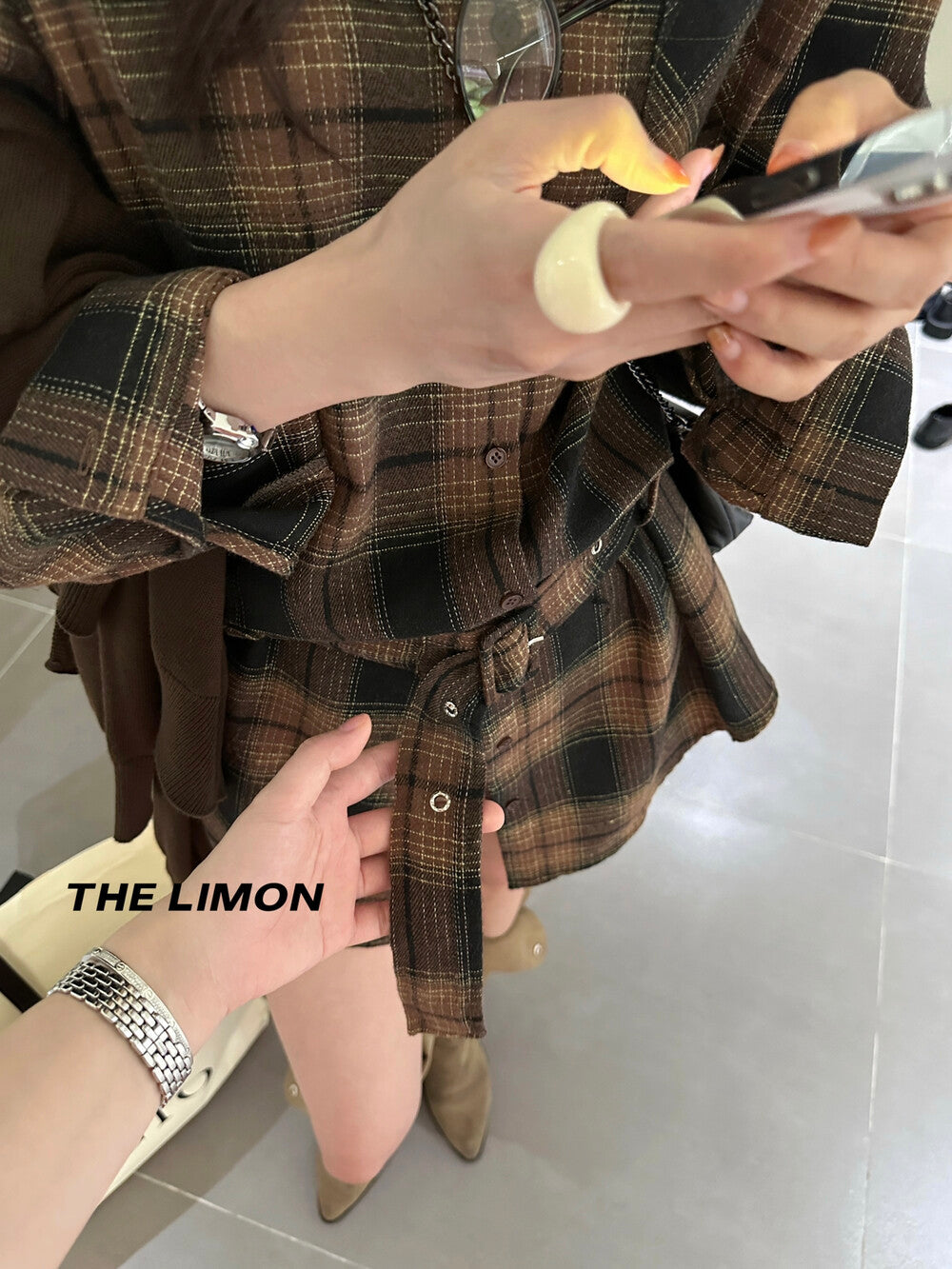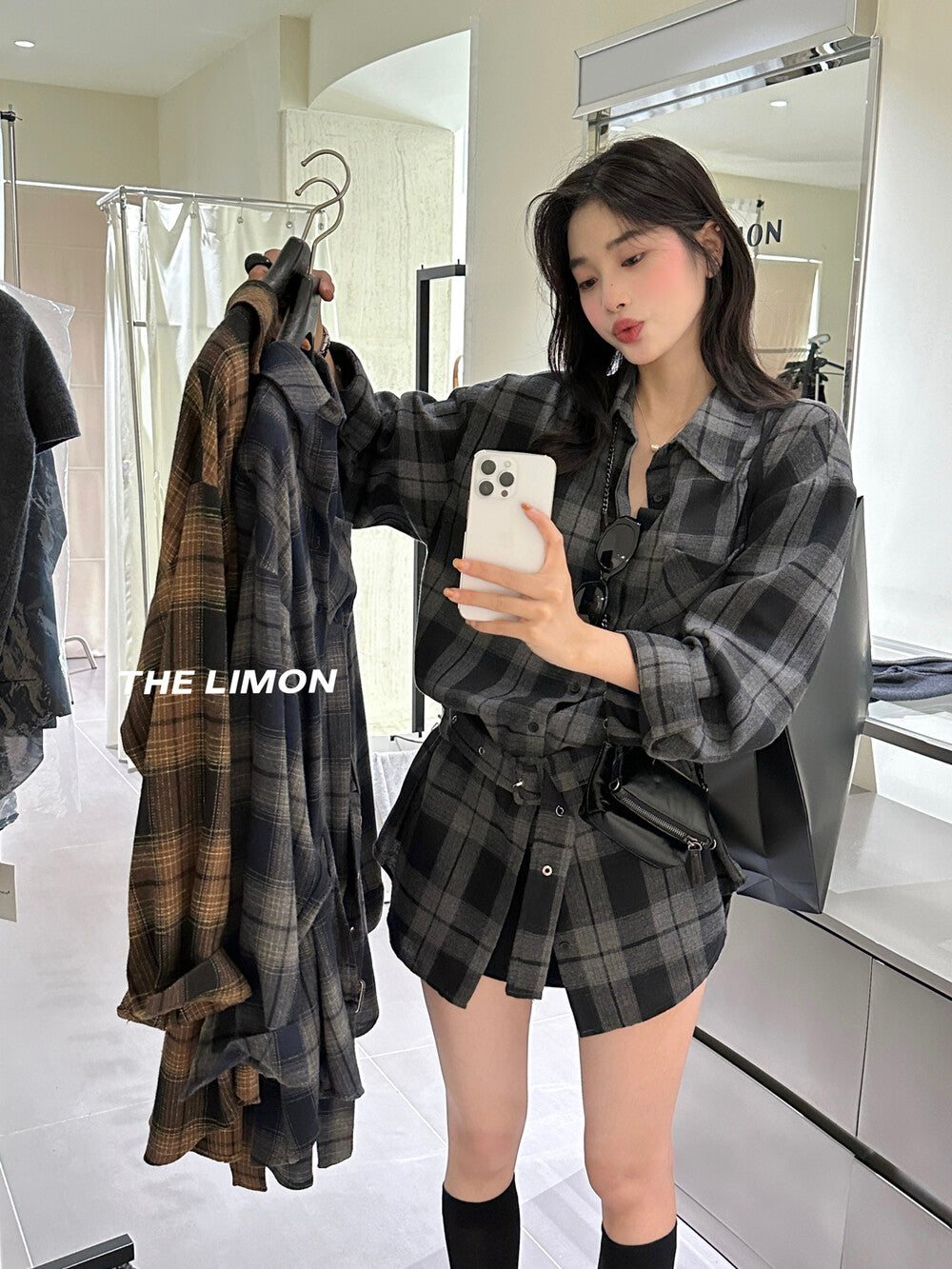 【L9205】實拍檸檬家復古磨毛格紋繫帶襯衫+腰帶250901