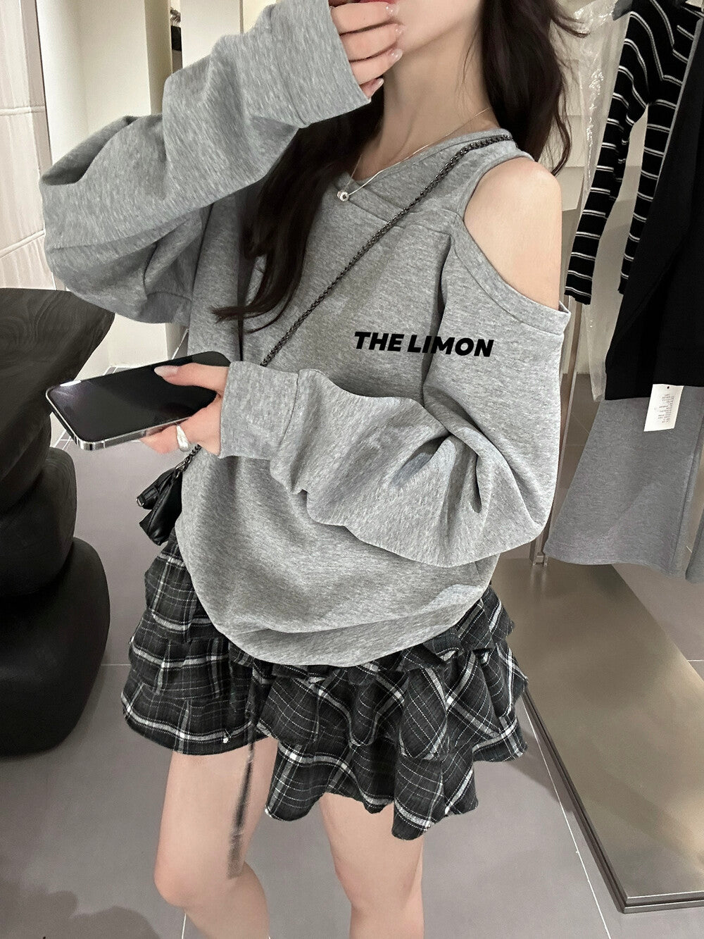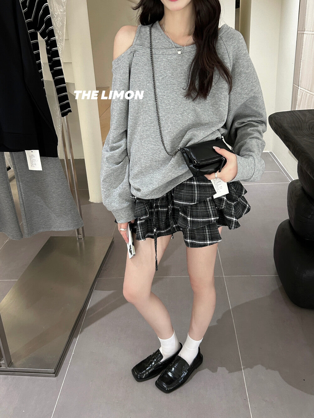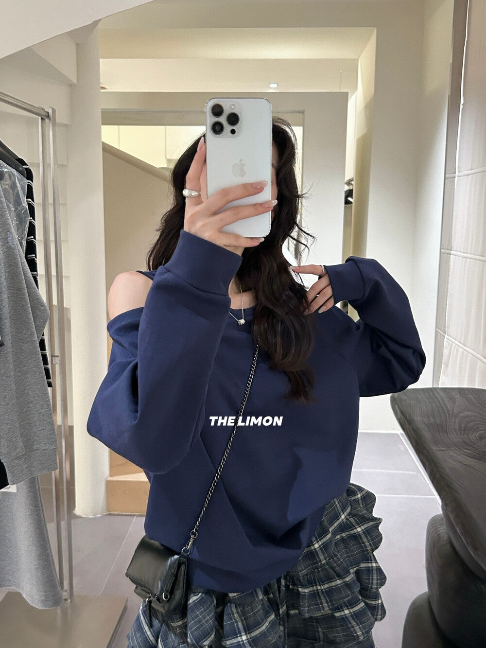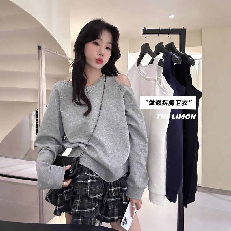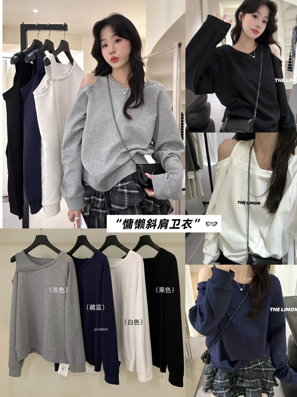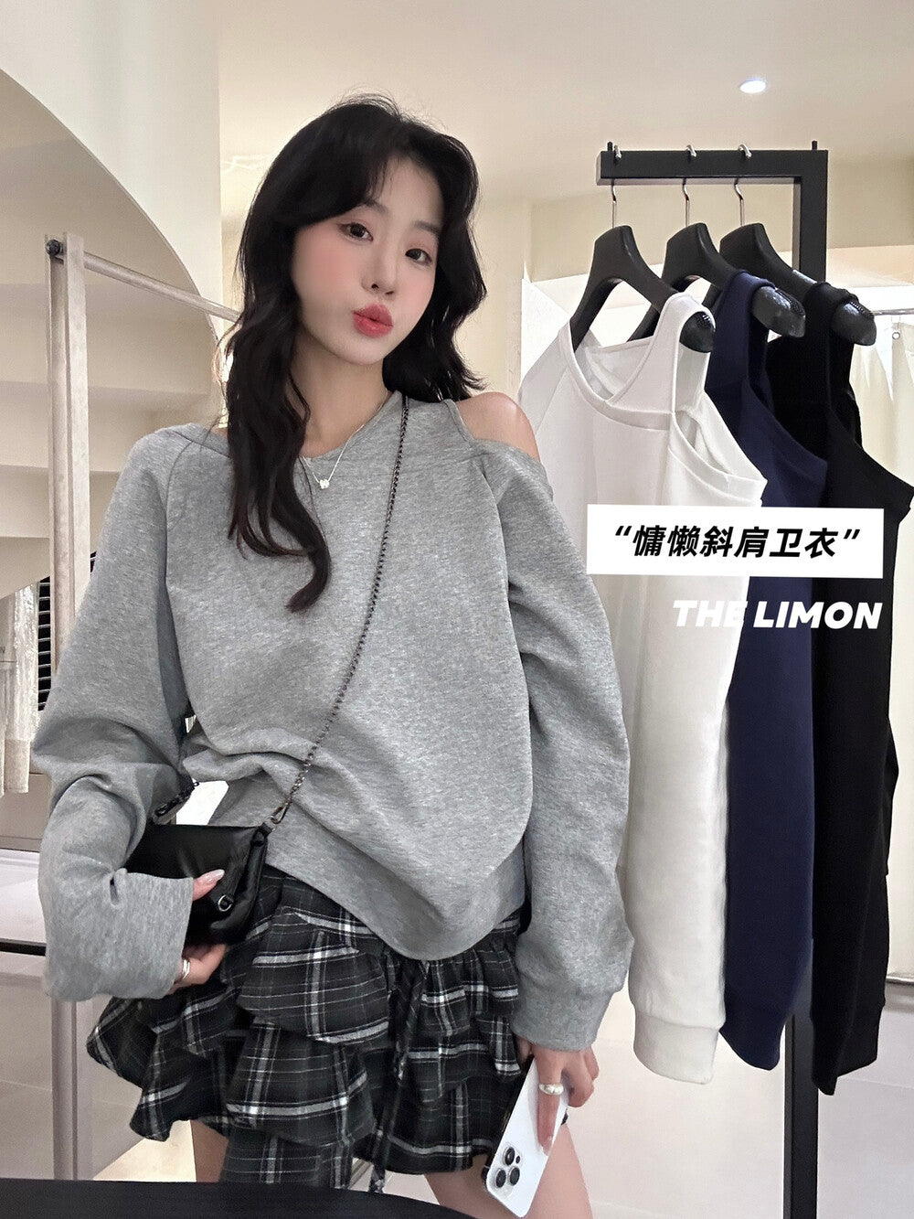 【L9215】實拍檸檬秋季美式斜肩寬鬆衞衣250915