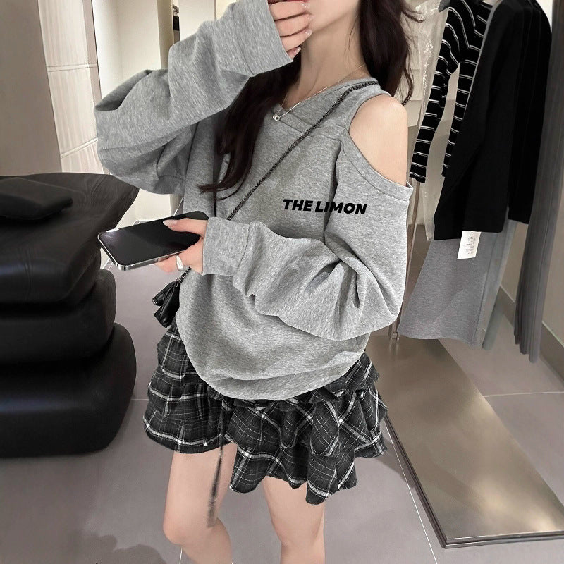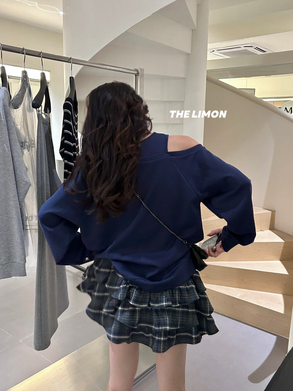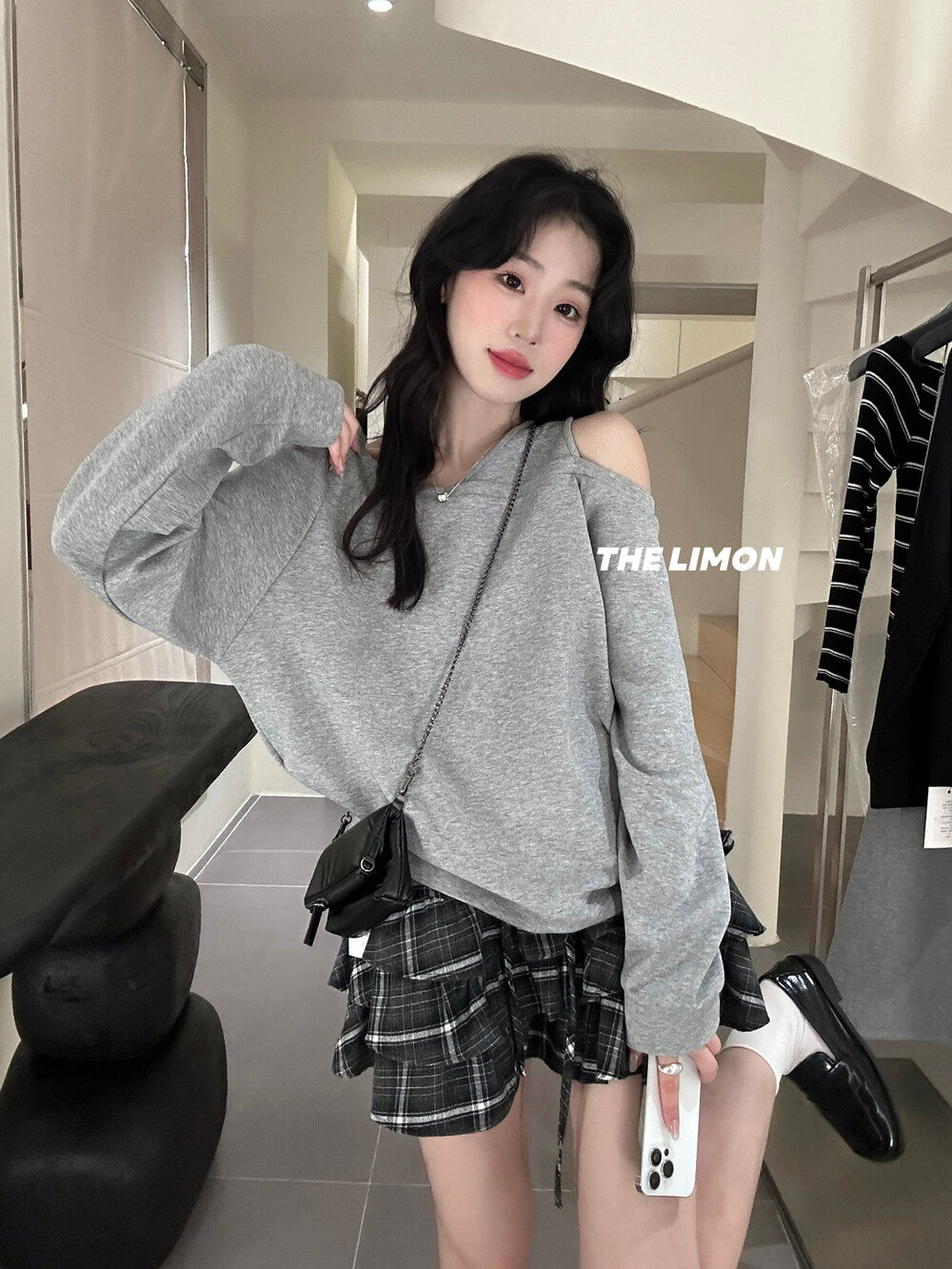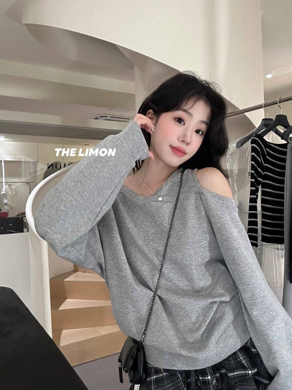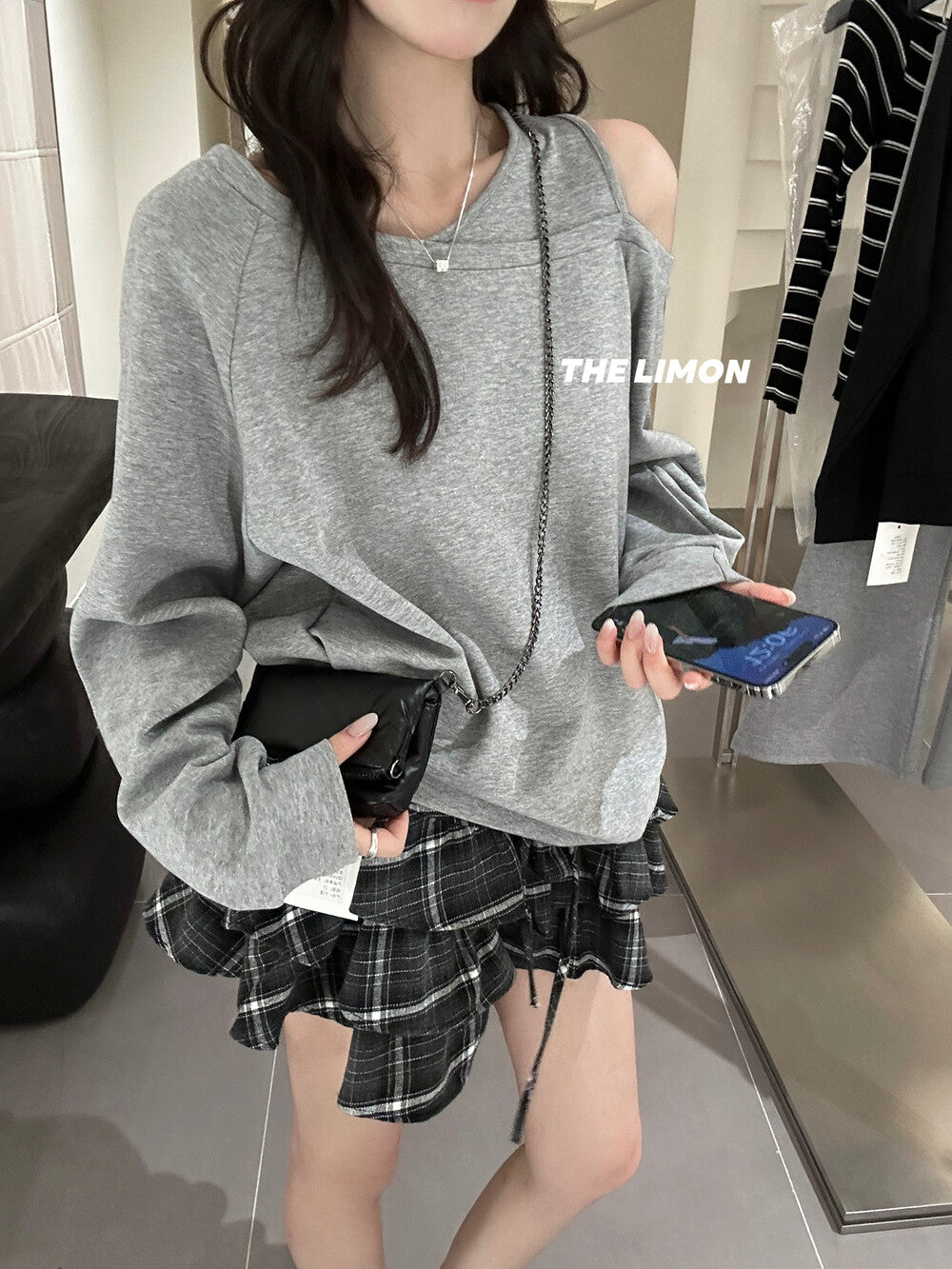 【L9215】實拍檸檬秋季美式斜肩寬鬆衞衣250915
