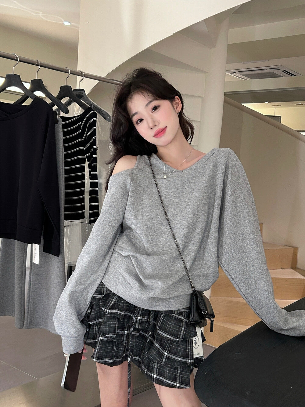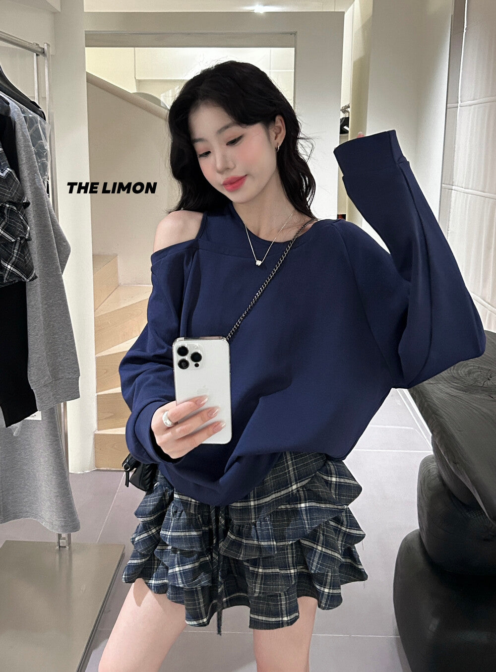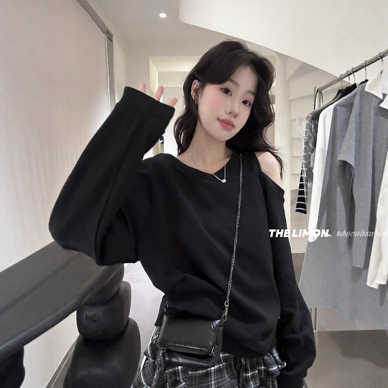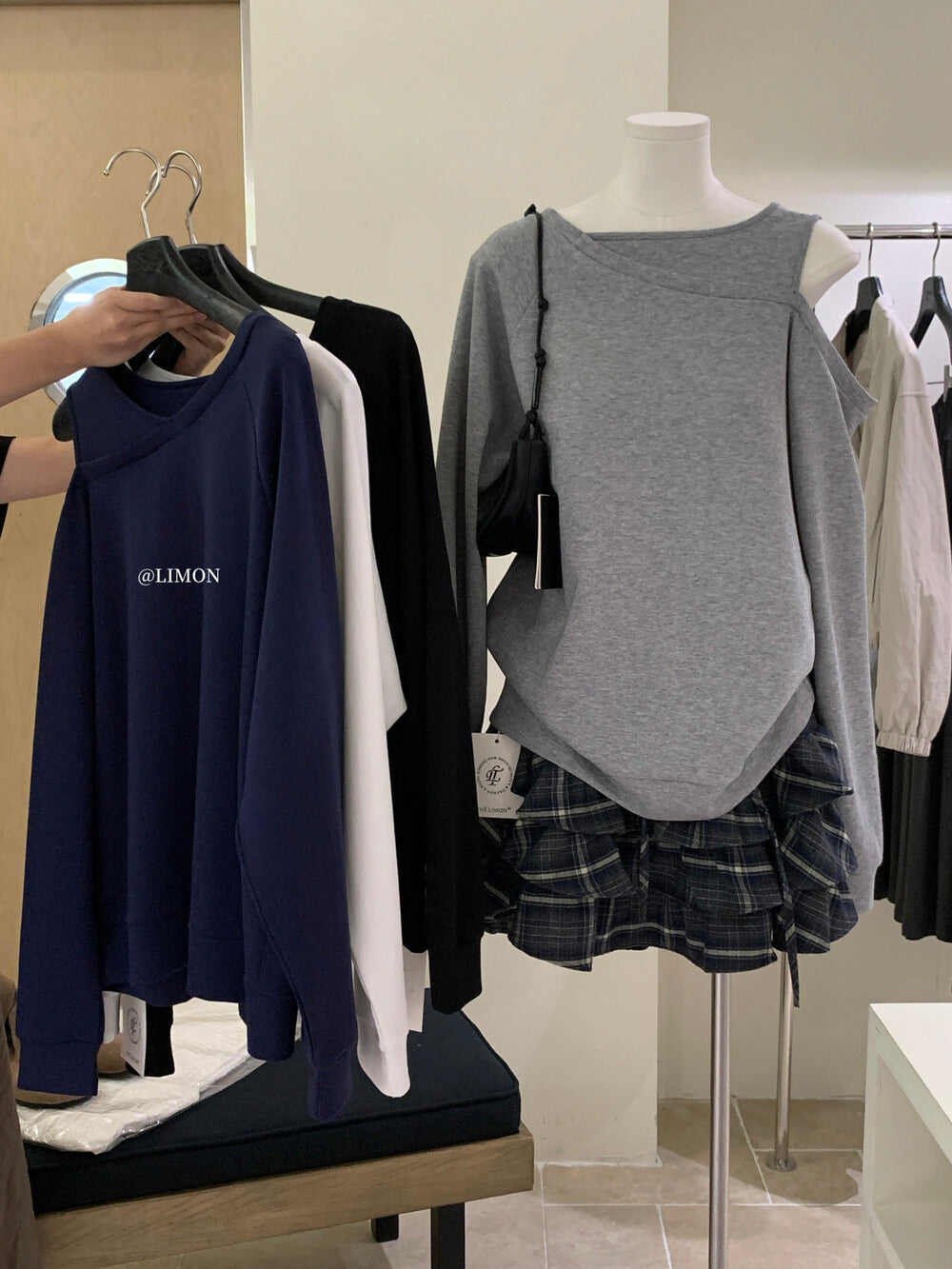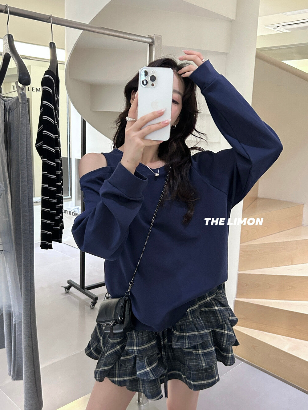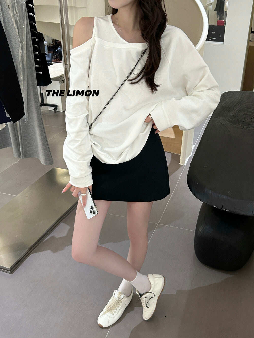 【L9215】實拍檸檬秋季美式斜肩寬鬆衞衣250915
